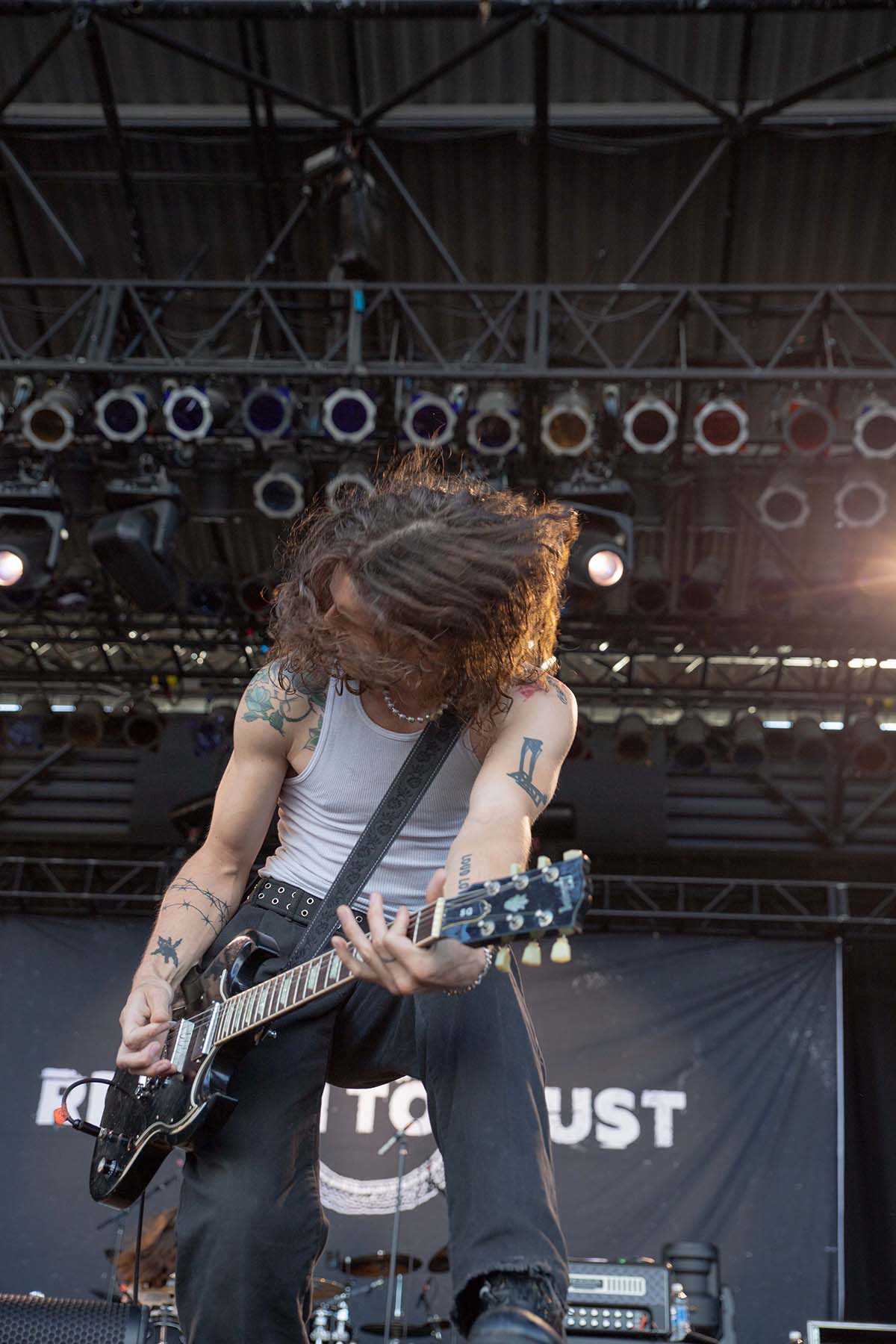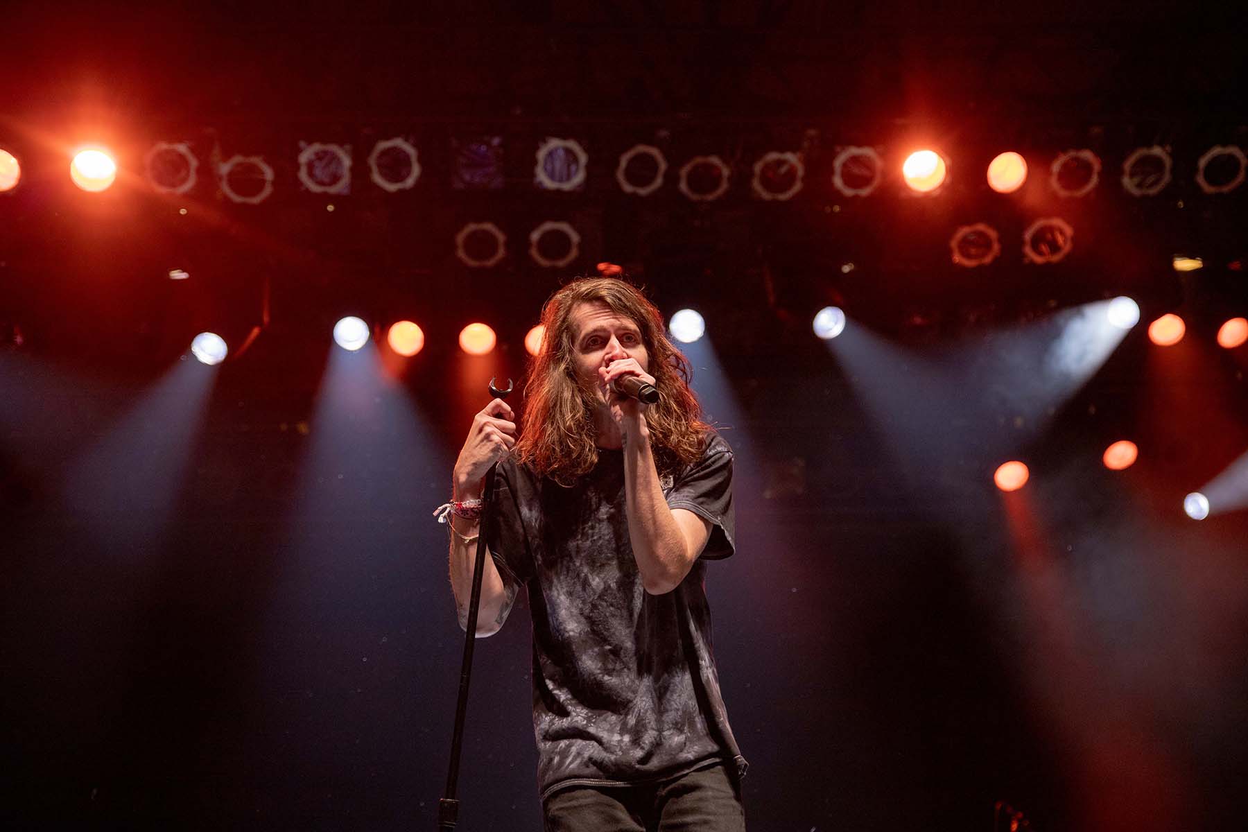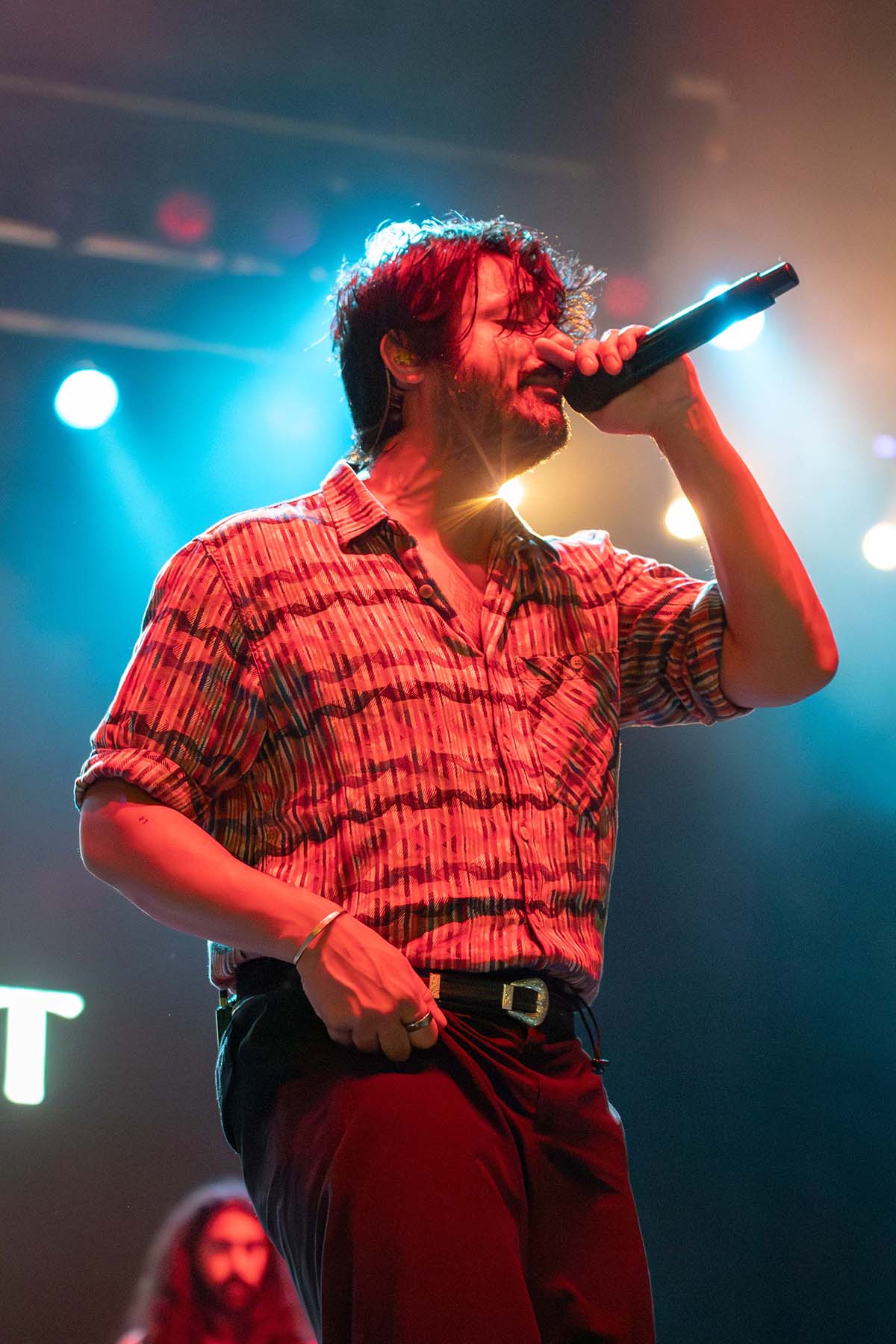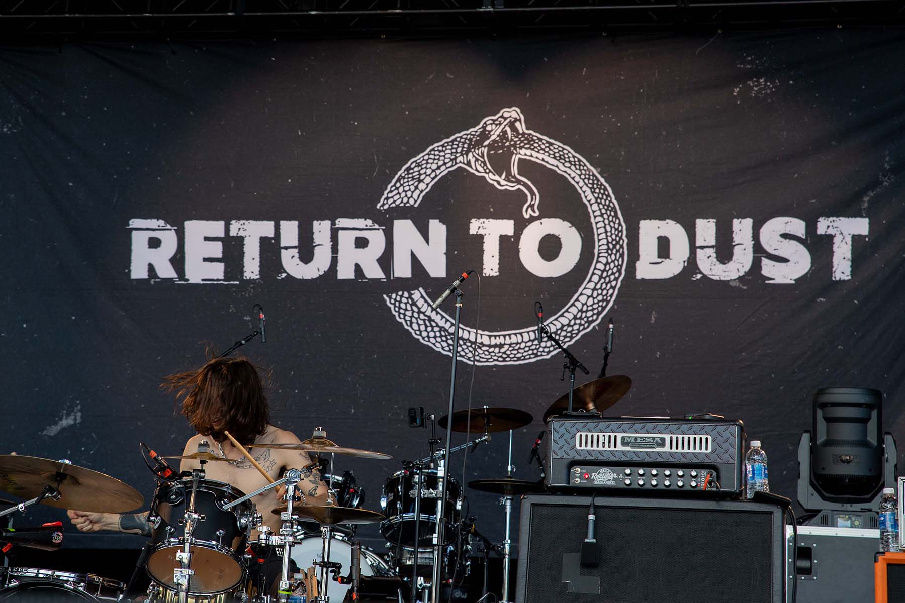Next up were People R Ugly and Return to Dust. I’d never seen either of them, and I had barely even heard of them, but they were both super entertaining to watch. People R Ugly had some fun backdrops on the screen, changing them from song to song. I met a few fans at Return to Dust who told me they bring good energy and are fun to watch. They were right, and I was not disappointed. From the hair flips to jumping around the stage, they carried a rhythm that ignited the space from the inside out.
