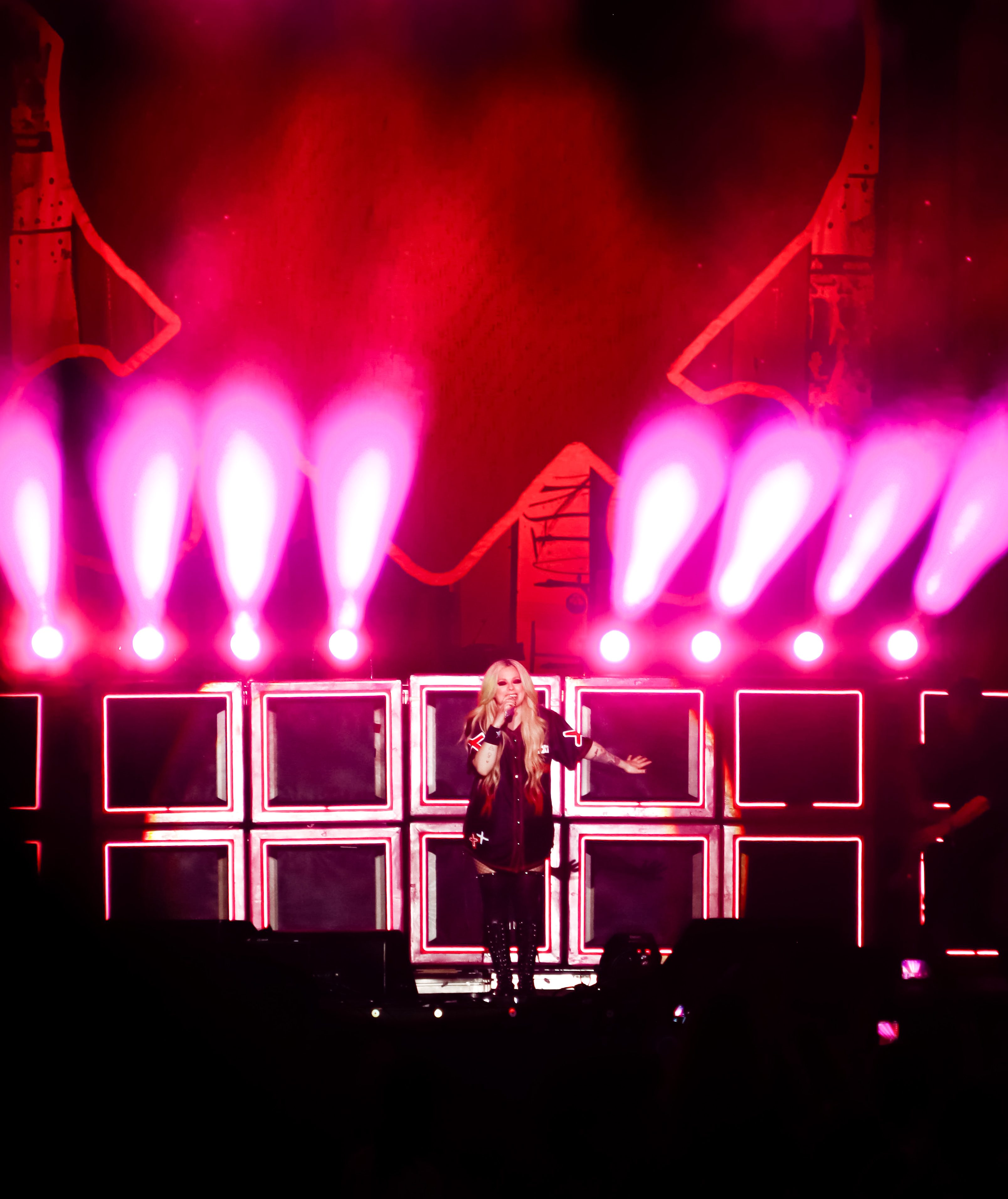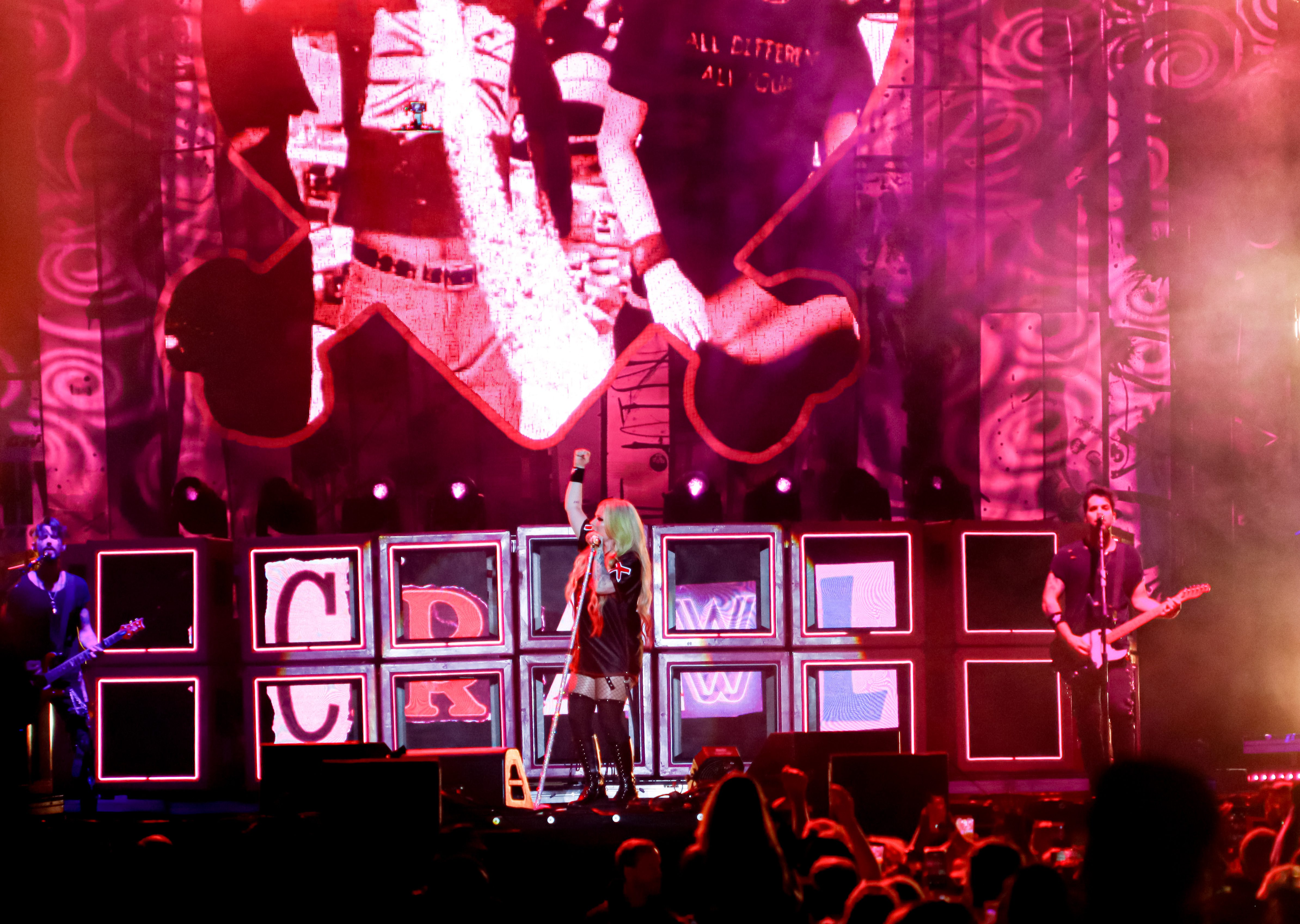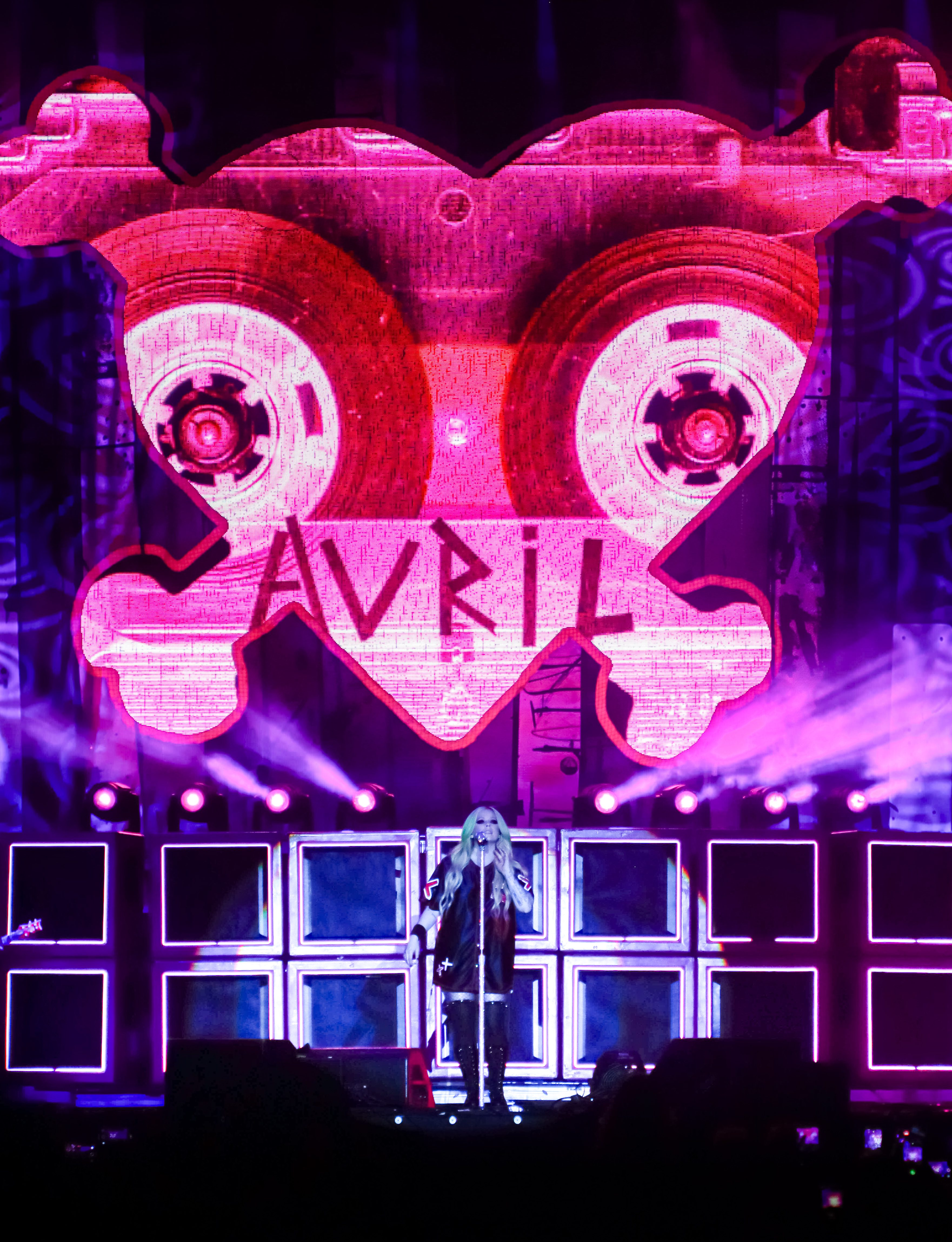 Lavigne opened her show with her hit song “Girlfriend,” a worldwide fan-favourite. The stage setup and light production were like nothing I’ve ever seen before. She had this huge digital heart and bones – her iconic logo – which started flashing photos of her and her album covers through the years. Keeping things upbeat and fun, she performed her second song, “What the Hell,” and had confetti and streamers shoot everywhere into the crowd. Taking it back to 2002, “Complicated,” another fan-favourite, had the crowd settle down a little bit as we all thought about the nostalgia from her very first album Let Go. Her stage presence was great as she was interacting with fans. Covering songs all throughout her career, she sang the Shania Twain cover “Man! I Feel Like A Woman,” and even invited Simple Plan back onto the stage to sing their newest single together, “Young & Dumb.”