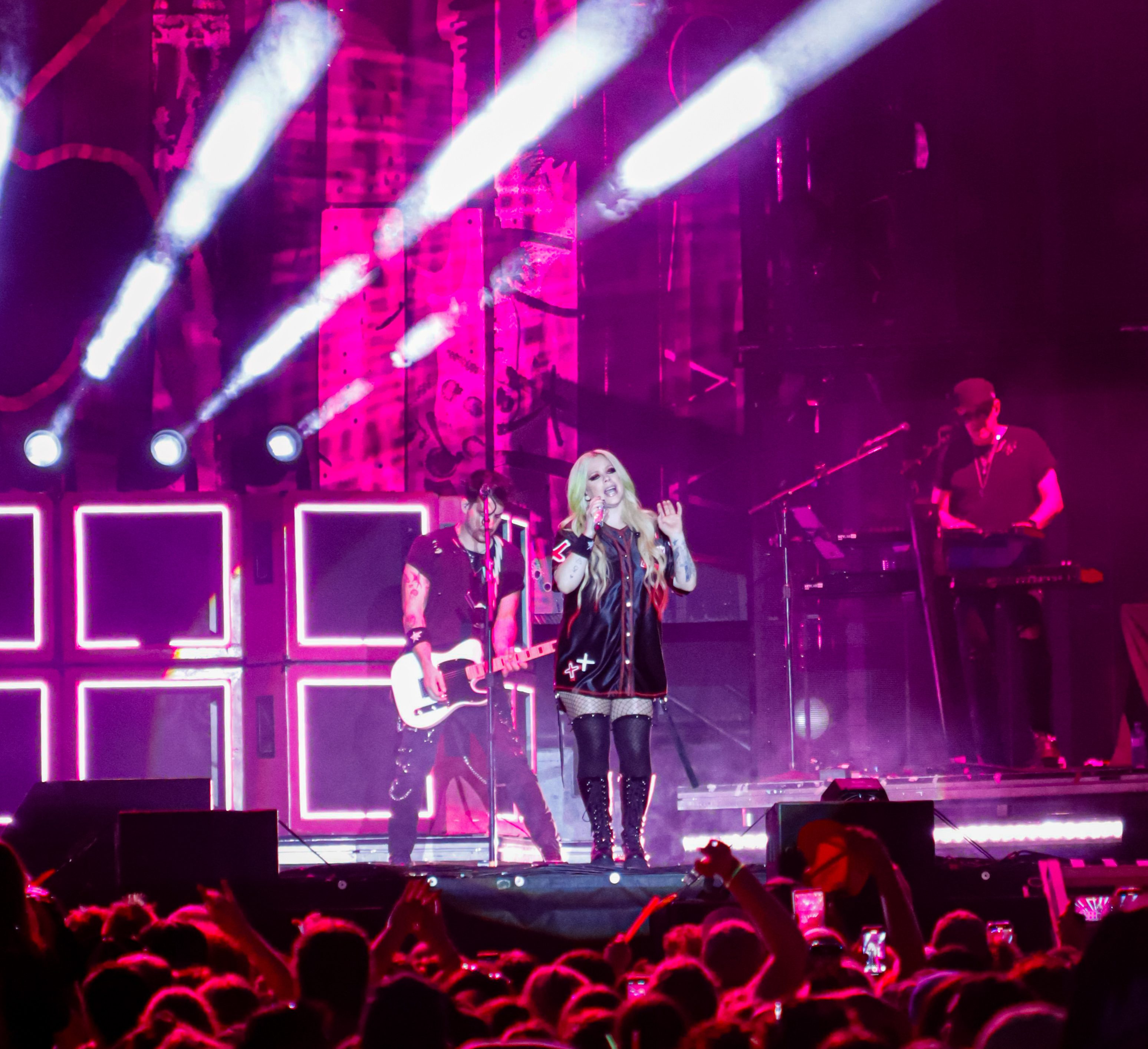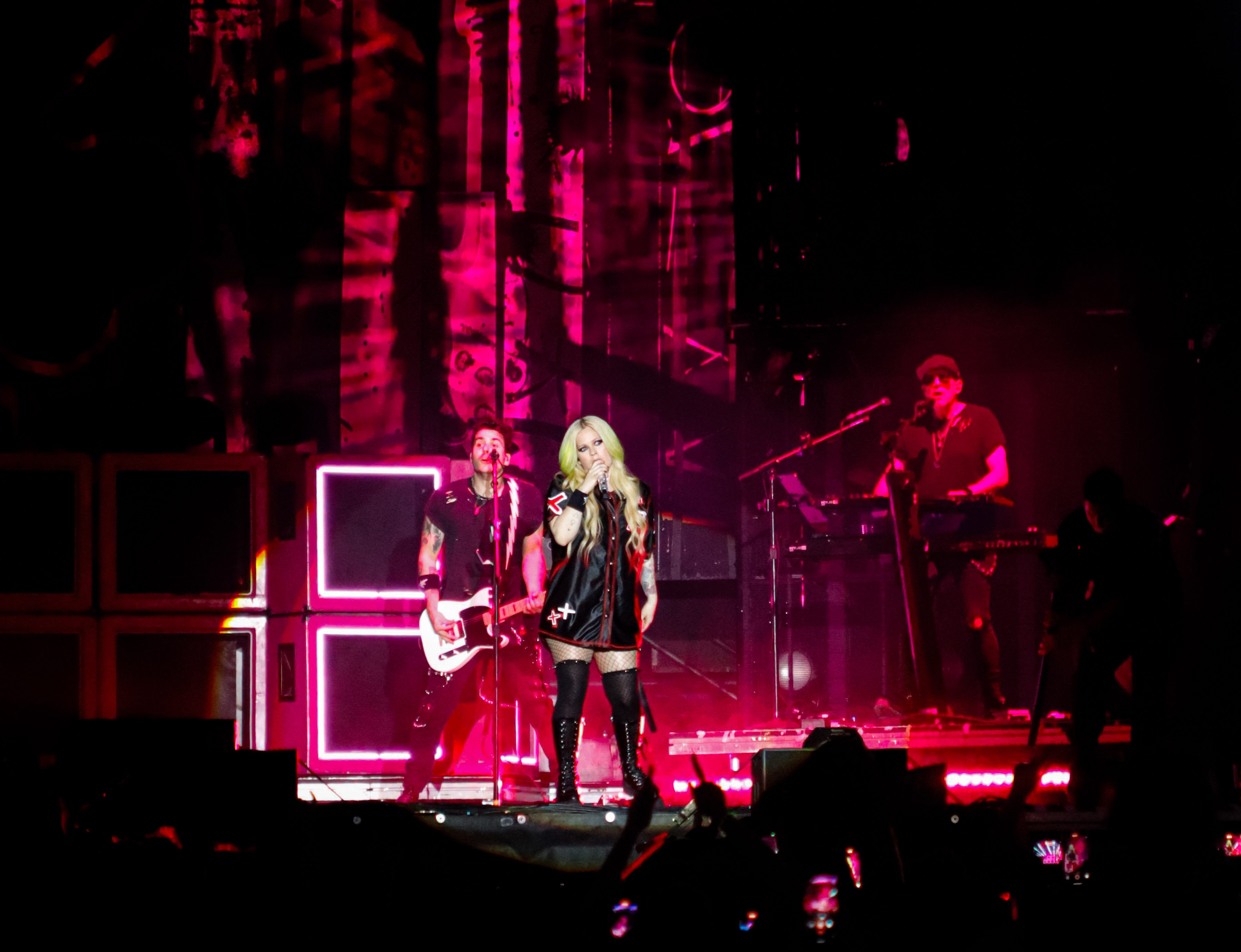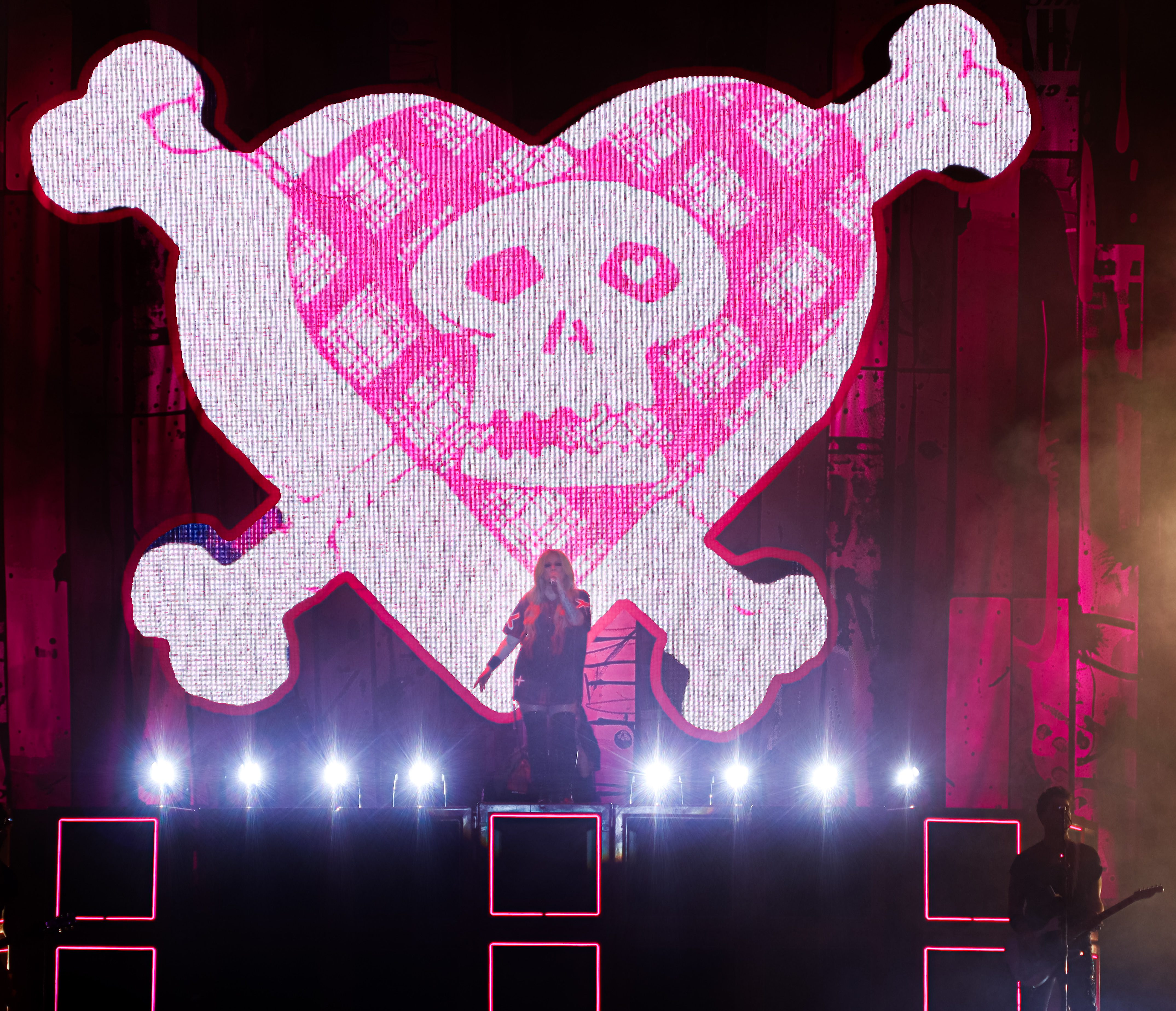 Lavigne opened her show with her hit song “Girlfriend,” a worldwide fan-favourite. The stage setup and light production were like nothing I’ve ever seen before. She had this huge digital heart and bones – her iconic logo – which started flashing photos of her and her album covers through the years. Keeping things upbeat and fun, she performed her second song, “What the Hell,” and had confetti and streamers shoot everywhere into the crowd. Taking it back to 2002, “Complicated,” another fan-favourite, had the crowd settle down a little bit as we all thought about the nostalgia from her very first album Let Go. Her stage presence was great as she was interacting with fans. Covering songs all throughout her career, she sang the Shania Twain cover “Man! I Feel Like A Woman,” and even invited Simple Plan back onto the stage to sing their newest single together, “Young & Dumb.”