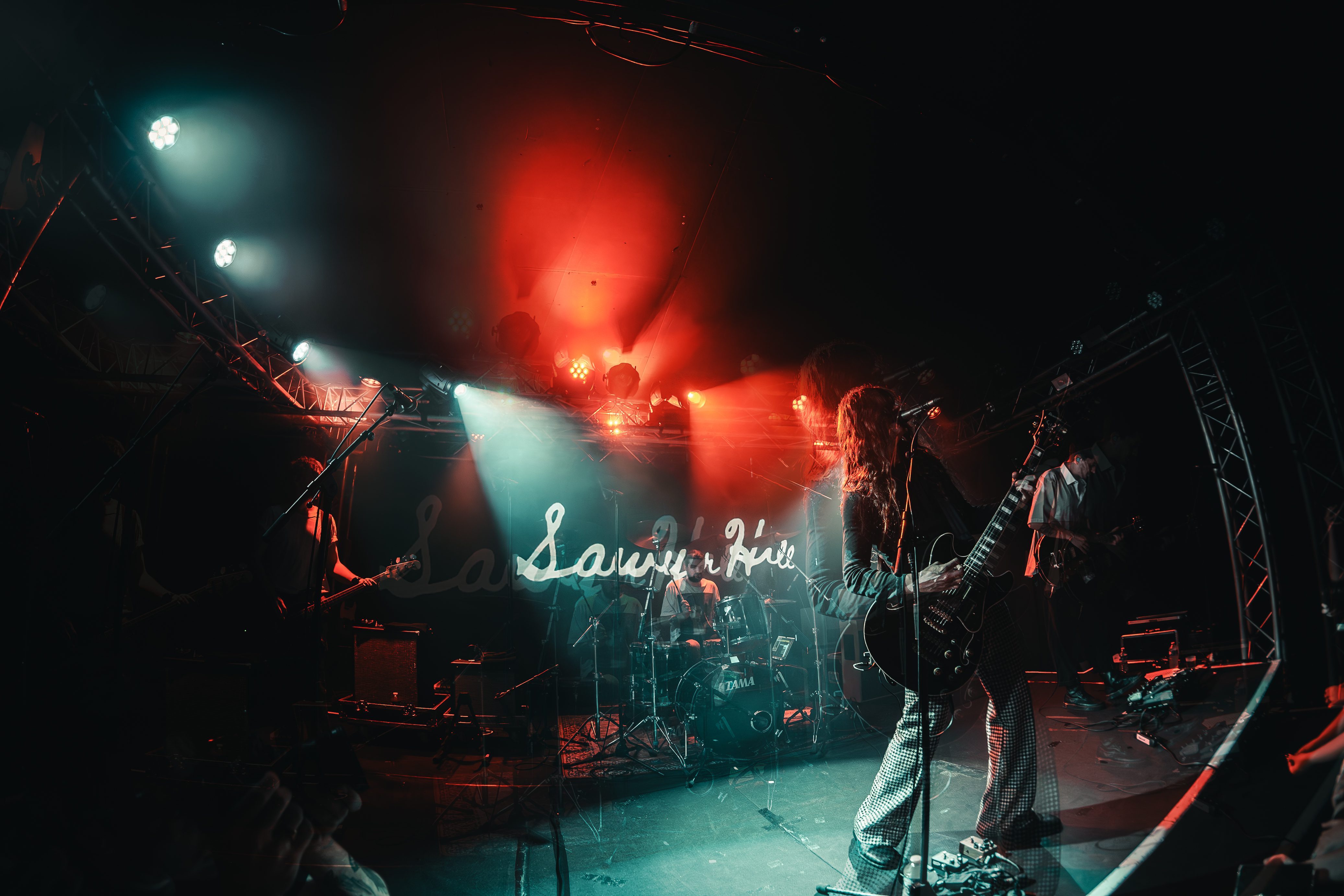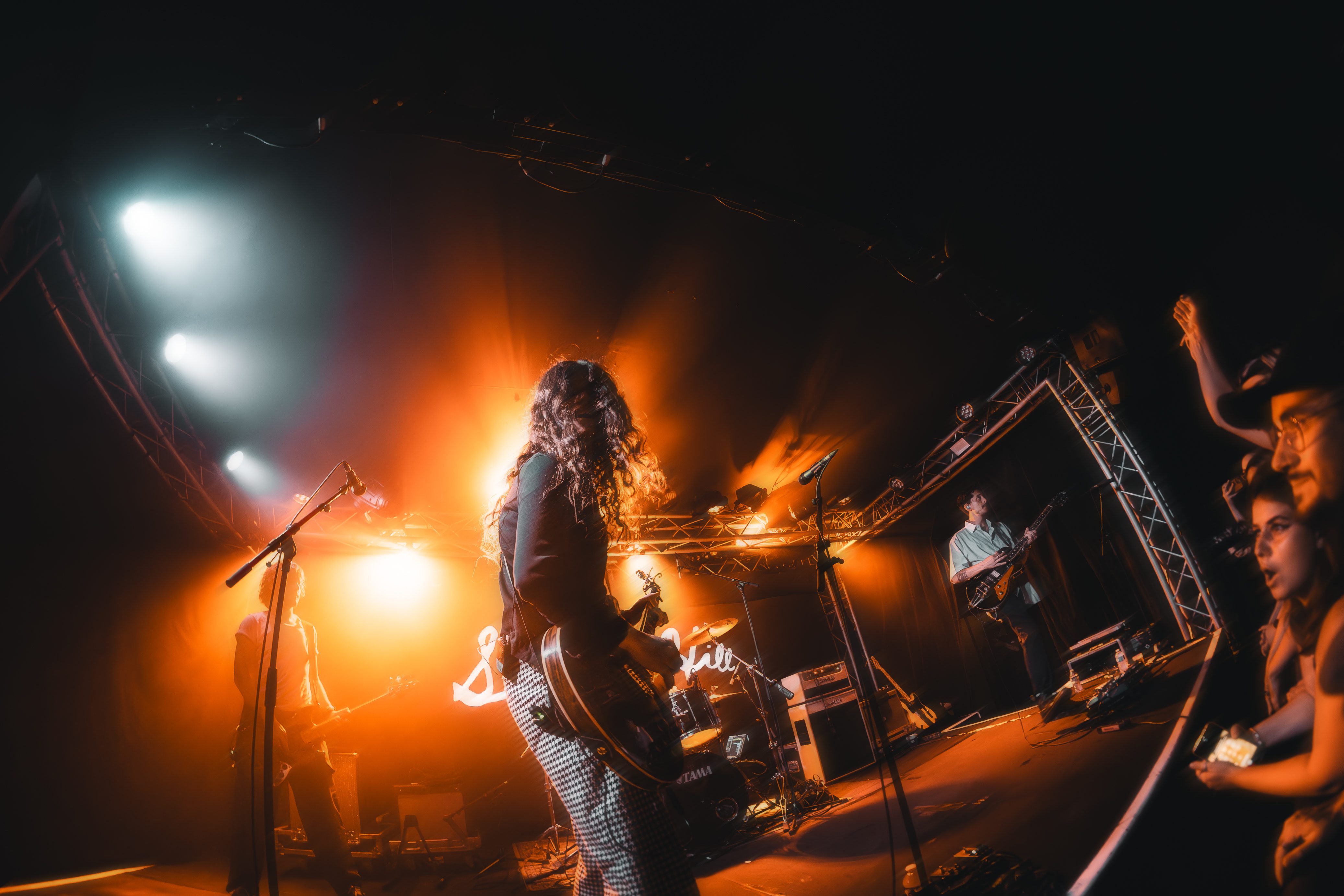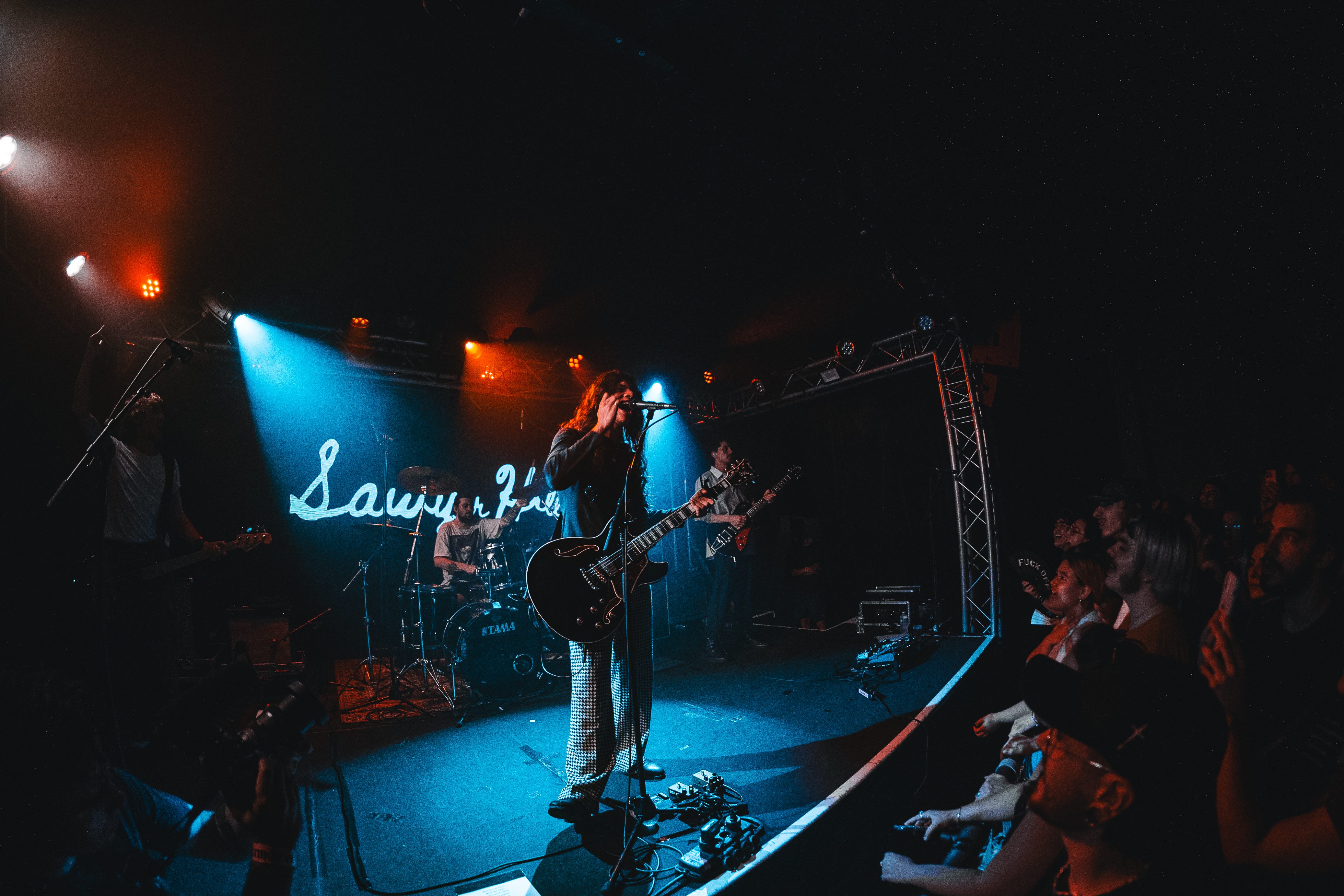 In the crowd can be spotted Metallica T-shirts, as well as Nothing but Thieves’, while a song plays in the background from The Districts’ 2015 album. It is that musical and generational mix that Sawyer Hill perfectly embodies on stage. While the first row seems flabbergasted to break the screen barrier that separated them from their beloved artist, the back of the room clearly screams of long-lost habits from the 1990s – arms high, hands in the sign of the horn.