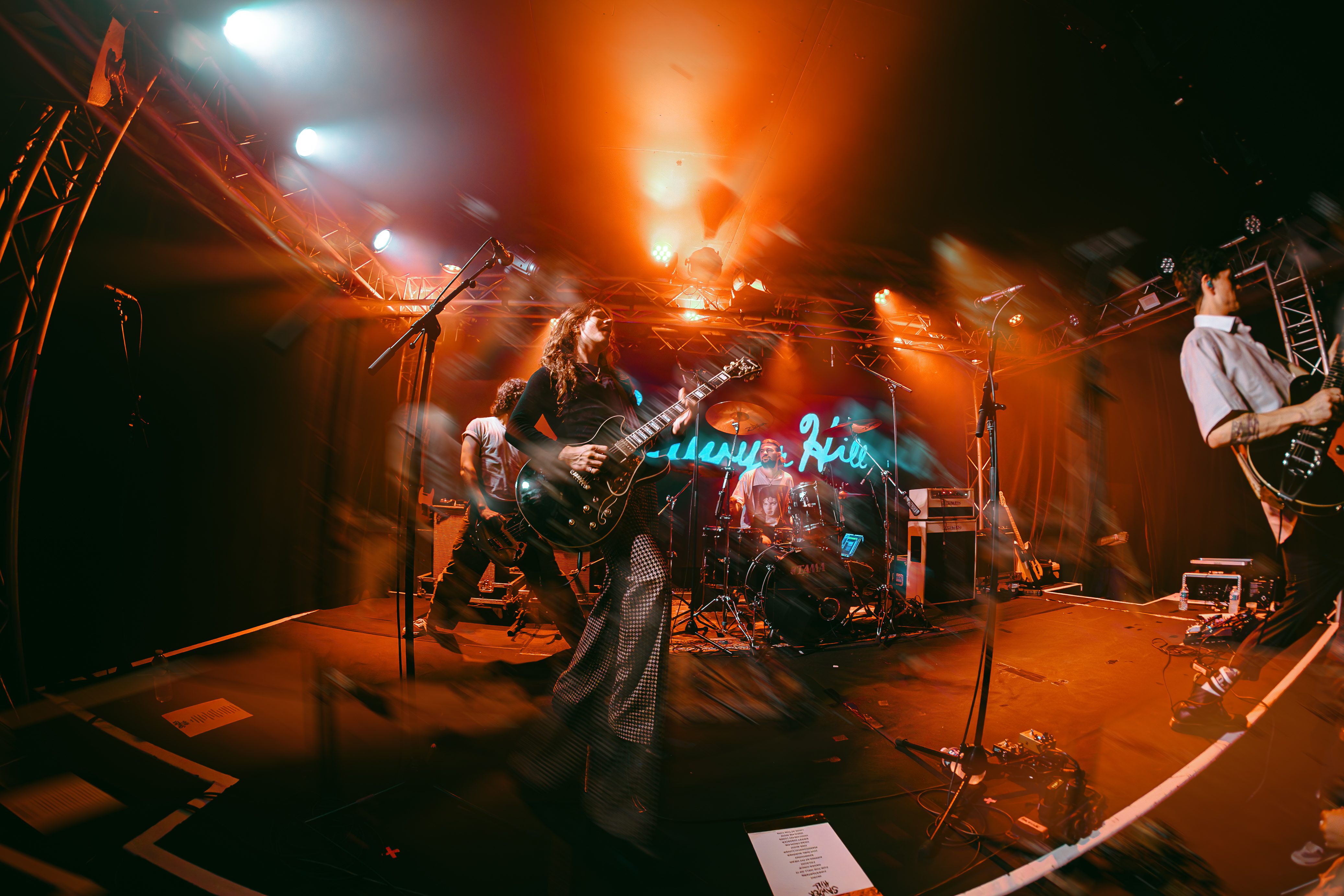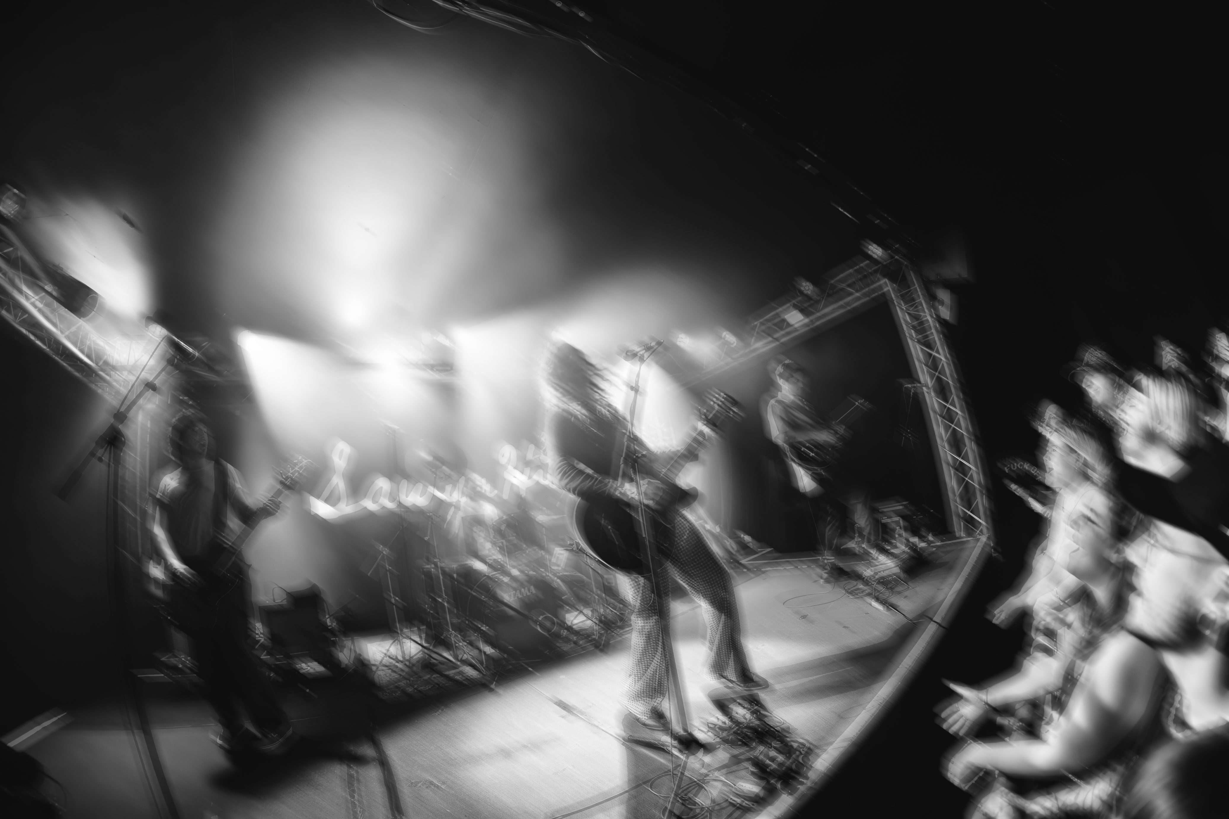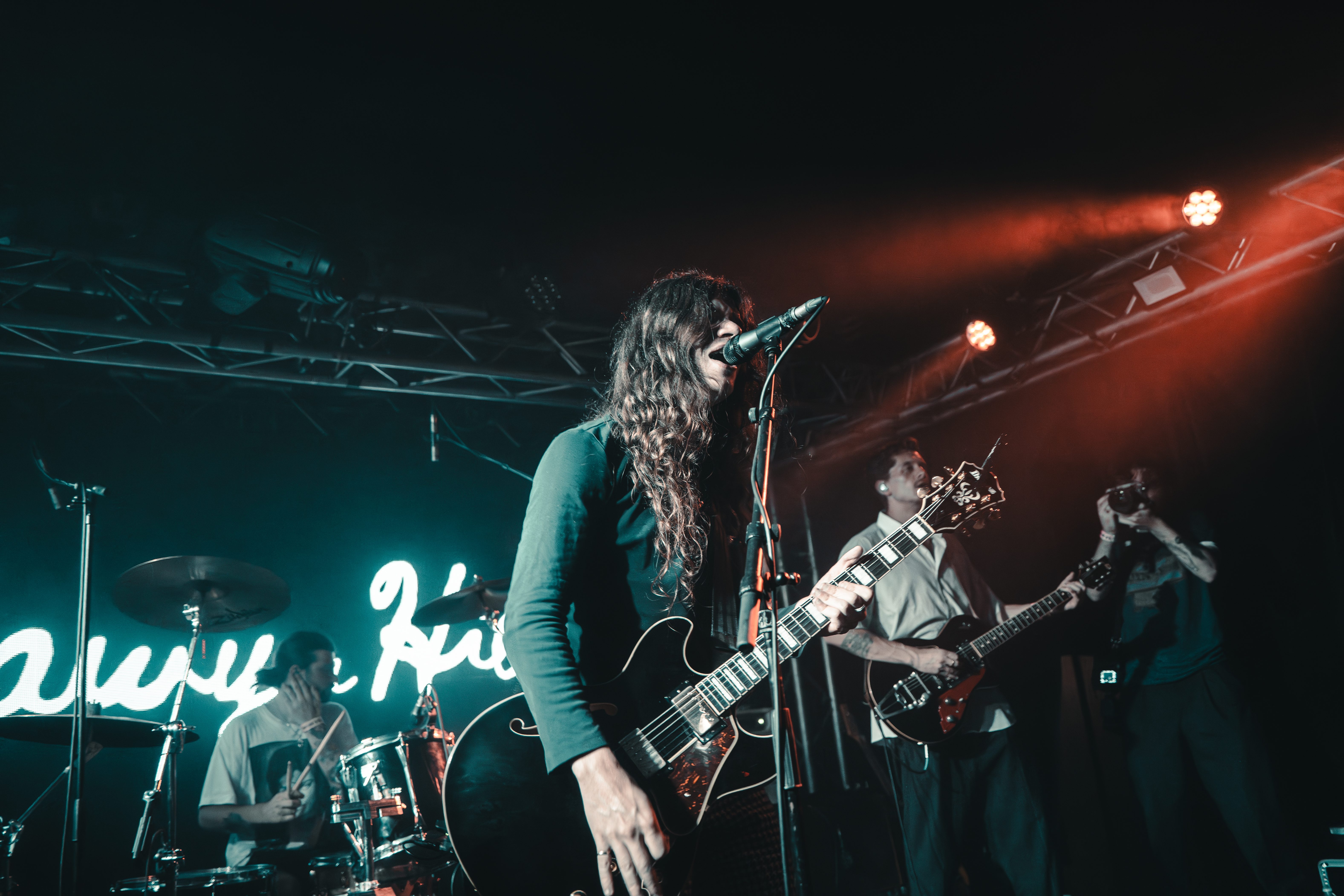In the crowd can be spotted Metallica T-shirts, as well as Nothing but Thieves’, while a song plays in the background from The Districts’ 2015 album. It is that musical and generational mix that Sawyer Hill perfectly embodies on stage. While the first row seems flabbergasted to break the screen barrier that separated them from their beloved artist, the back of the room clearly screams of long-lost habits from the 1990s – arms high, hands in the sign of the horn.