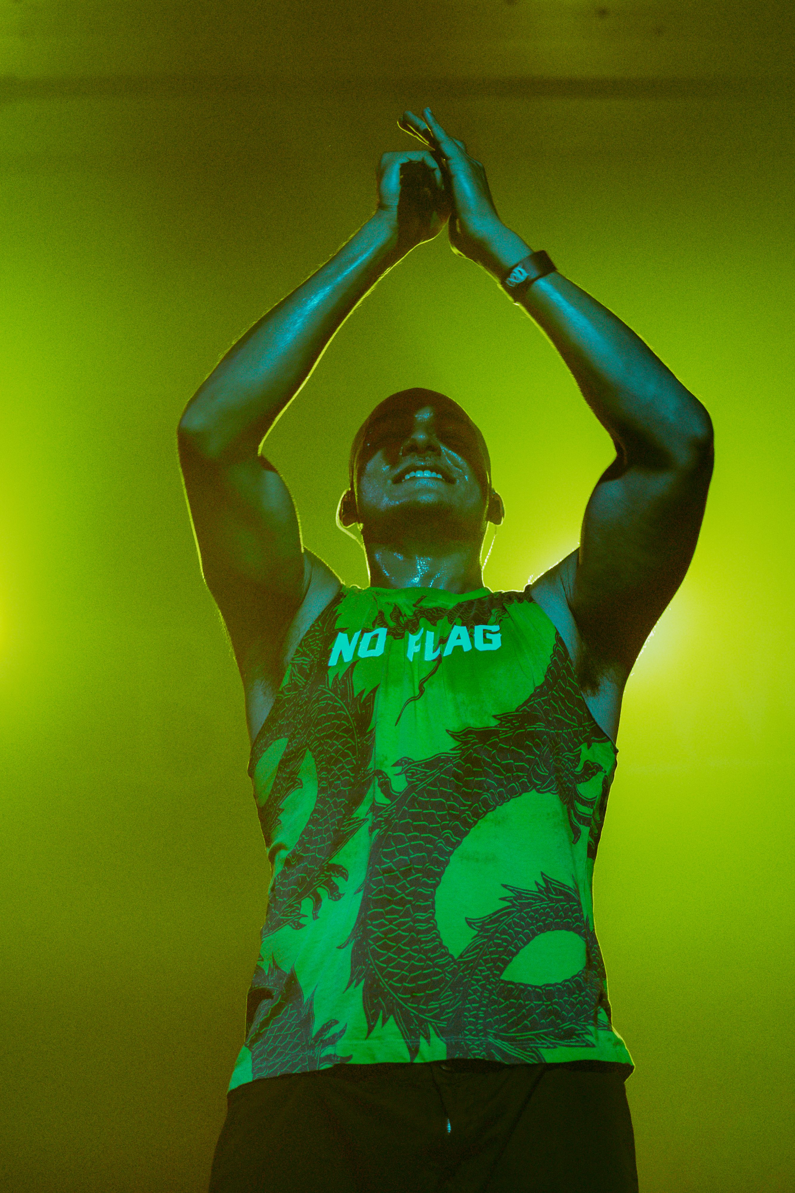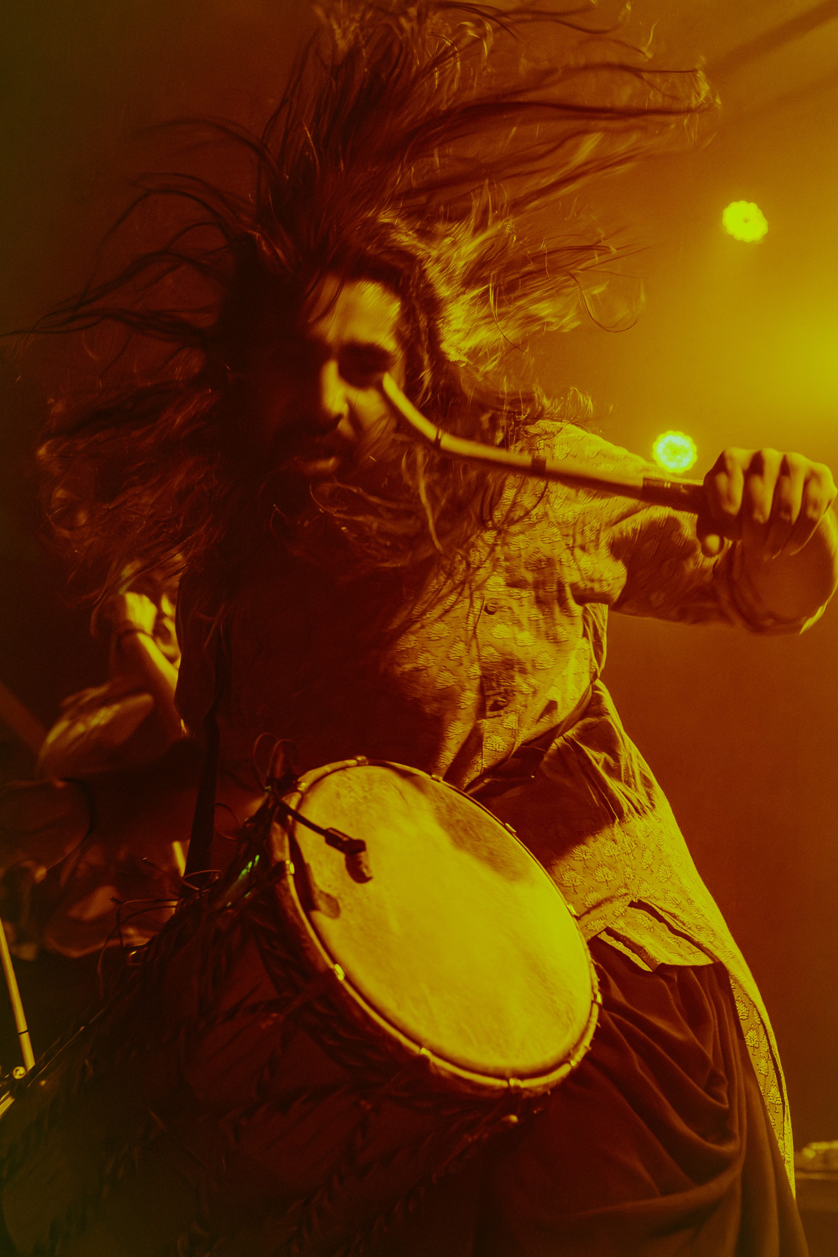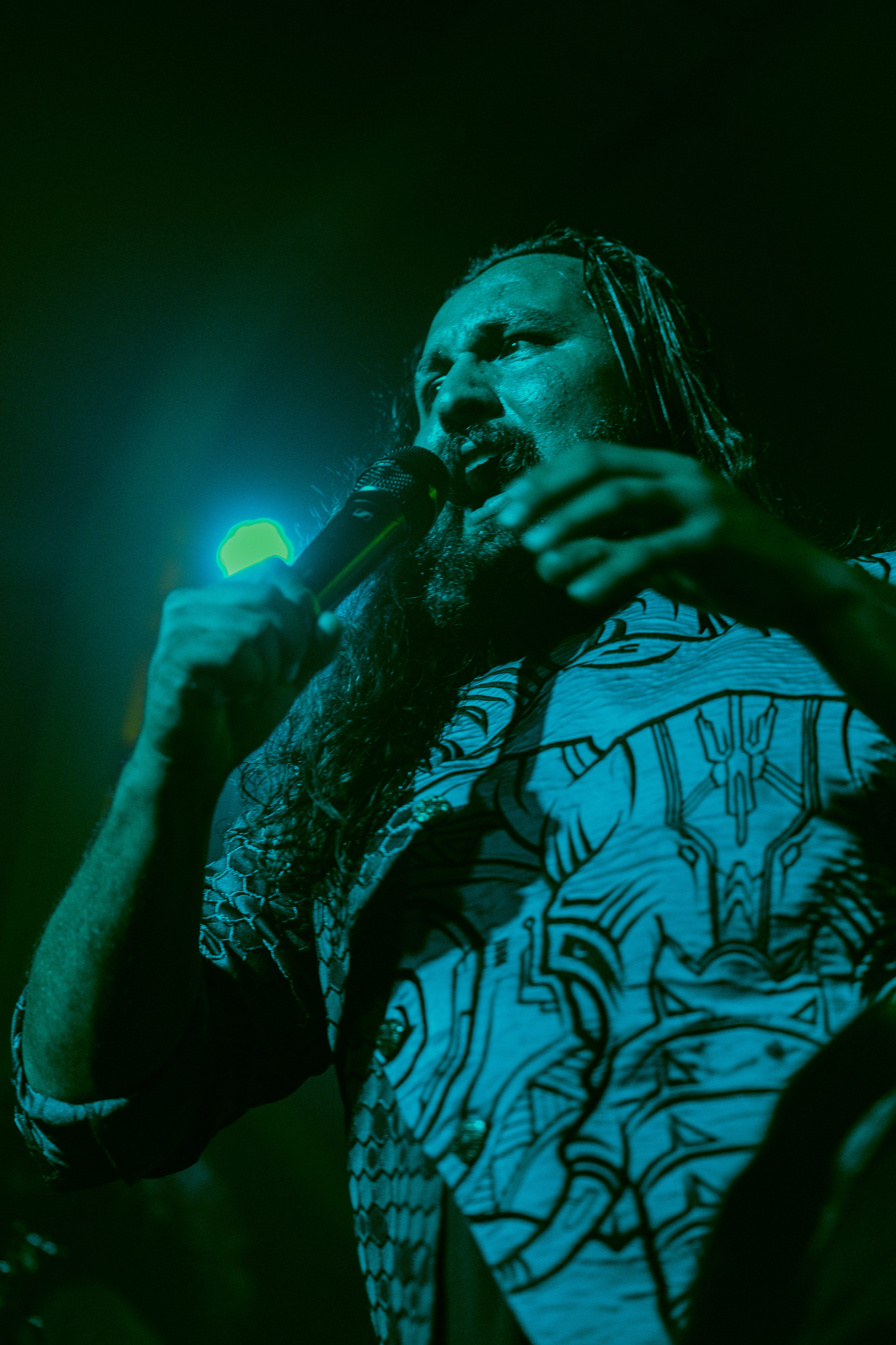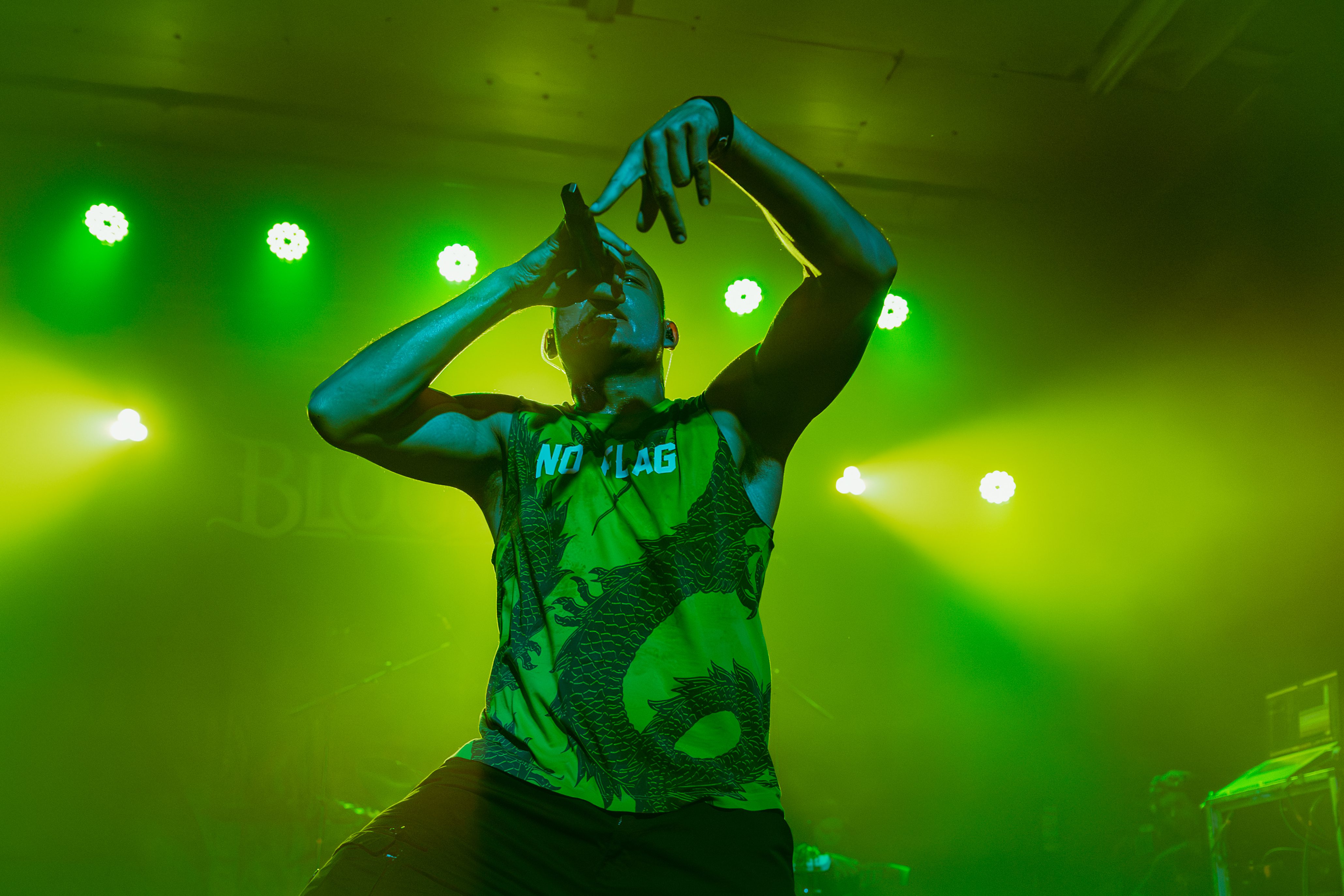 A roar from the crowd signaled the main event and I barely cleared the photo pit before Bloodywood burst onto the stage. The six?piece – dual vocal frontline, guitar/multi?instrumentalist, kit + dhol percussion, bass – owned every inch of the stage. When the traditional dhol thudded under down?tuned riffs and tumbi/flute melodies cut through the mix, the whole floor shook.
