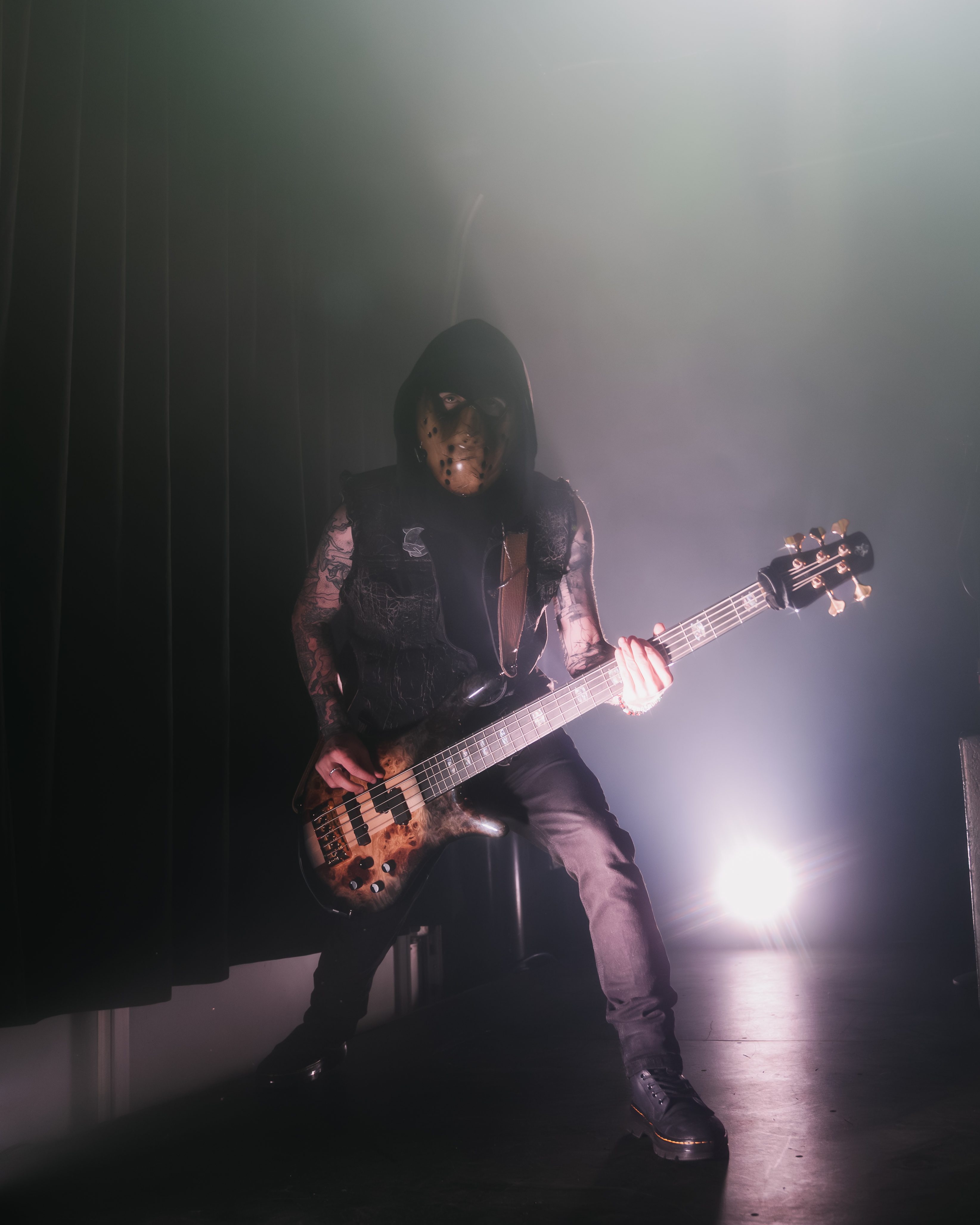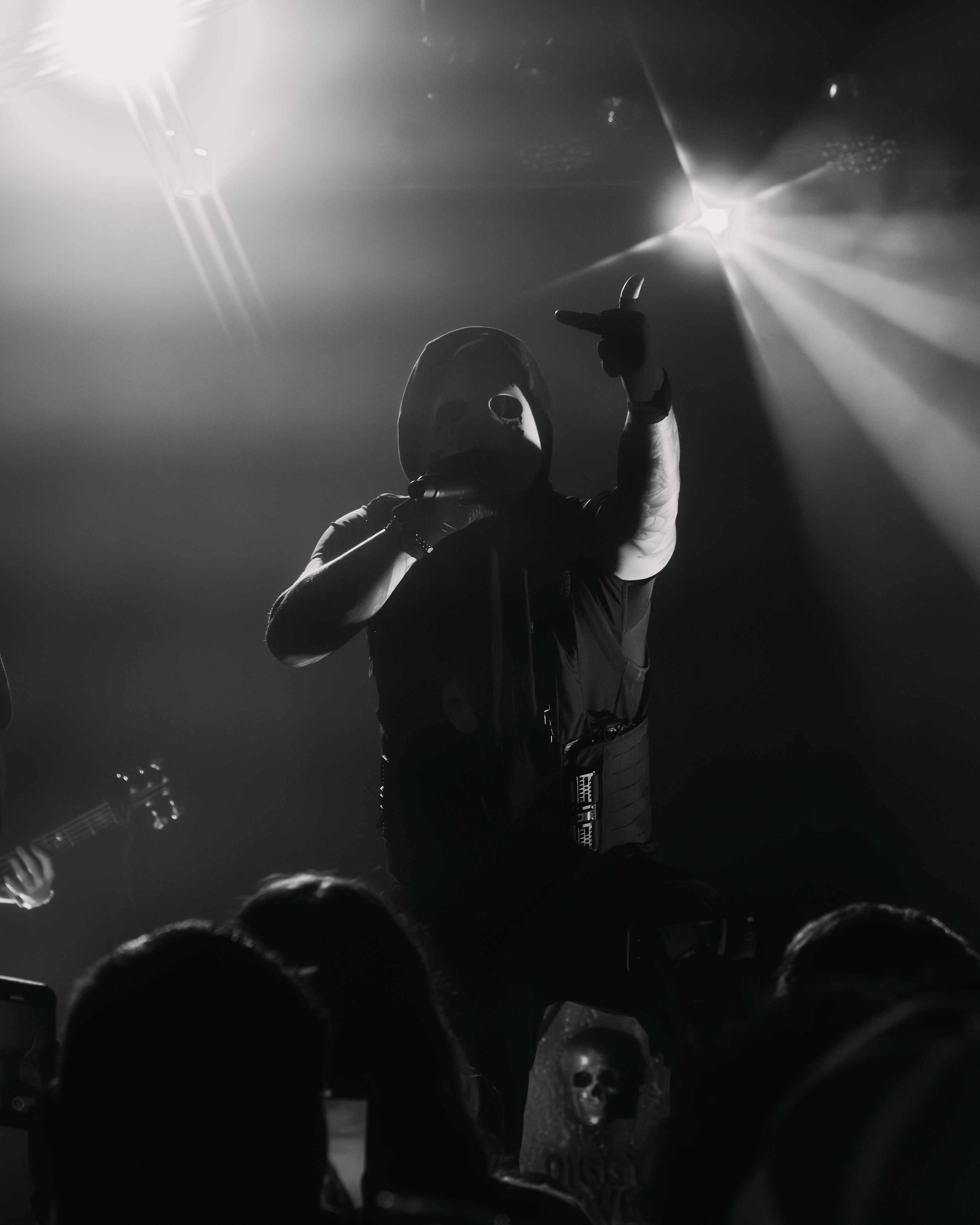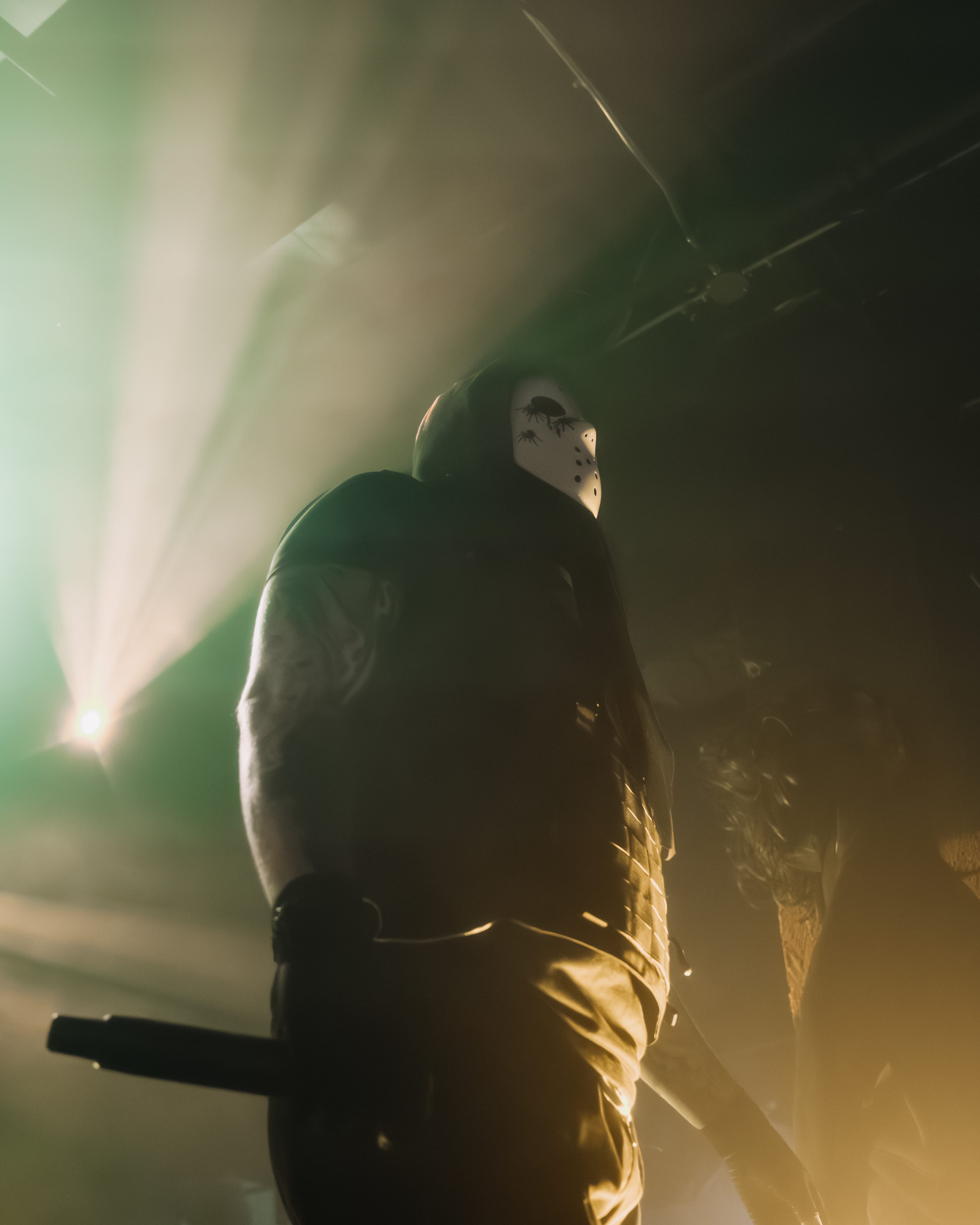 A shadow appeared, masked and holding a bass. Fet Stacks. The crowd popped like a pistol misfiring in a church. Then – It was time for Diggy.