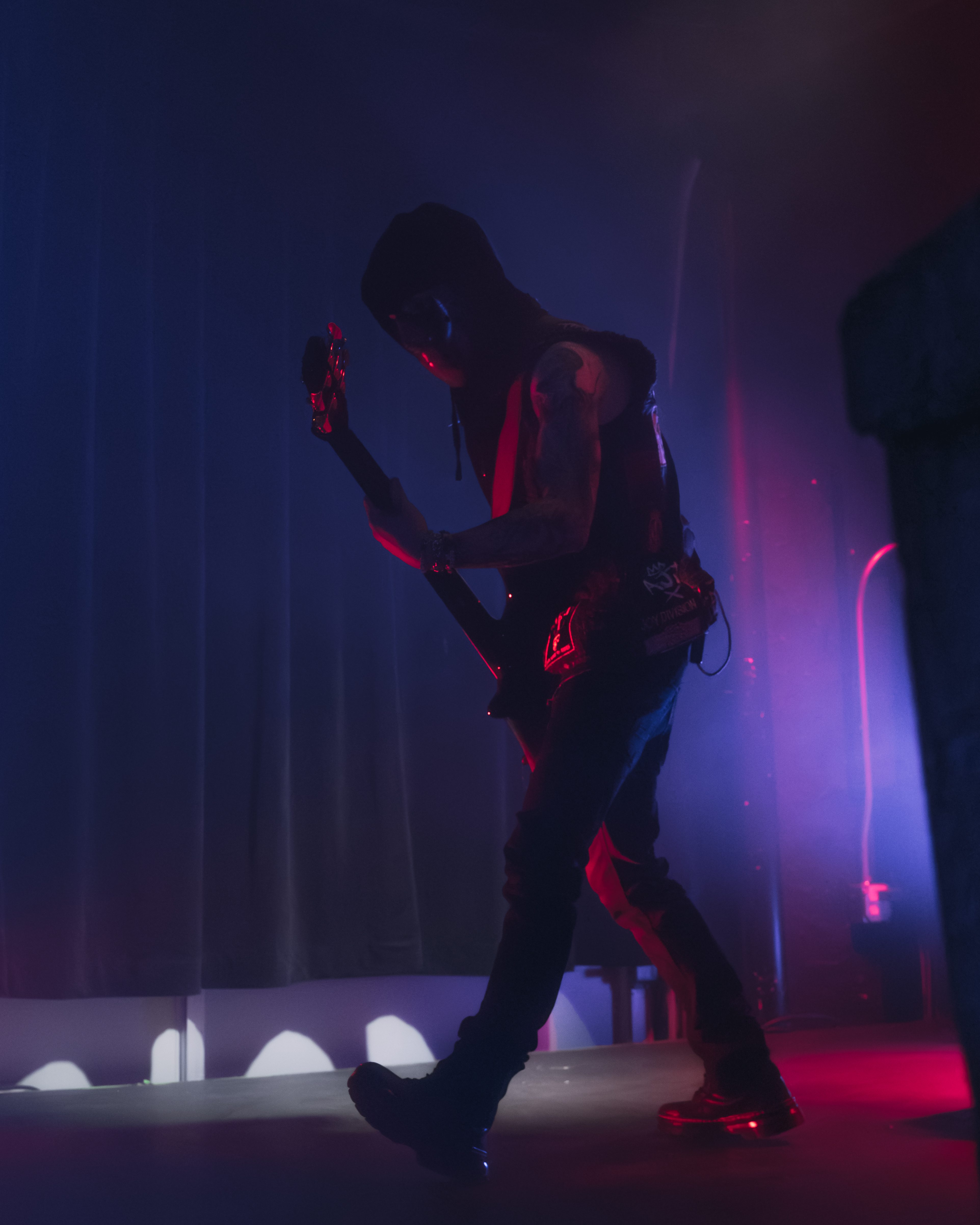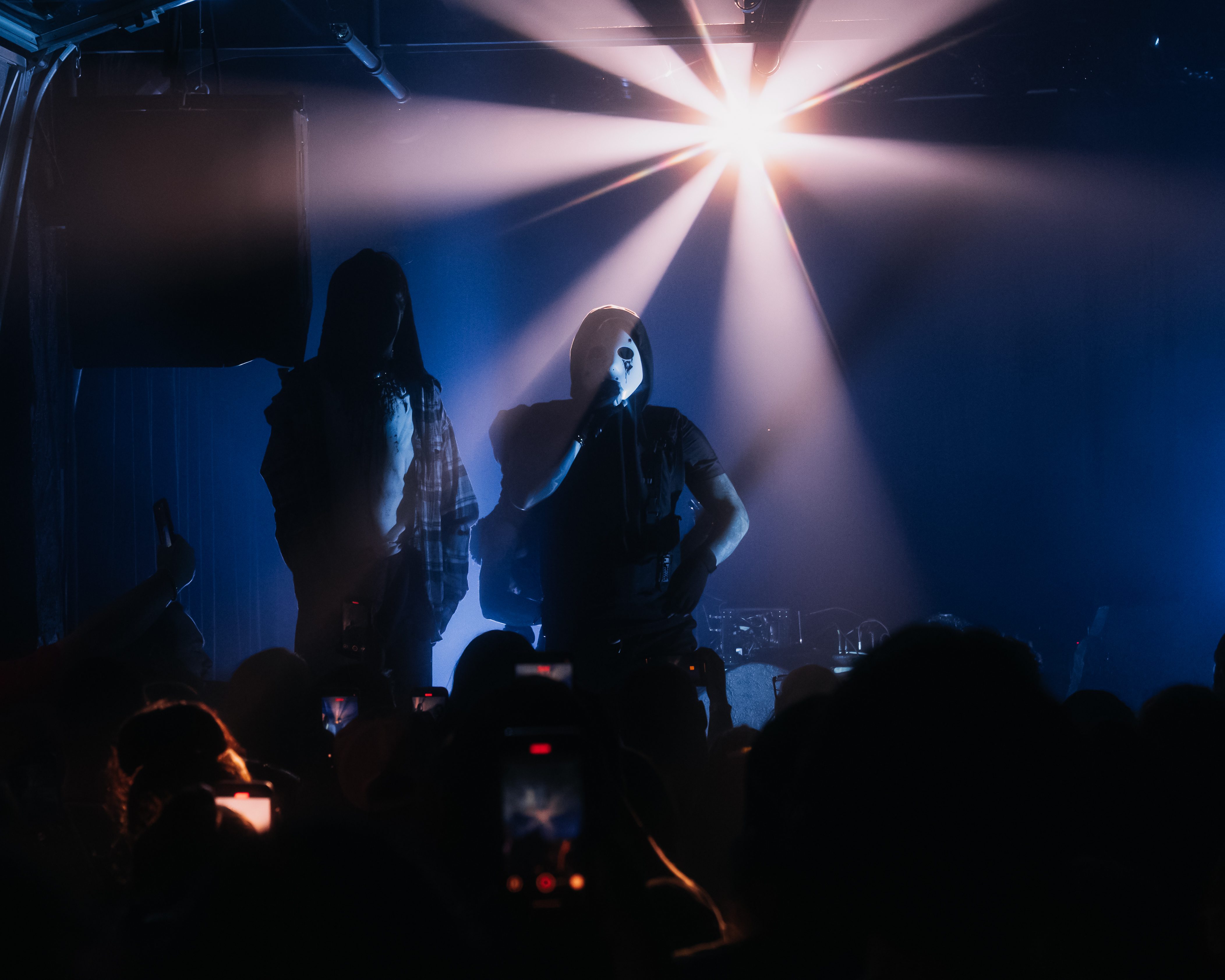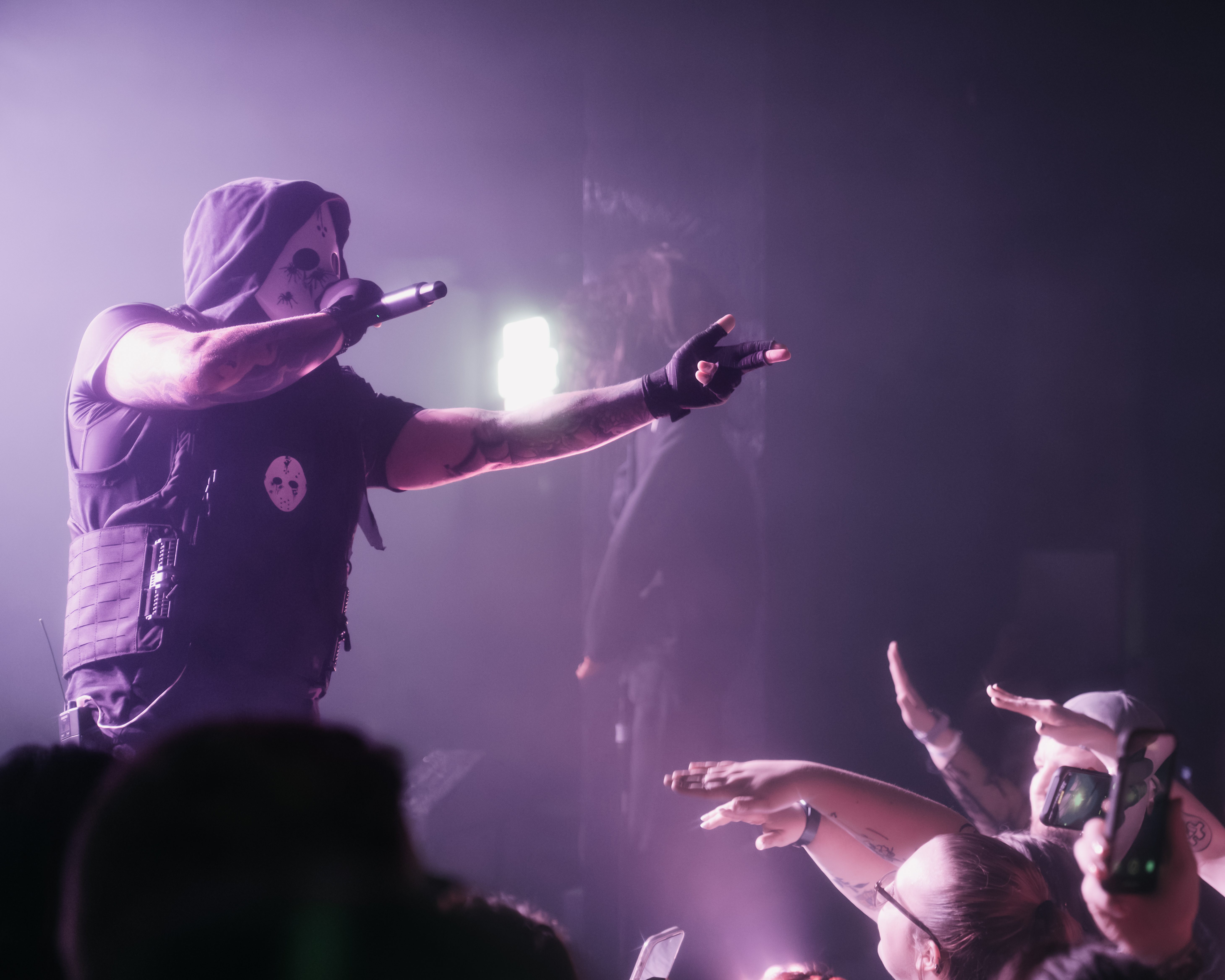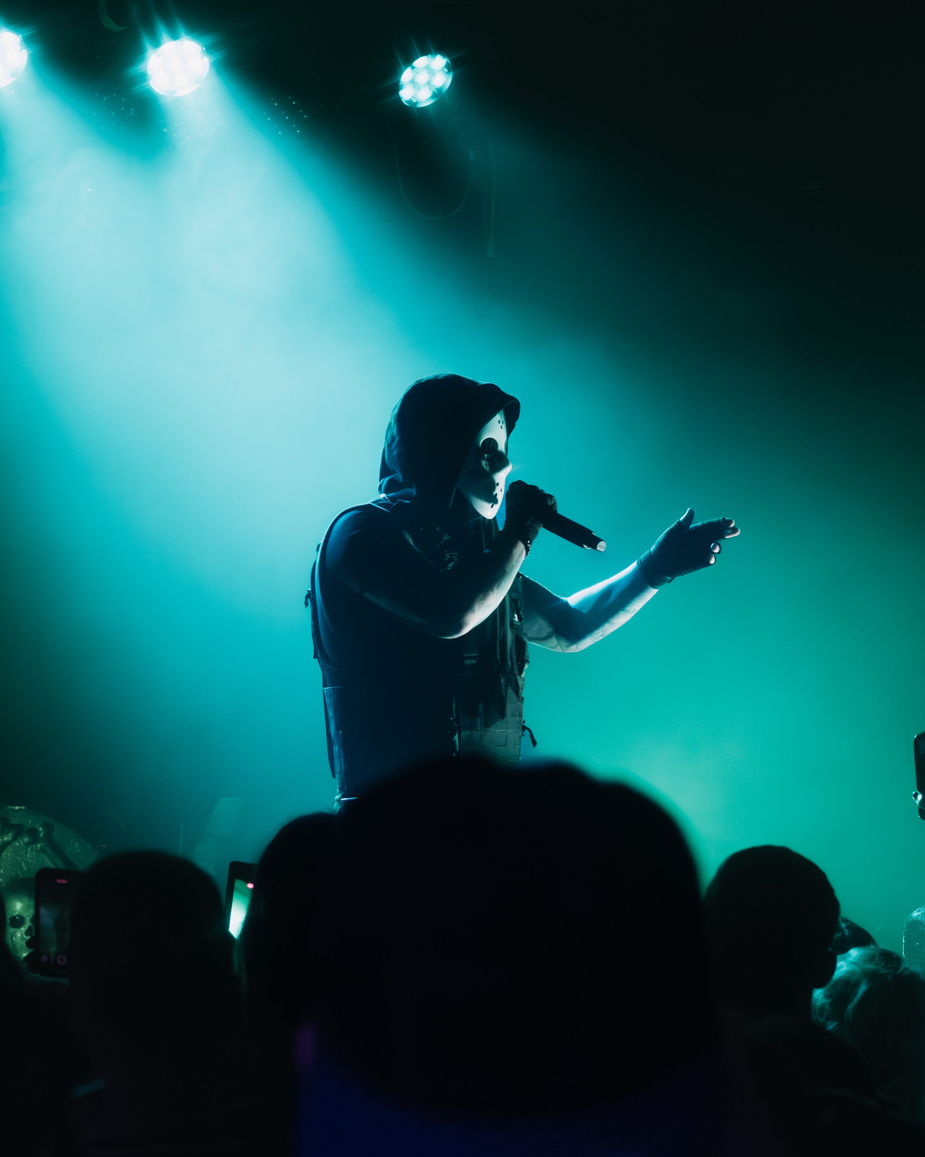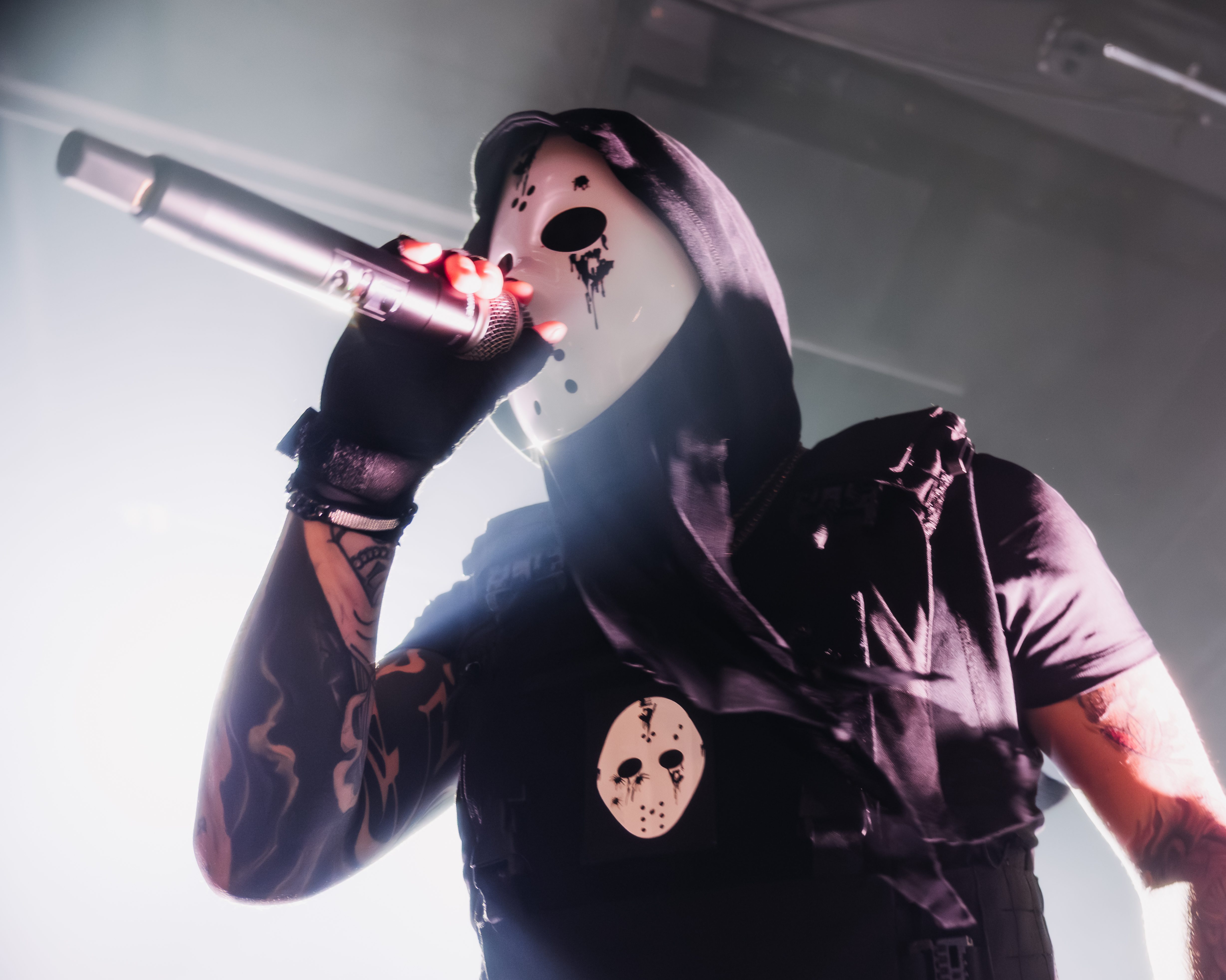 The opener, Resentvul, came out wearing a black ski mask like he’d just robbed a gas station. His DJ was decked out in a red sequined “Scream” mask that caught the lights like a disco ball from hell. The set hit fast and raw, a 30-minute barrage that felt like getting stomped in the back of a van. Then—silence. The kind of silence that trembles with anticipation. It was time.