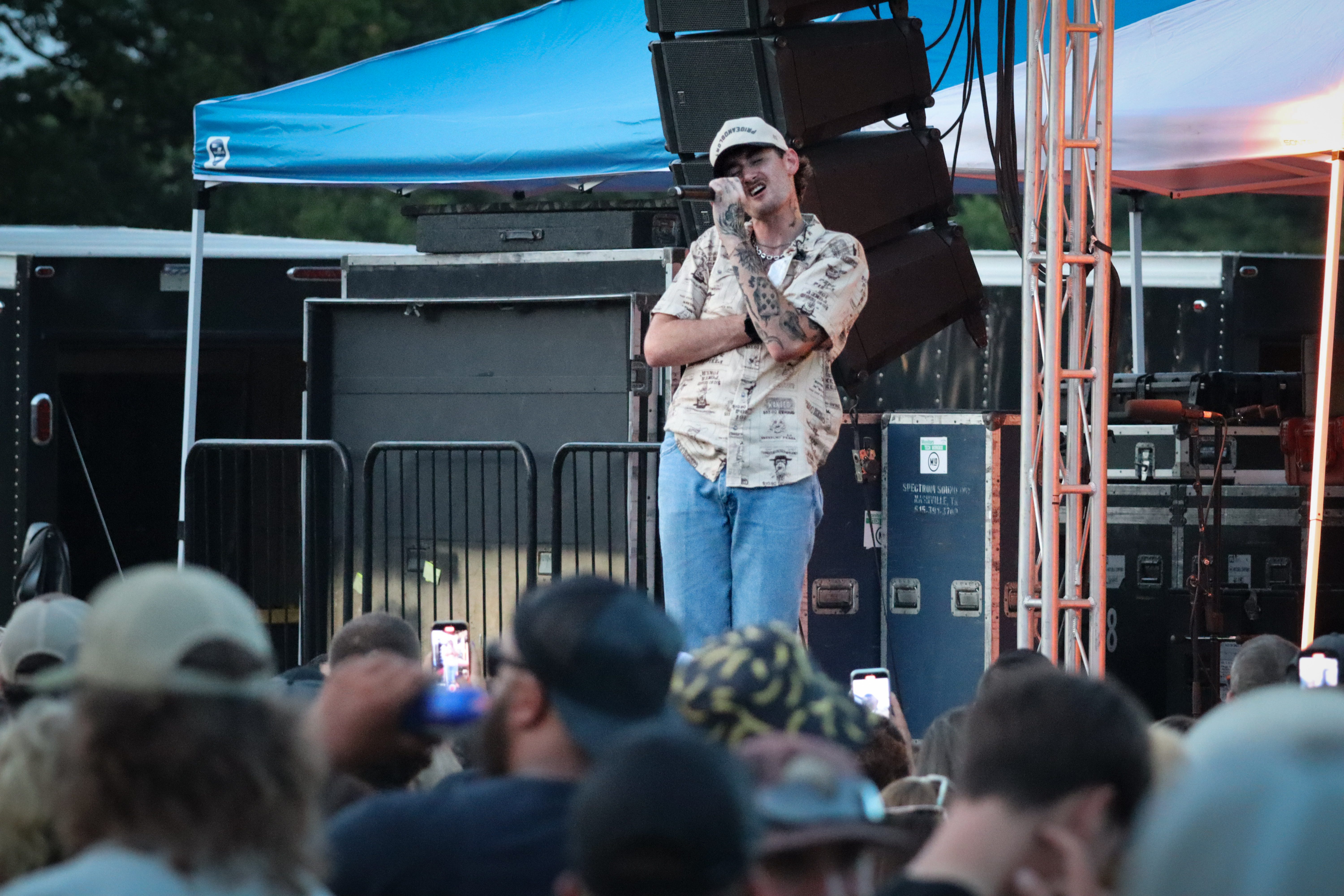 Shortly after Austin performed, the night sky was hovering Edgar County. Stagehands began to take down and set up different equipment, and fans scurried to grab more drinks. Mitchell Tenpenny was about to take stage. As the lights dimmed and a beautiful sound emerged through the speakers, fans roared! Tenpenny walked on stage from stage right. Grabbing his microphone, Tenpenny encapsulated his fans with songs such as “Woke Up In A Dream” from his newly released album The 3rd and older songs such as “Truth About You.” While Tenpenny performed “Truth About You,” he harmonized with the audience in singing the lyrics as he listened. Tenpenny even took a step back as his guitarist and bassists took the spotlight for guitar solos. As the show went on, Tenpenny engaged the crowed in screaming the lyrics to his song “Bitches.”