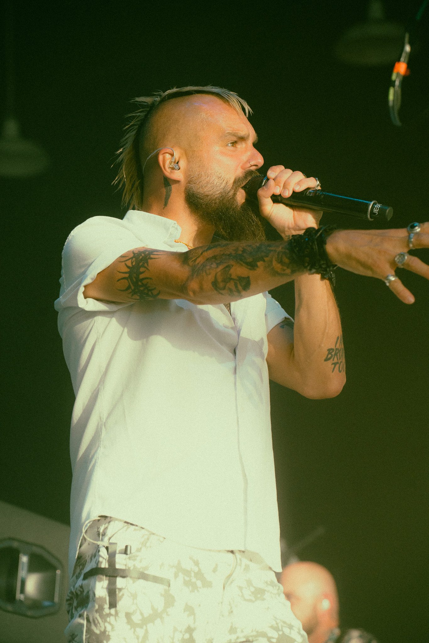 Killswitch Engage was up and this was my first time seeing this band live. The vocalist did not disappoint. As I was in the photo pit, I was in complete awe of his stage presence. Within the first minute of the first song, he hopped off the stage and went down the barricade until he went from one end to the other, hugging attendees and singing to everyone. This is when the weather was at its hottest, and of course, when we thought we would survive this set, the pyro started. The heat from the pyro made this summer day feel like we were in the desert. “My Curse” was finally performed and that’s the only song I knew from this band. Once the song started, I felt my soul leave my body because of how angelic the vocalist was with his vocals. The live performance of this song sounded like the studio version.