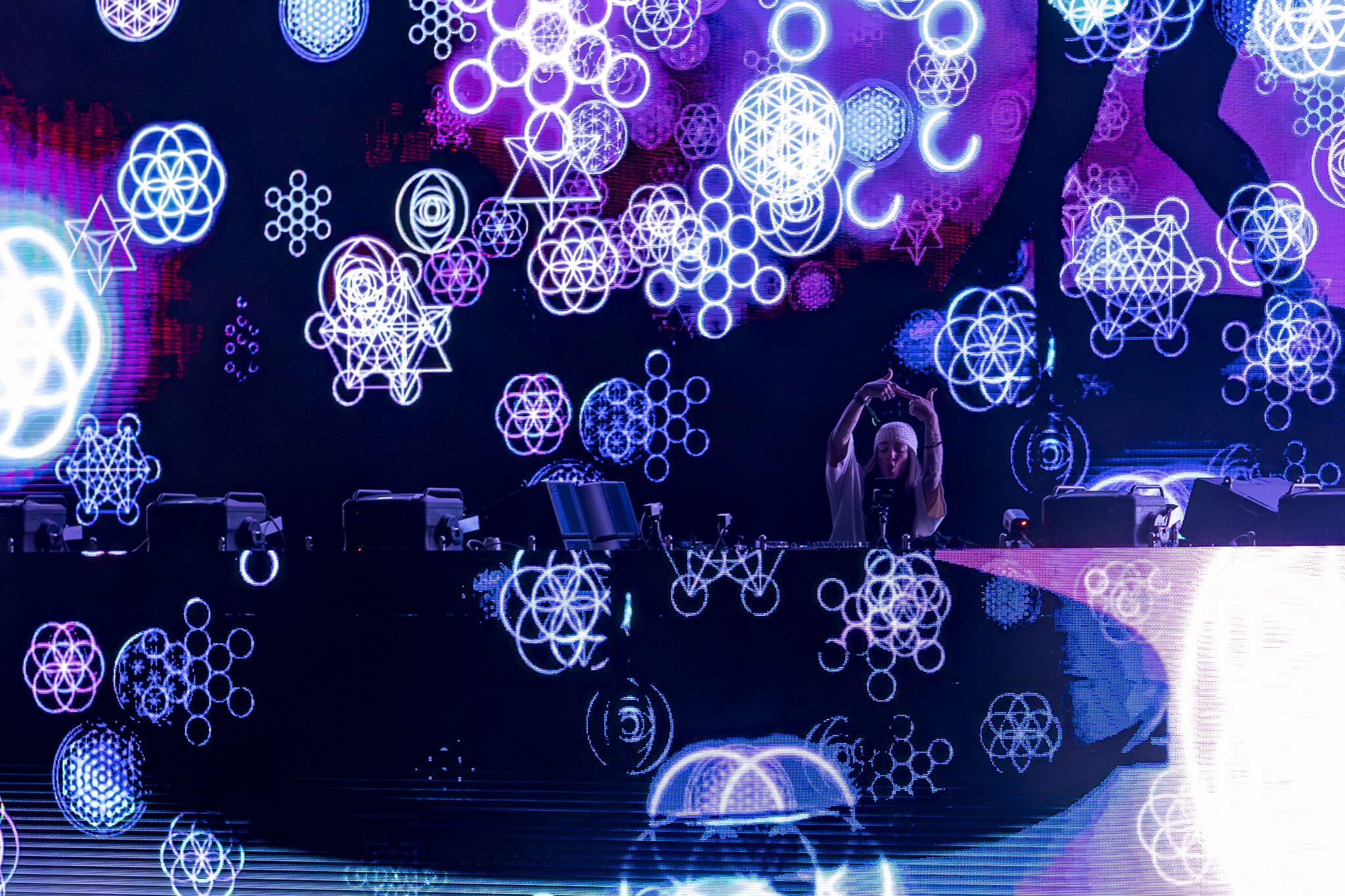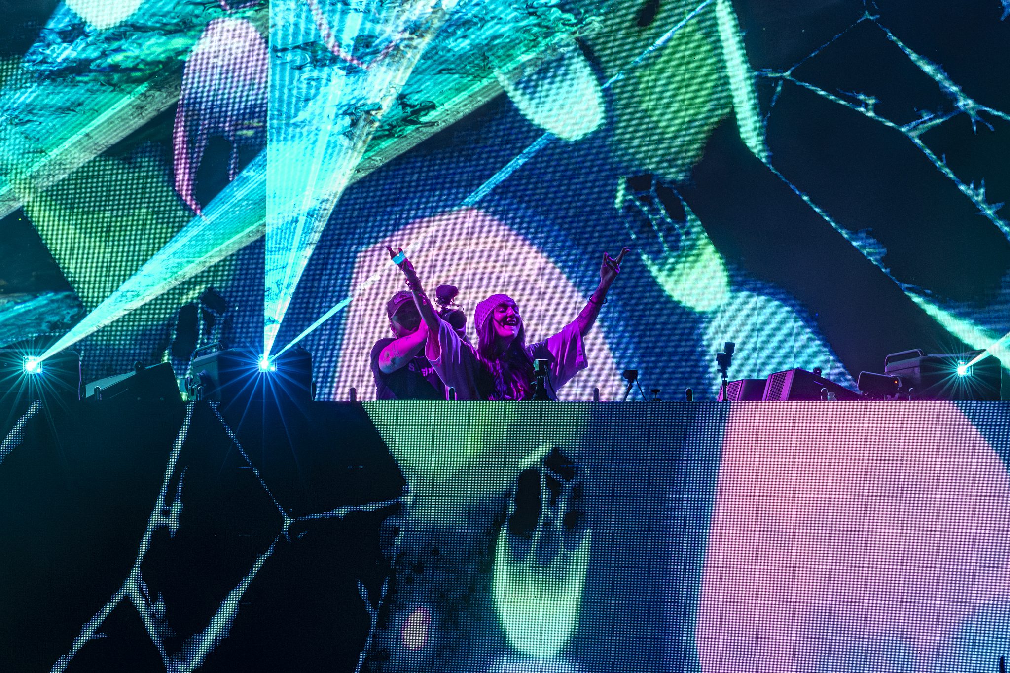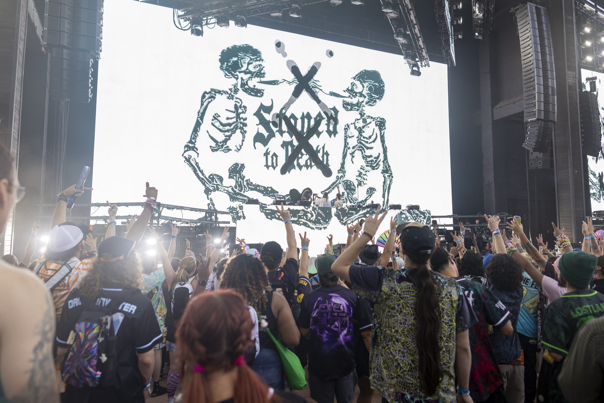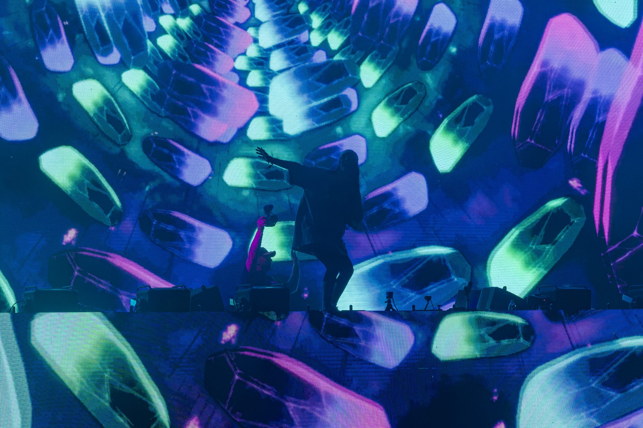 Stoned Level and Muerte opened the night with a tag team set they appropriately call “Stoned to Death” that cracked the air like a bat against bone. Glitchy, filthy, low end perfection, and the visuals were giving next dimension.