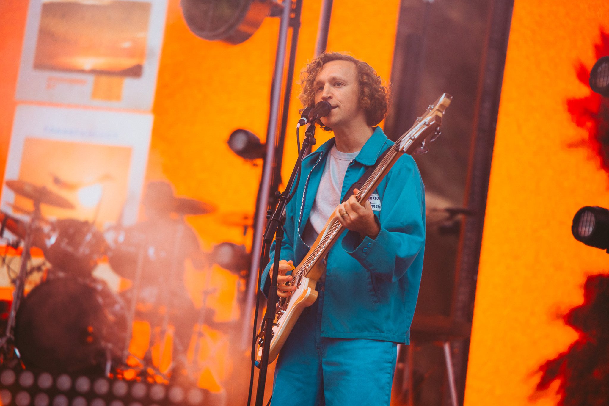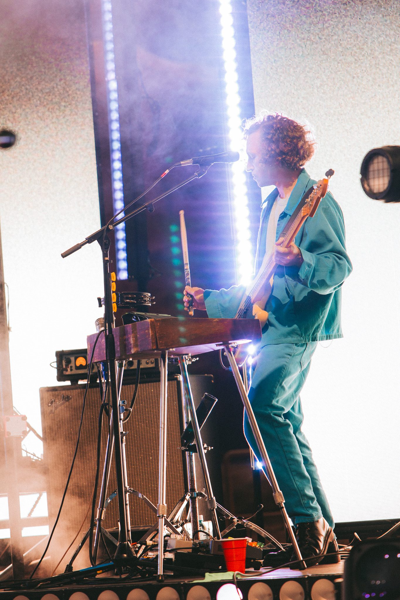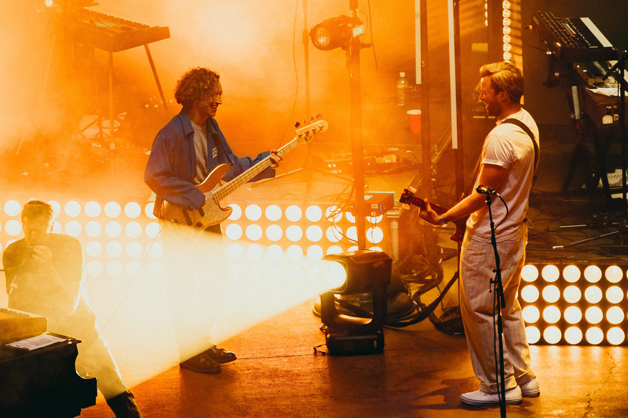 Another piano appeared on screen, his next love letter unfolding. “This was our moment, the two of us, my young family and a new band of old friends criss crossing the continent on a new mission. Could I do it better this time? Could I fight for a dream without losing myself along the way? There were so many questions in those bright uncertain days, but none more pressing than this: Would this fickle world of noise permit another name change, another sound?” The answer to those questions was a resounding yes—words speaking, of course, to McMahon’s most recent and current project, Andrew McMahon in the Wilderness, a project that would go on to redefine his career and deliver his biggest success yet. The band took the stage, kicking off the set with “Love and Great Buildings,” and continuing with favorites like “High Dive” and “Maps For The Getaway.” “Canyon Moon” was a necessary choice given the setting, and McMahon took to the crowd during the song, climbing the many steps of the venue without missing a beat. He shared that it has always been a dream to play a huge venue outside in the summer because there is something so magical about it. Josh Partington joined the band for “Little Disaster,” a track from the most recent Wilderness album, Tilt At The Wind No More, and Zac Clark featured on a verse of “Island Radio,” which he co-wrote with McMahon. McMahon jokingly noted that there was “only one song left” for the night, before closing out the Wilderness set dancing beneath a vibrant parachute in the middle of the crowd for “Synesthesia.”