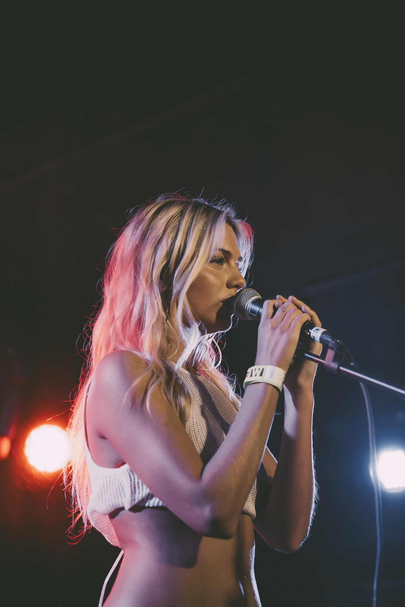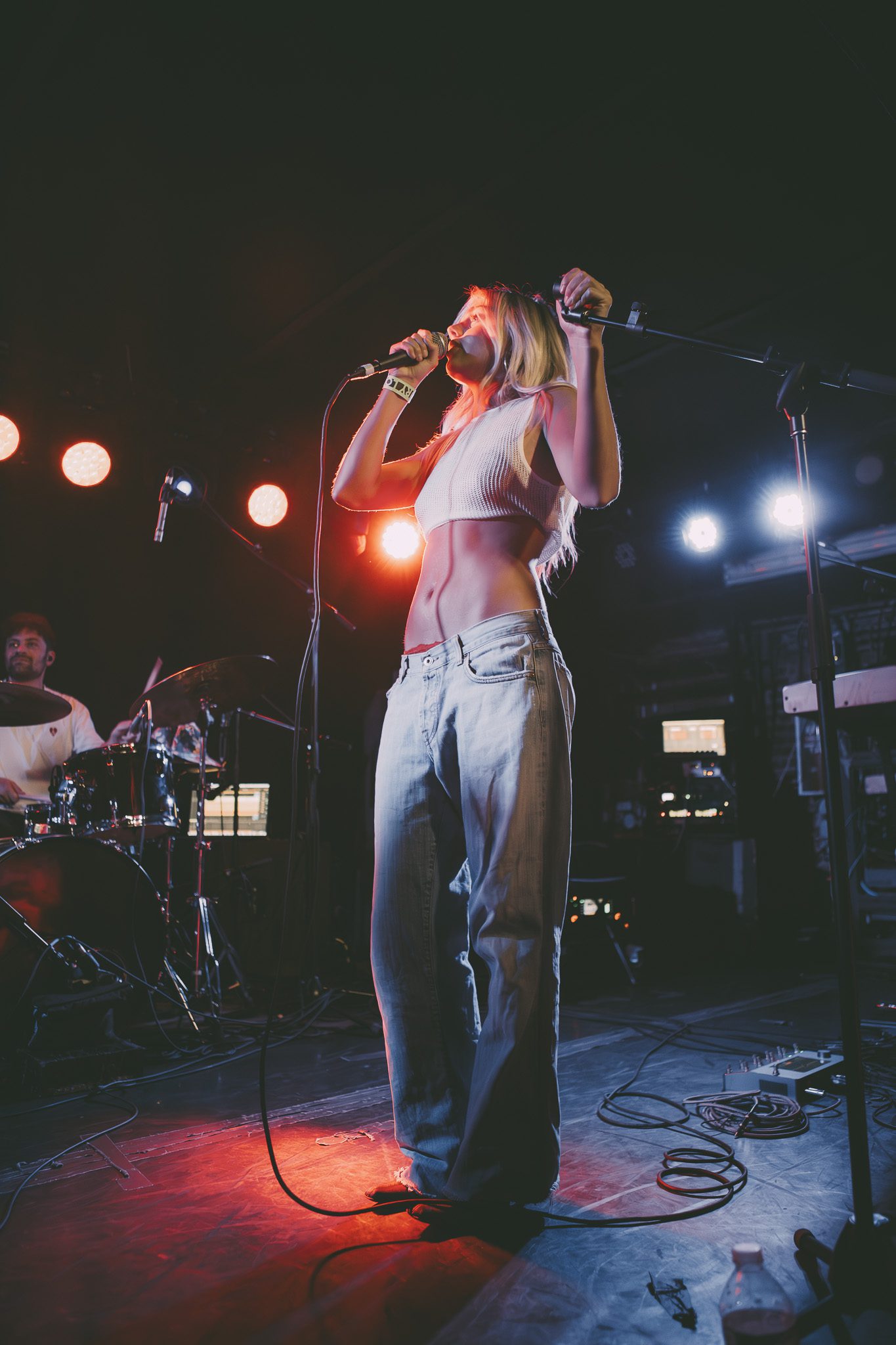 By the time Salort floated onto the stage, the room shifted. No deafening cheers, no chaos – just a revered widening of eyes, a collective breath drawn in unison. She had them immediately. The front row sang back every lyric as if they’d lived them first, though her EP had barely been out a month. That’s the mark of a songwriter carving her initials into listeners’ hearts – her stories became theirs before the last chorus even ended.