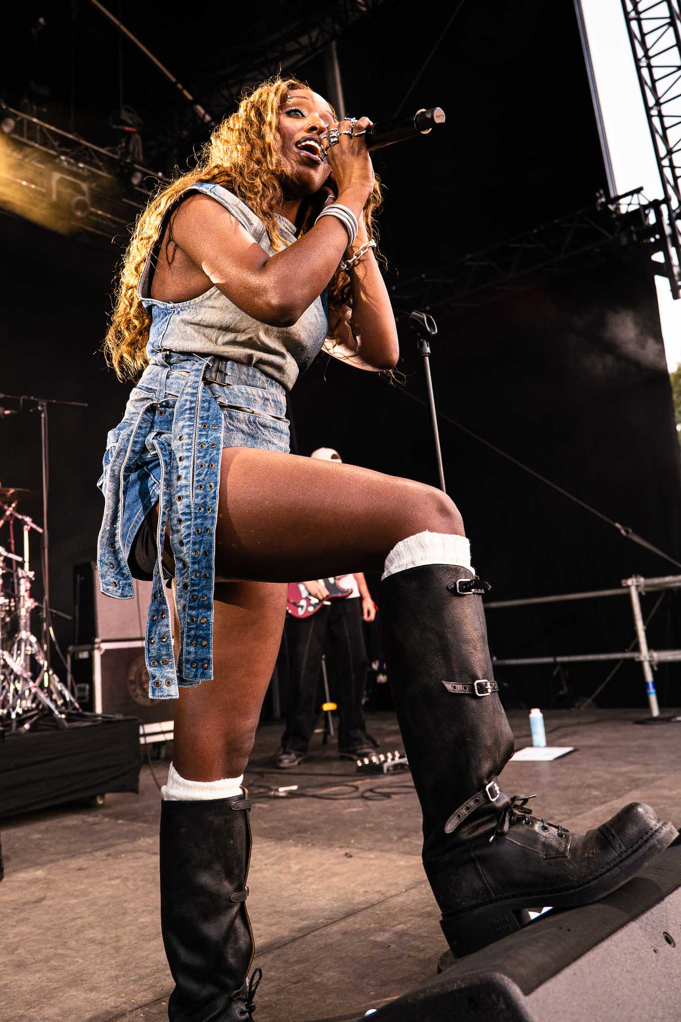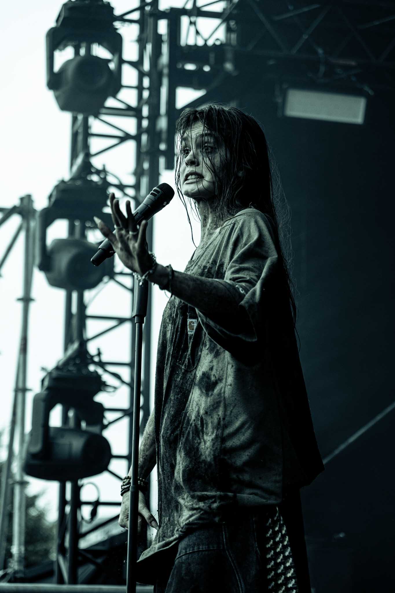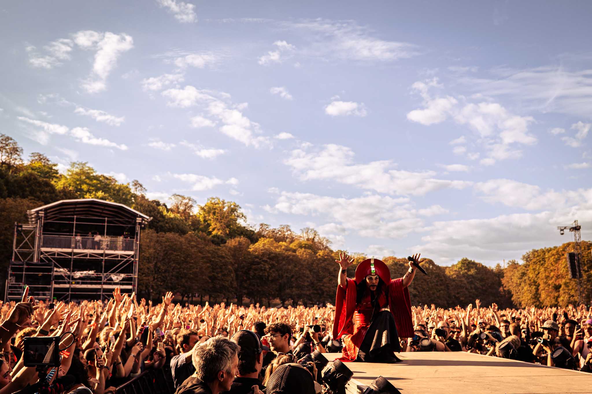 To close out an already amazing day, it was time for Chappell to shine. Luckily, the rain stopped before her set. The French audience was more than ready after her cancellation last September, and Rock en Seine was her only French date this year. When the lights went down and the first notes of her intro echoed, the crowd went absolutely wild, and the energy was electric. Her intro sound and castle-like set reminded me of a villain-princess movie. As her band played the first notes of “Super Graphic Ultra Modern Girl” across the park, the audience held their breath… until Chappell finally appeared. Dressed in a green fairy outfit with astonishing makeup, she had everyone ready to have the time of their lives.