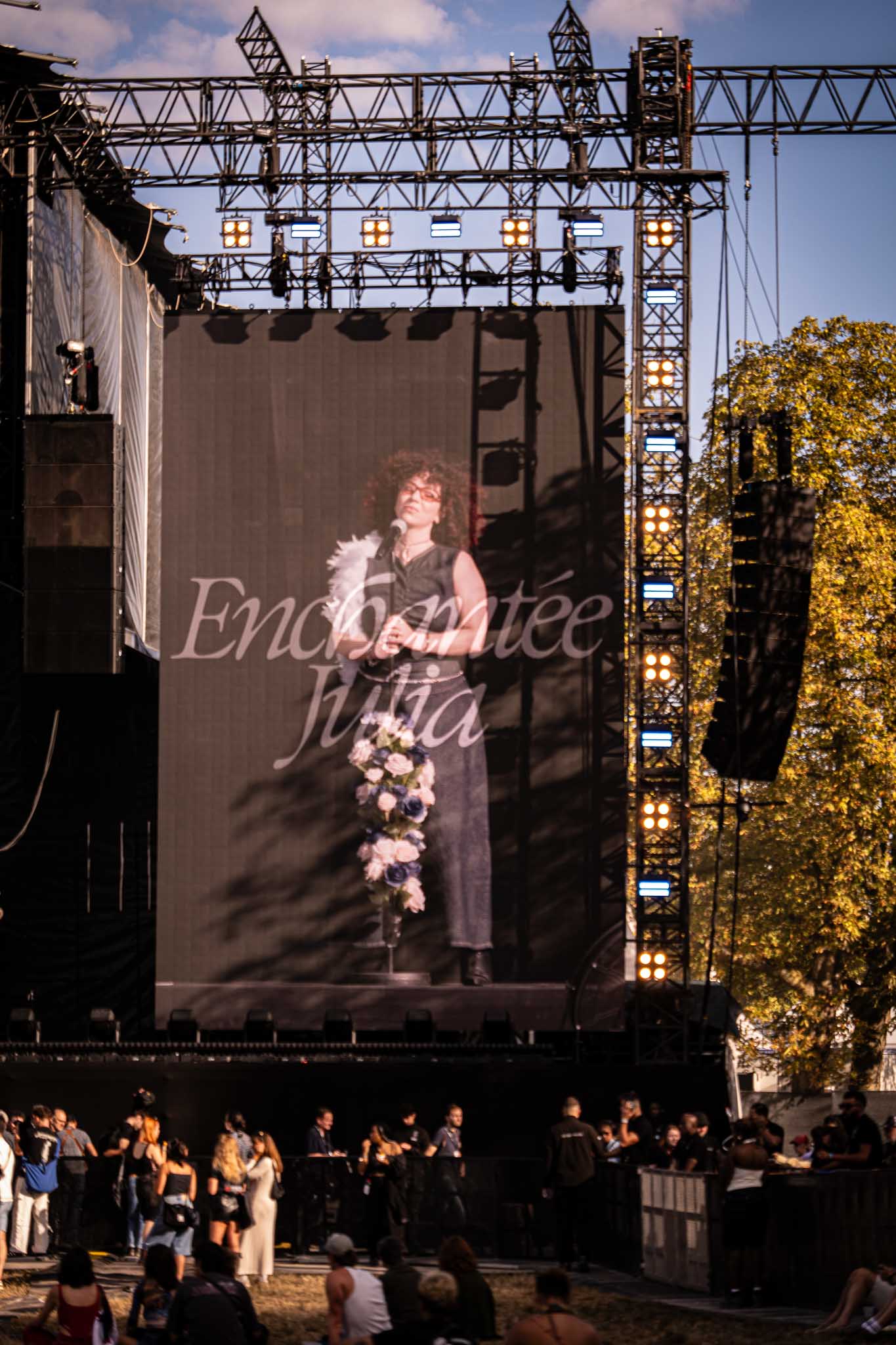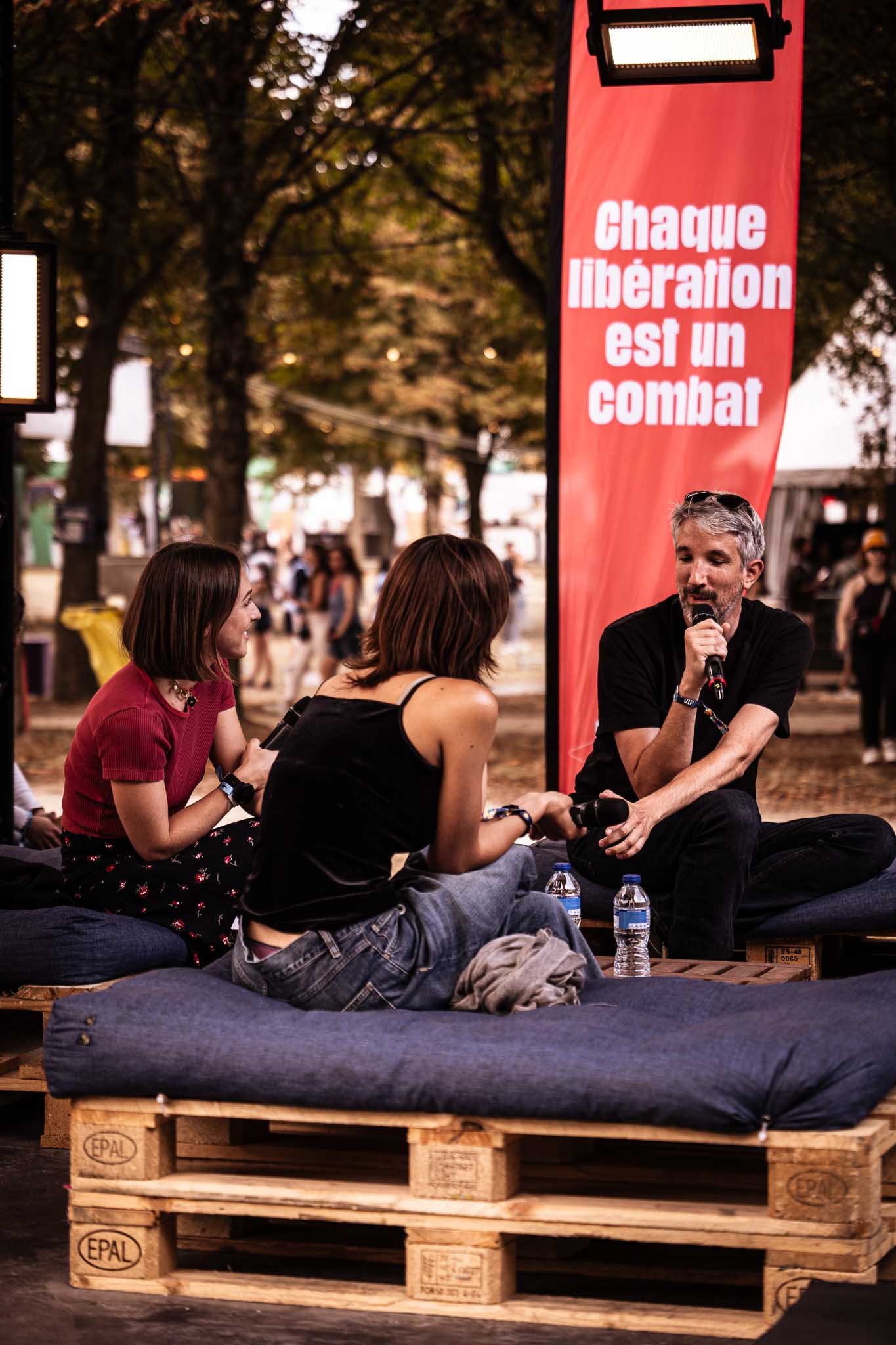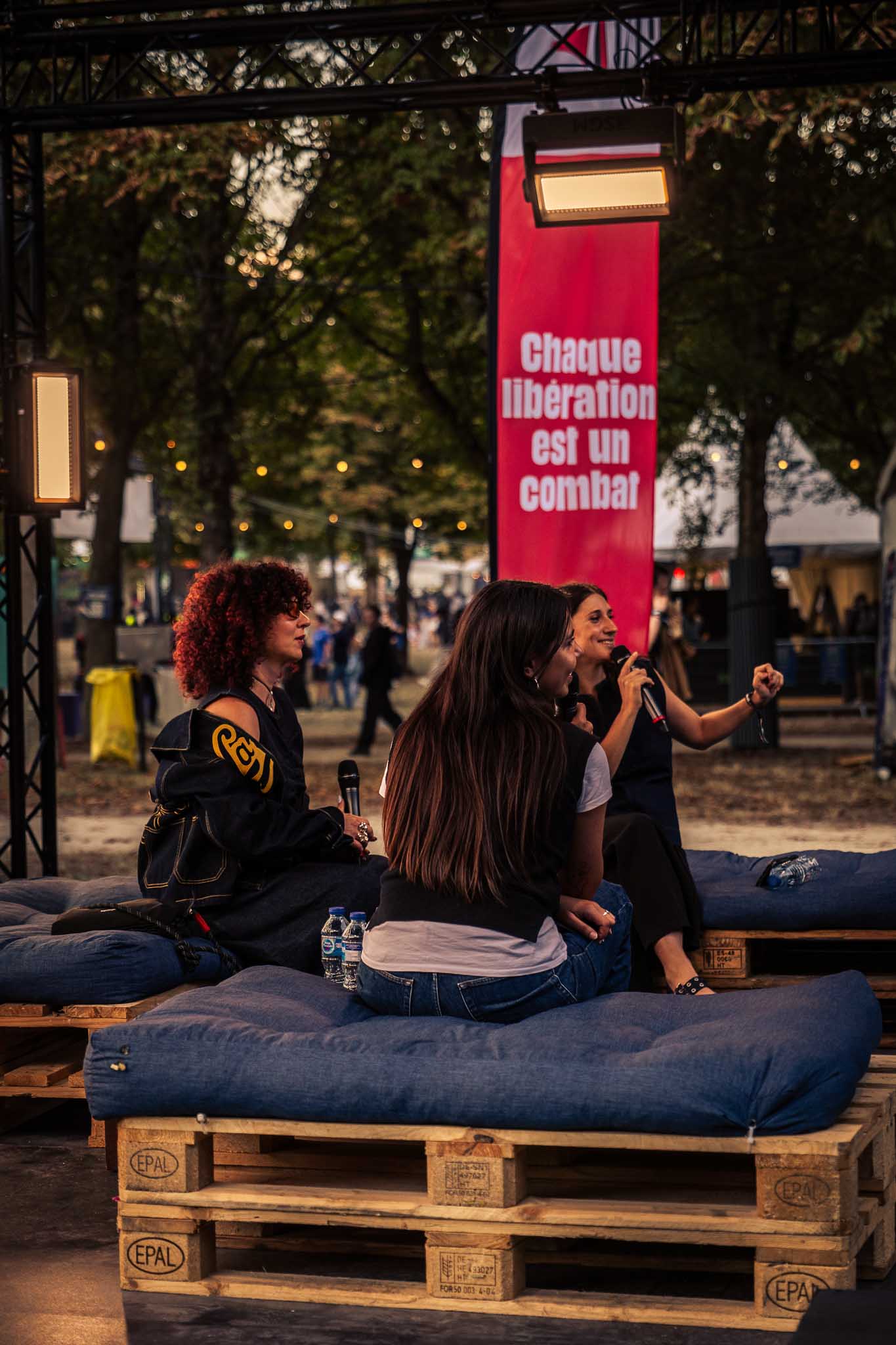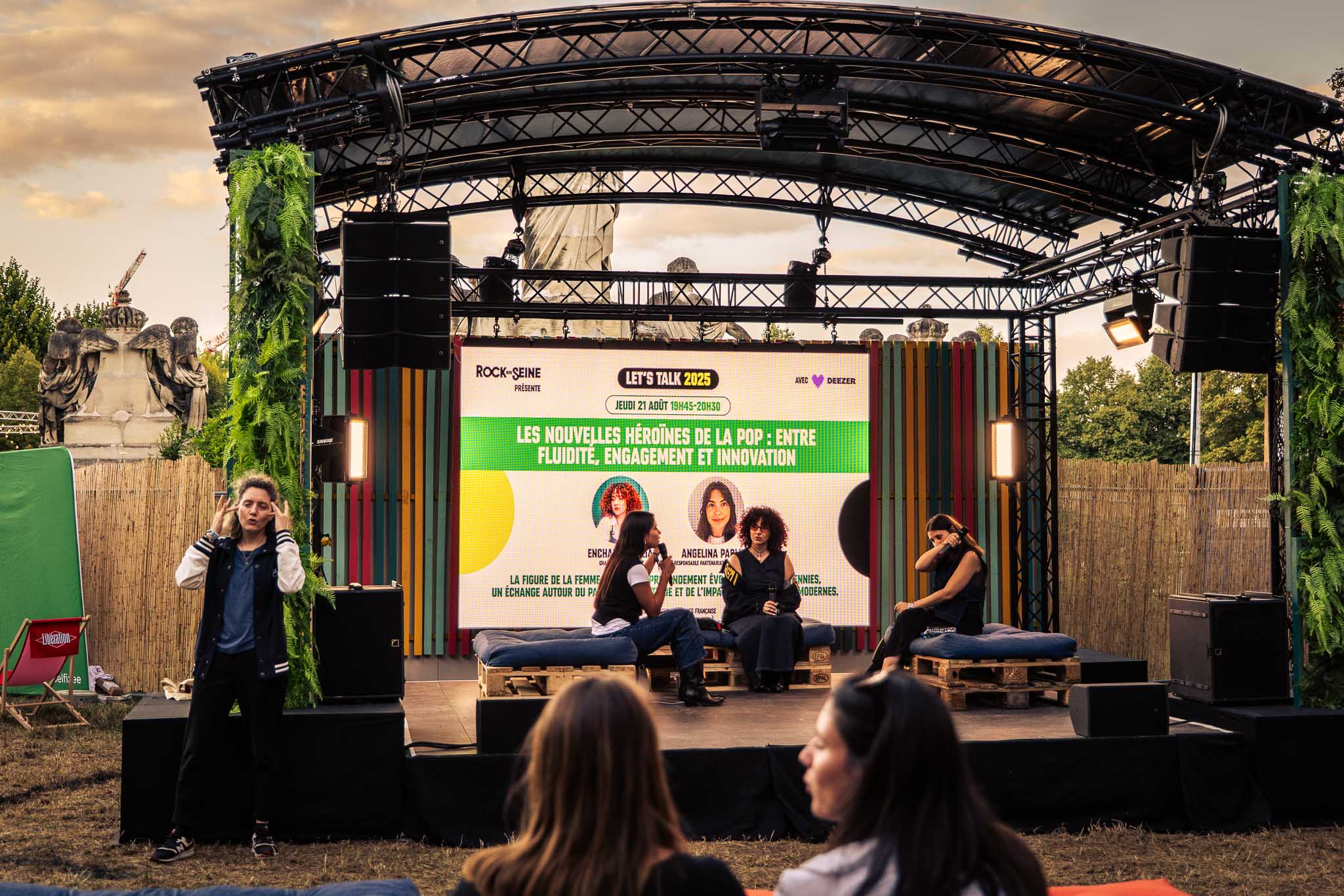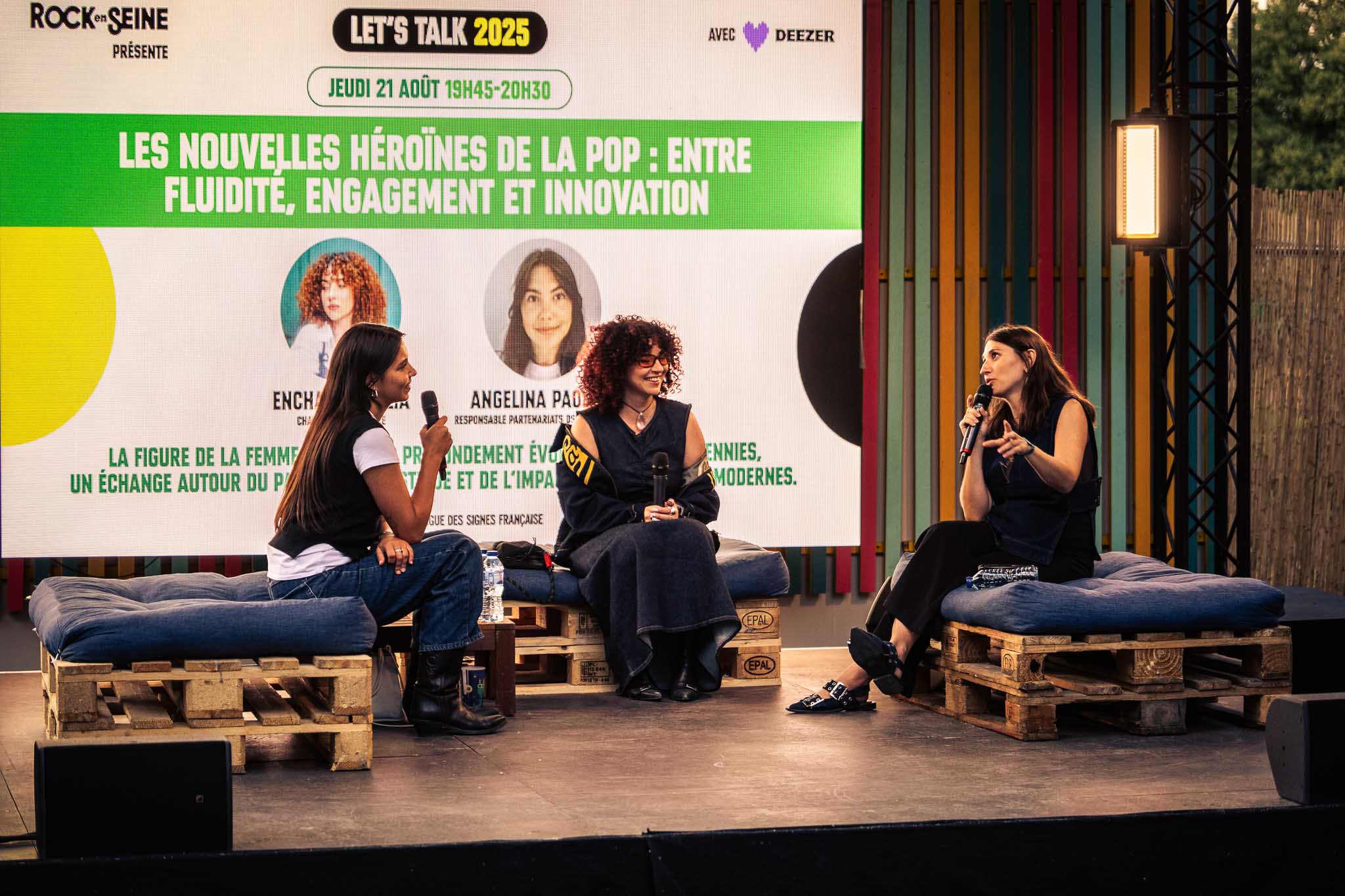 I took a little break to explore some of the other activities at the festival and ended up at the Talk Stage, where to my surprise Enchantée Julia was speaking alongside Angélina Paolini (Wagram Music) and Camille Ferrand (Deezer). Their conversation touched on a crucial topic in today’s music world: the new generation of female pop heroes. They discussed women’s place in the industry, the persistence of sexism, and the reality of often being surrounded by cis-white men — while also sharing a hopeful message to never give up, as progress is happening. They highlighted some of their favorite pop innovators, from Théa reinventing hyper-pop to Rosalía blending flamenco with urban music to Yoa, Karol G, and more.