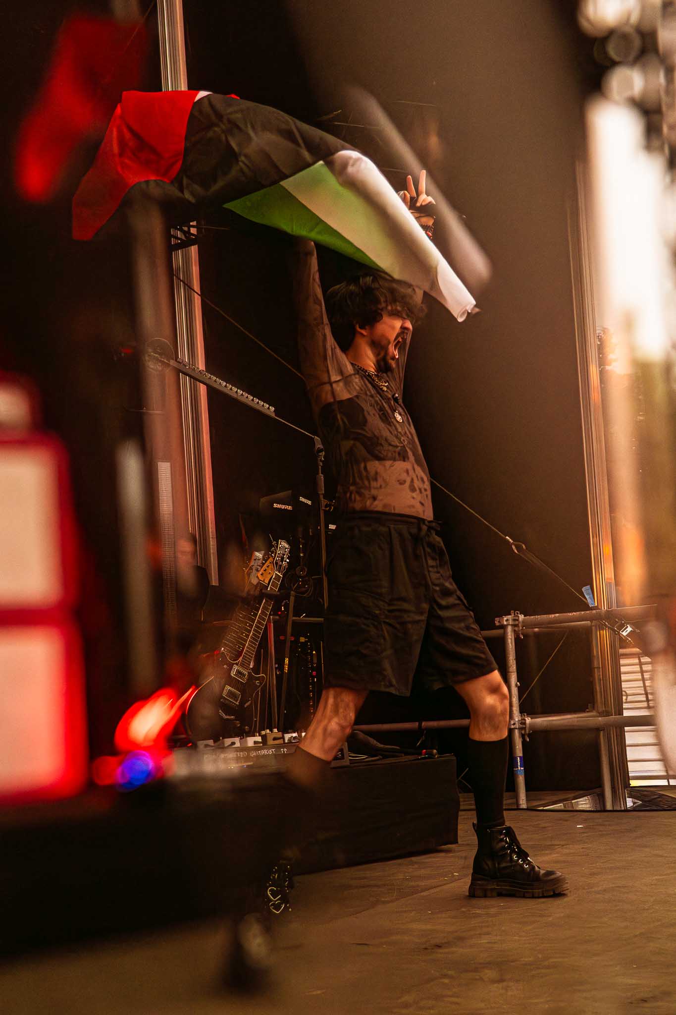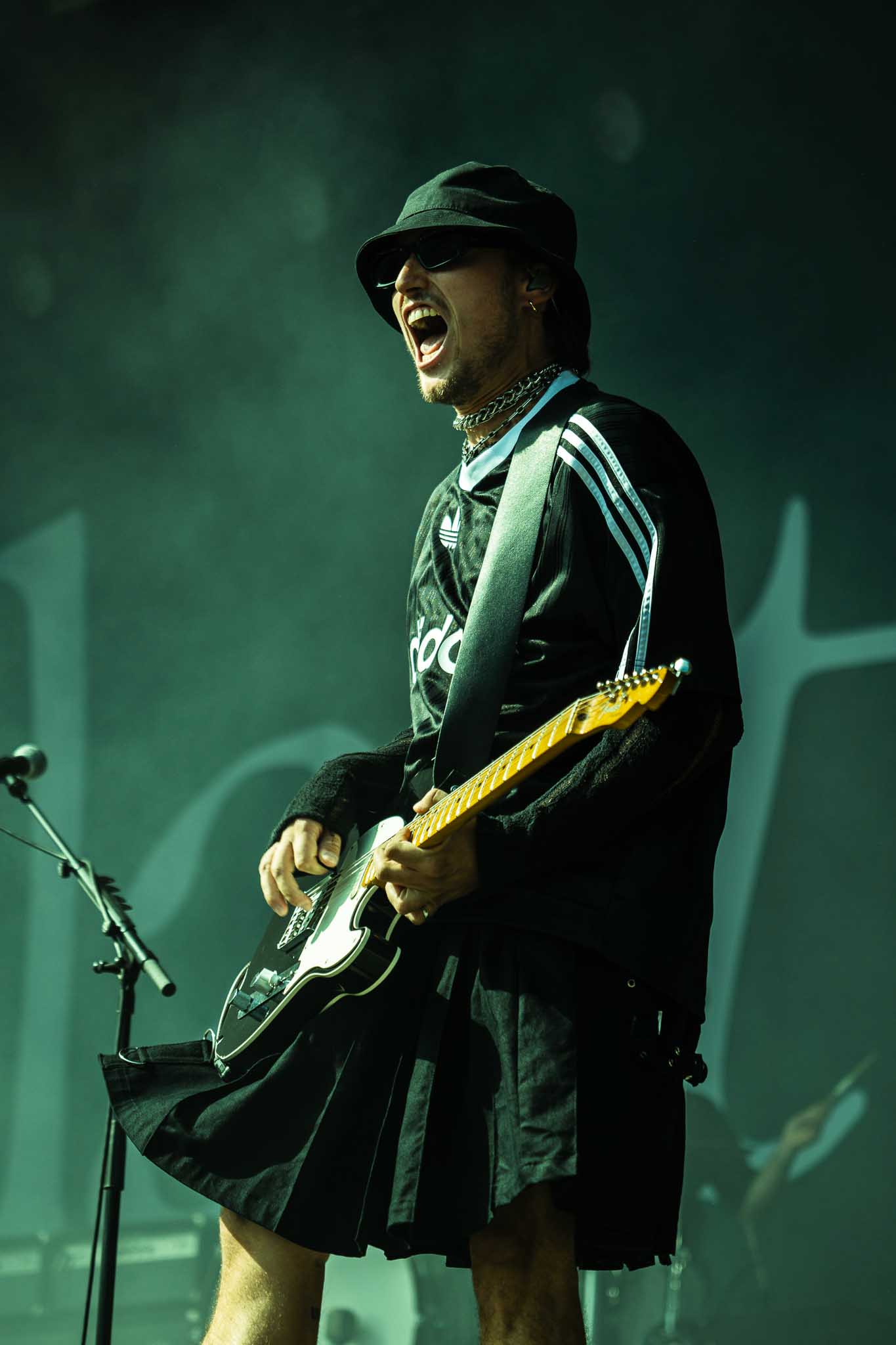 It was then time for Kneecap, whose presence at the festival sparked heavy controversy. The Irish rap trio is known for their unapologetically political stance on the Middle East, openly supporting Palestine, which didn’t sit well with the French administration. After repeated calls for their removal, Rock en Seine refused to back down — a decision that cost them dearly, as the Île-de-France region pulled its €500,000 funding just two days before their set. Personally, I felt proud that the festival stood its ground and supported Kneecap. As expected, some audience members weren’t thrilled, and whistles rang out during the first song. But the group quickly addressed it, saying they would not be silenced, that today was about coming together and having fun. Security soon escorted the hecklers out. From then on, it was nothing but energy — Kneecap delivered a wild set full of their vibrant, hard-hitting tracks, with mosh pits erupting everywhere.