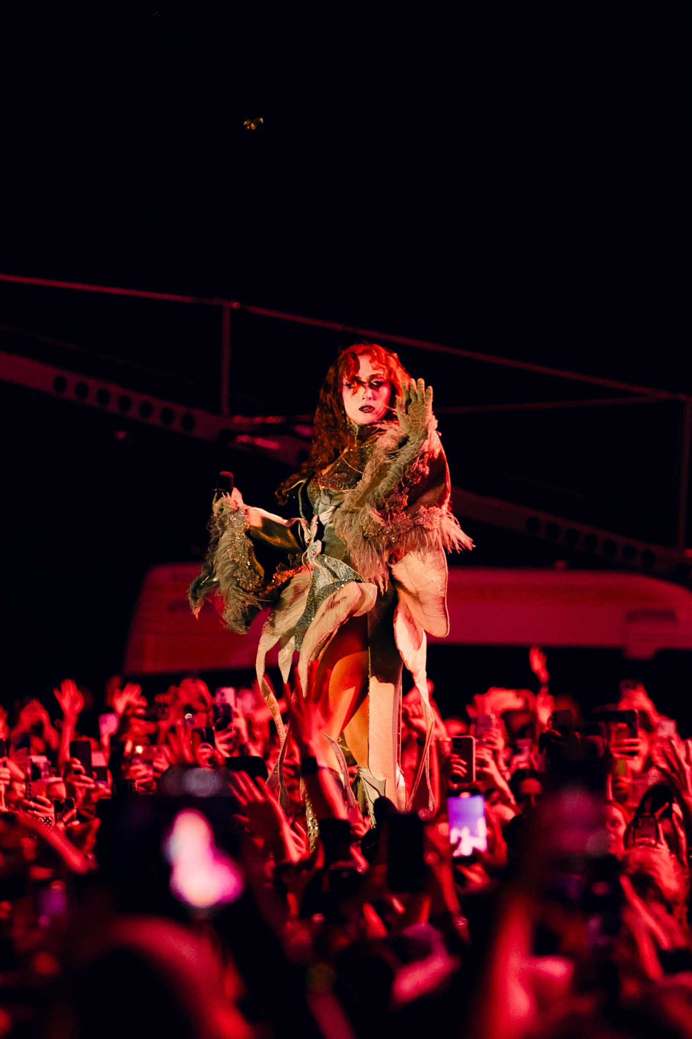 Then came two artists I was especially excited to see and photograph on the Main Stage: Empire of the Sun, whose spectacular visuals and electrifying performance brought an unmatched spiritual energy to the stage, blending soaring synths and a sense of cosmic euphoria that had the crowd completely immersed. And Aurora, who I had already seen a few months ago and who once again exceeded every expectation. With her unreal, dreamlike voice and powerful songs, Aurora has the rare ability to completely transform a space into her own world. She painted her vision of reality through music, speaking about deep topics like politics, Palestine and ecology, while balancing it all with humor — at one point laughing, “as you may know I have quite the boner for Earth.” She truly stands out as one of the greatest artists of our generation. This was my way of ending the day; I didn’t stay for the last two DJ sets, Anyma and I Hate Models, but I heard they were amazing.