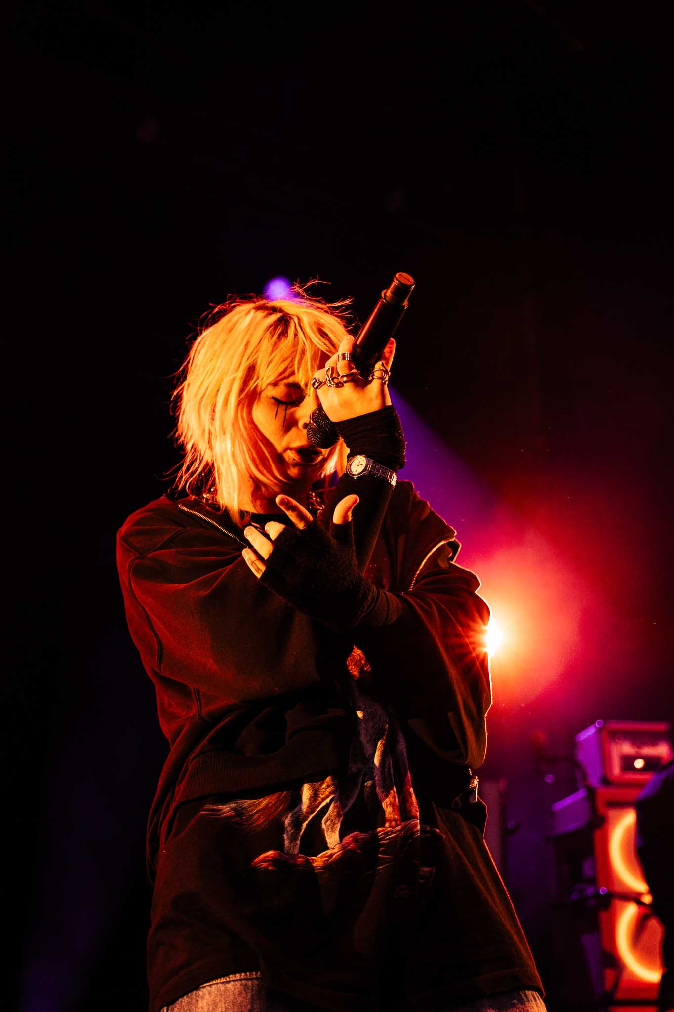 Thea, the French queer artist, followed on the same stage — and I expected nothing less. Having already seen her at La Maroquinerie last year and at La Cigale earlier this year, I know the incredible energy she brings to the stage and how deeply she engages with her audience, making them feel truly connected to her. Delivering hyper-pop rock bangers, she also addresses important topics in her performances, such as “Free Palestine,” blending music and message seamlessly.