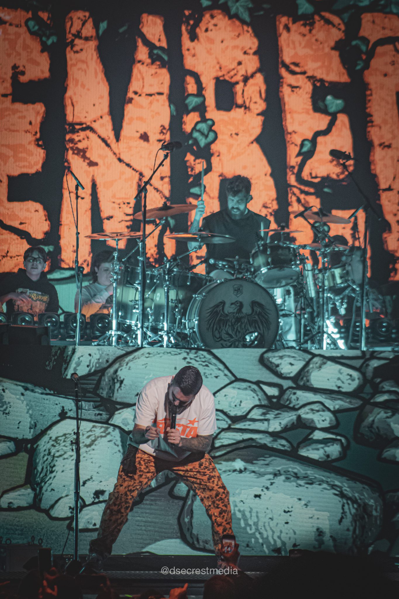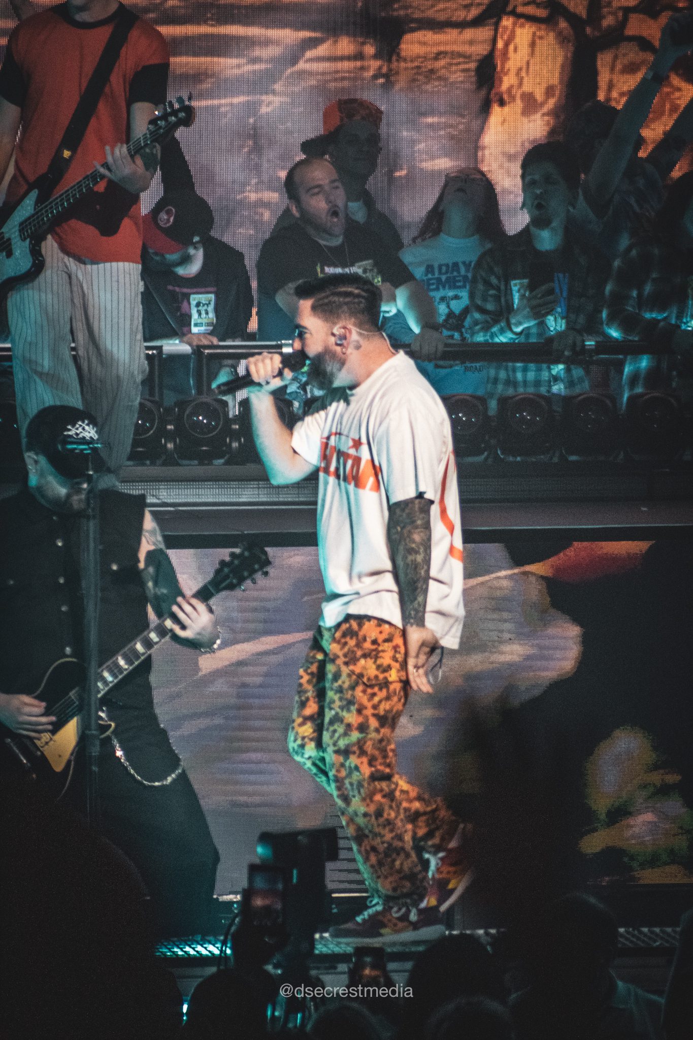 Finally, it was time for A Day To Remember to take the stage. As expected, they started things off with a bang, opening with “The Downfall of Us All.” The crowd exploded as soon as the first notes hit, and the energy didn’t drop once. They moved quickly into “I’m Made of Wax, Larry, What Are You Made Of?” and continued through a well-rounded setlist that included newer material like “Bad Blood,” “Flowers,” and “LeBron,” as well as older favorites such as “Paranoia”and “NJ Legion Iced Tea.” The band didn’t pause much between songs, keeping the pace steady and the crowd locked in.