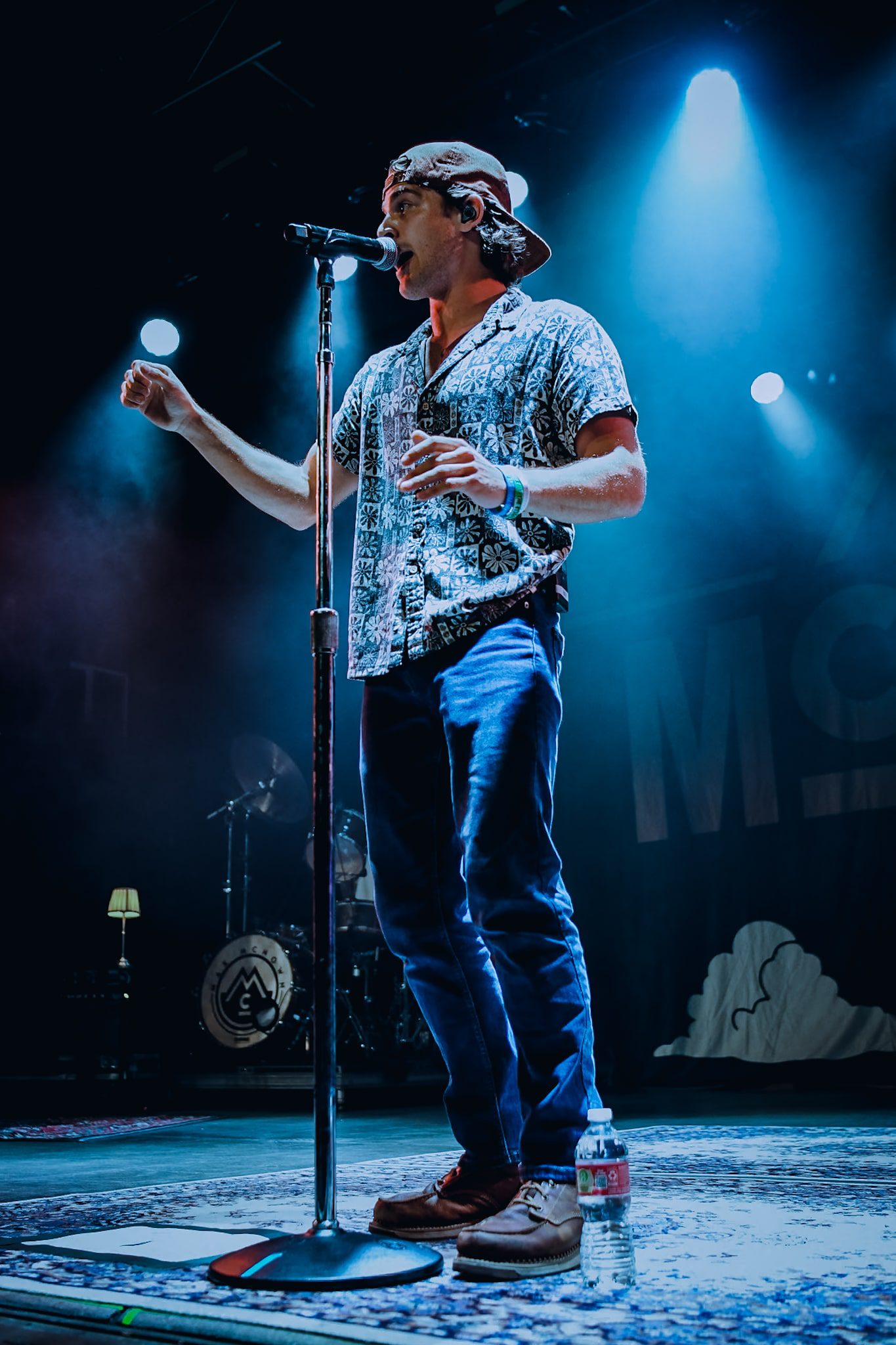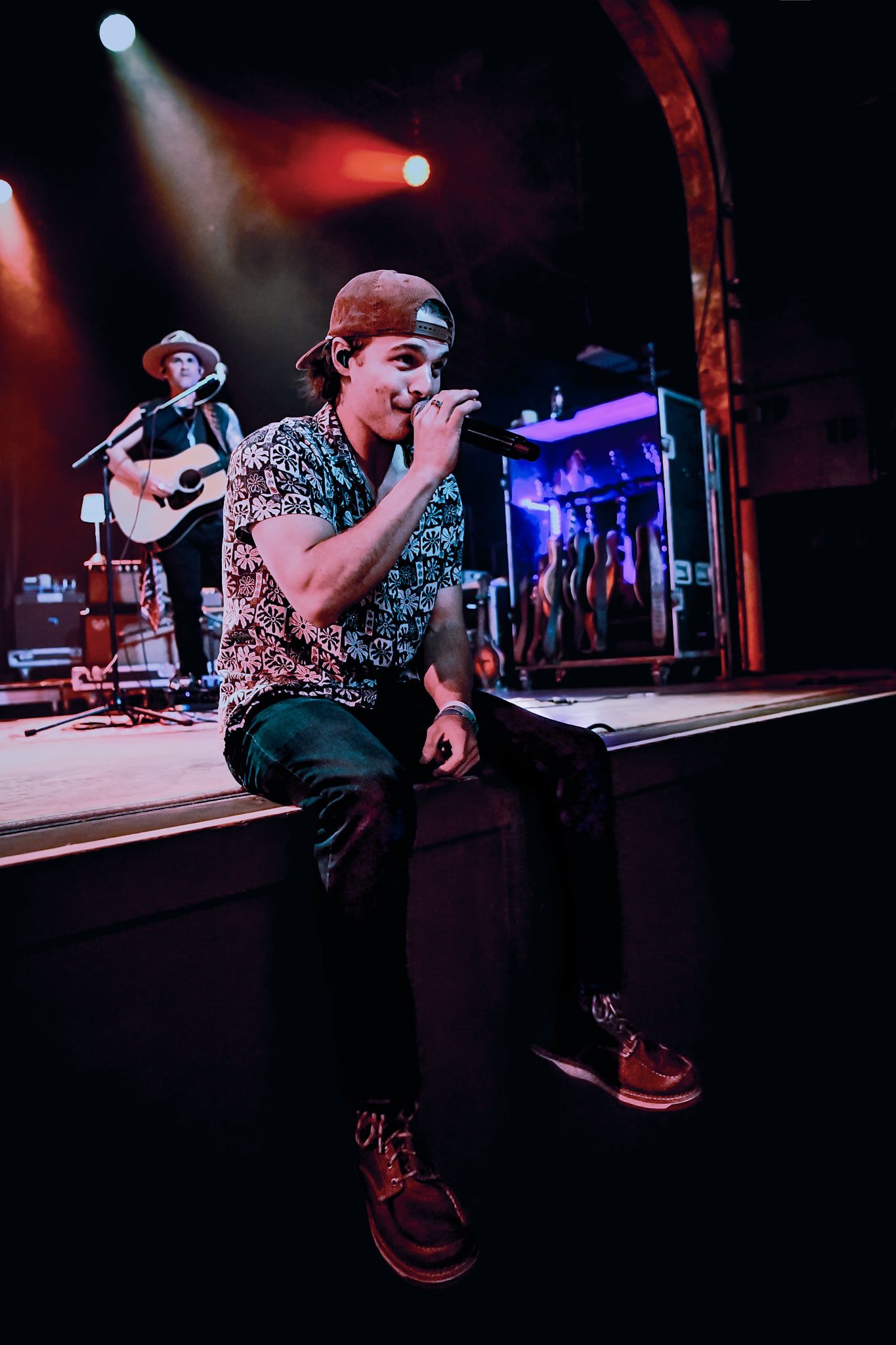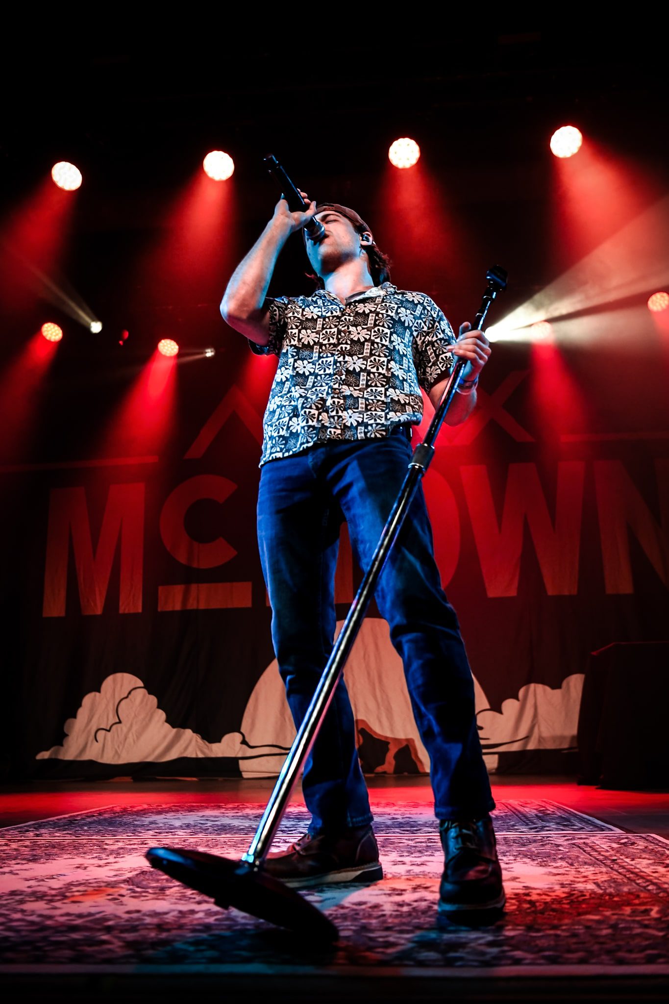 The lights dimmed and the stage illuminated, revealing a Max McNown backdrop and a stage setup with a homey type vibe — flanked by table lamps on each side and a giant rug in the center. The crowd sang along as “Living on a Prayer” played over the speakers, and erupted in cheers as Max McNown burst onto the stage as the second chorus was about to hit. The singer opened the night with “Forever Ain’t Long Enough,” followed by “Hotel Bible,” both tracks from his newest album, Night Driving (The Cost of Growing Up). While “Call Me If You Miss Me” surprisingly hasn’t made the setlist for many nights of the tour, it was a must for this evening, given the opening line of the track. As McNown sang “How’s Arizona?,” the crowd went wild, singing back every word. As the song wrapped, McNown jumped down into the pit, greeting fans along the barricade, exchanging smiles, and doling out high fives and handshakes. It wouldn’t be his only trip to the barricade that evening — throughout the set, he took several opportunities to get closer to the crowd, whether by jumping into the pit or sitting at the edge of the stage to connect with fans at eye level.