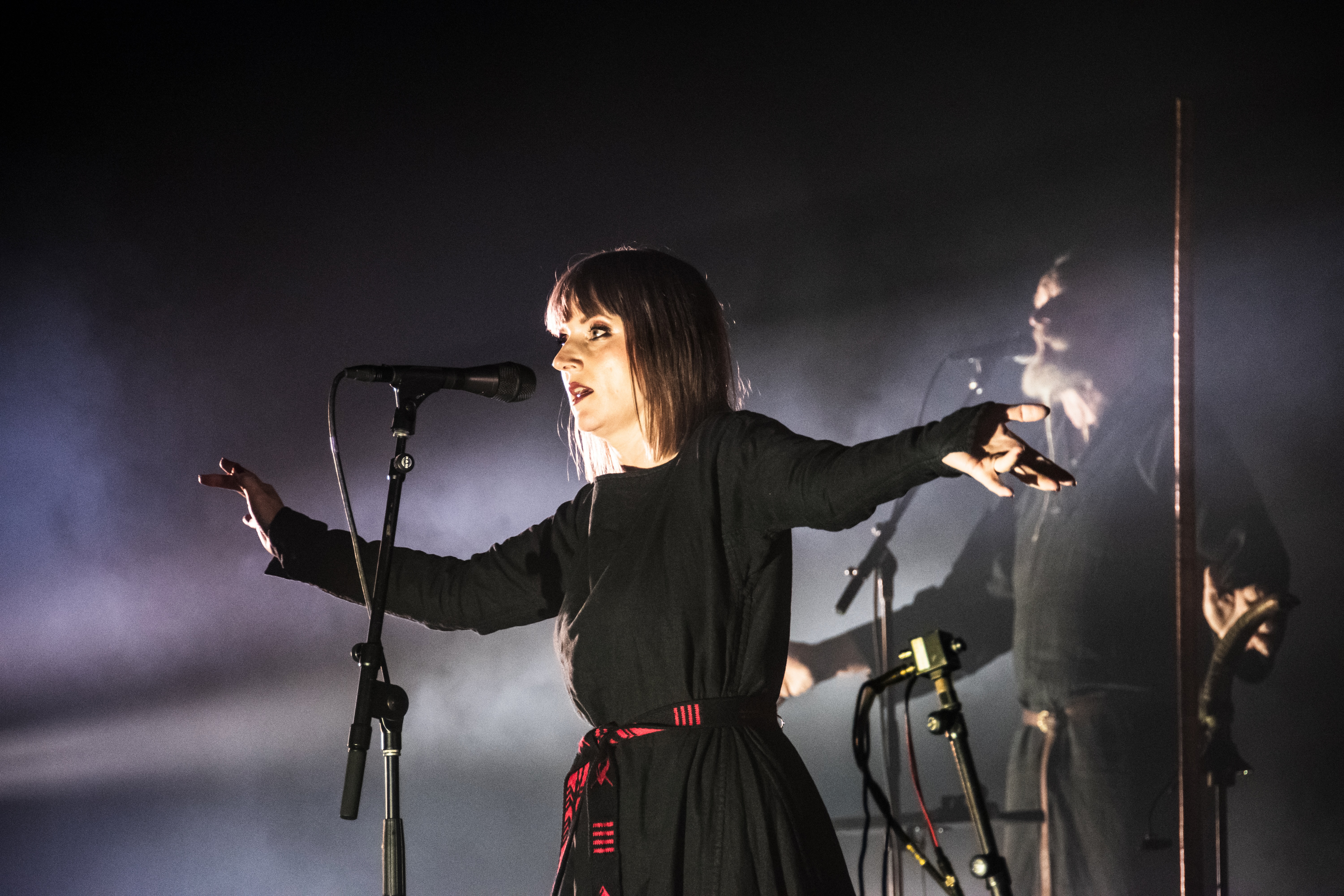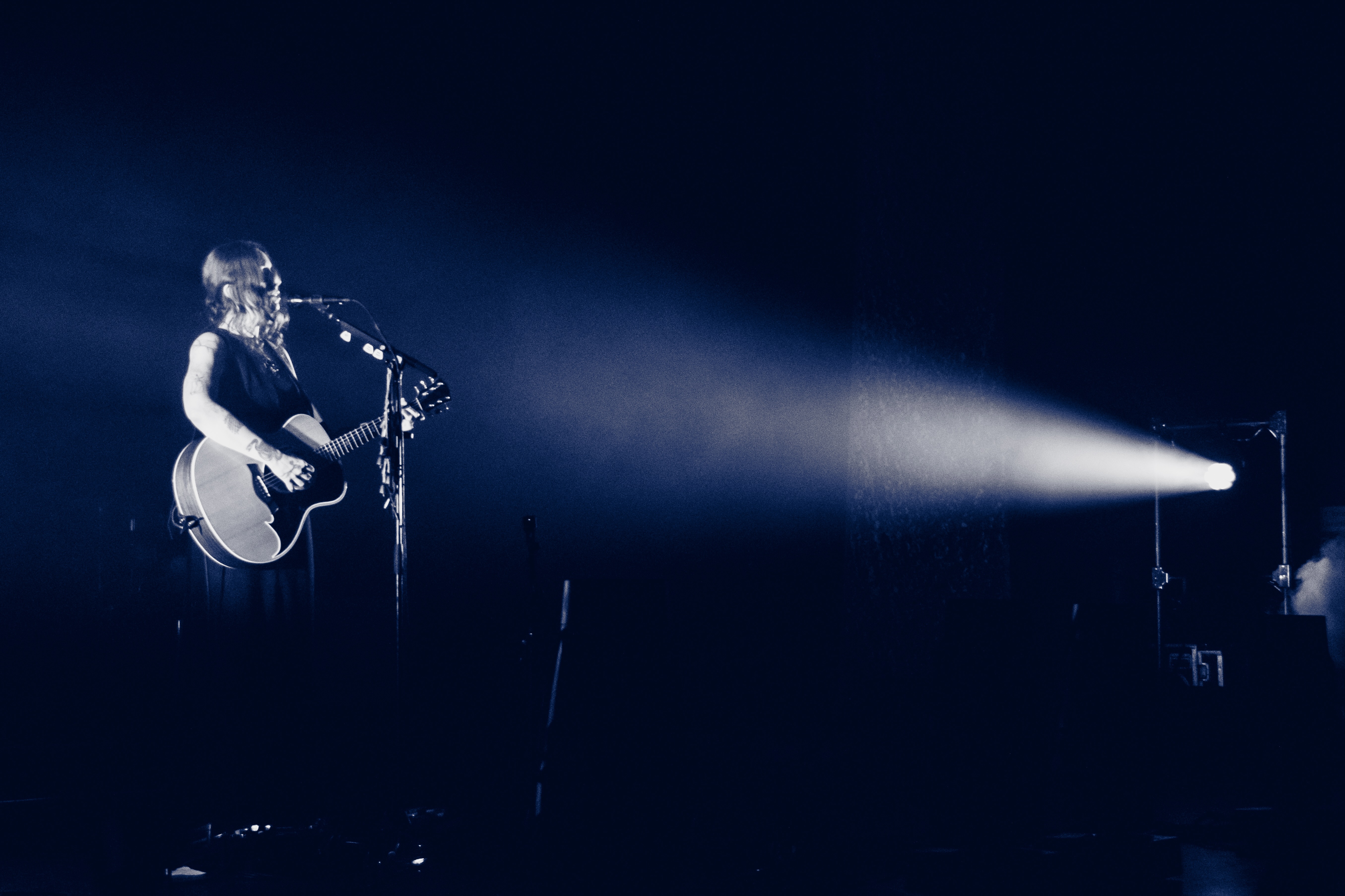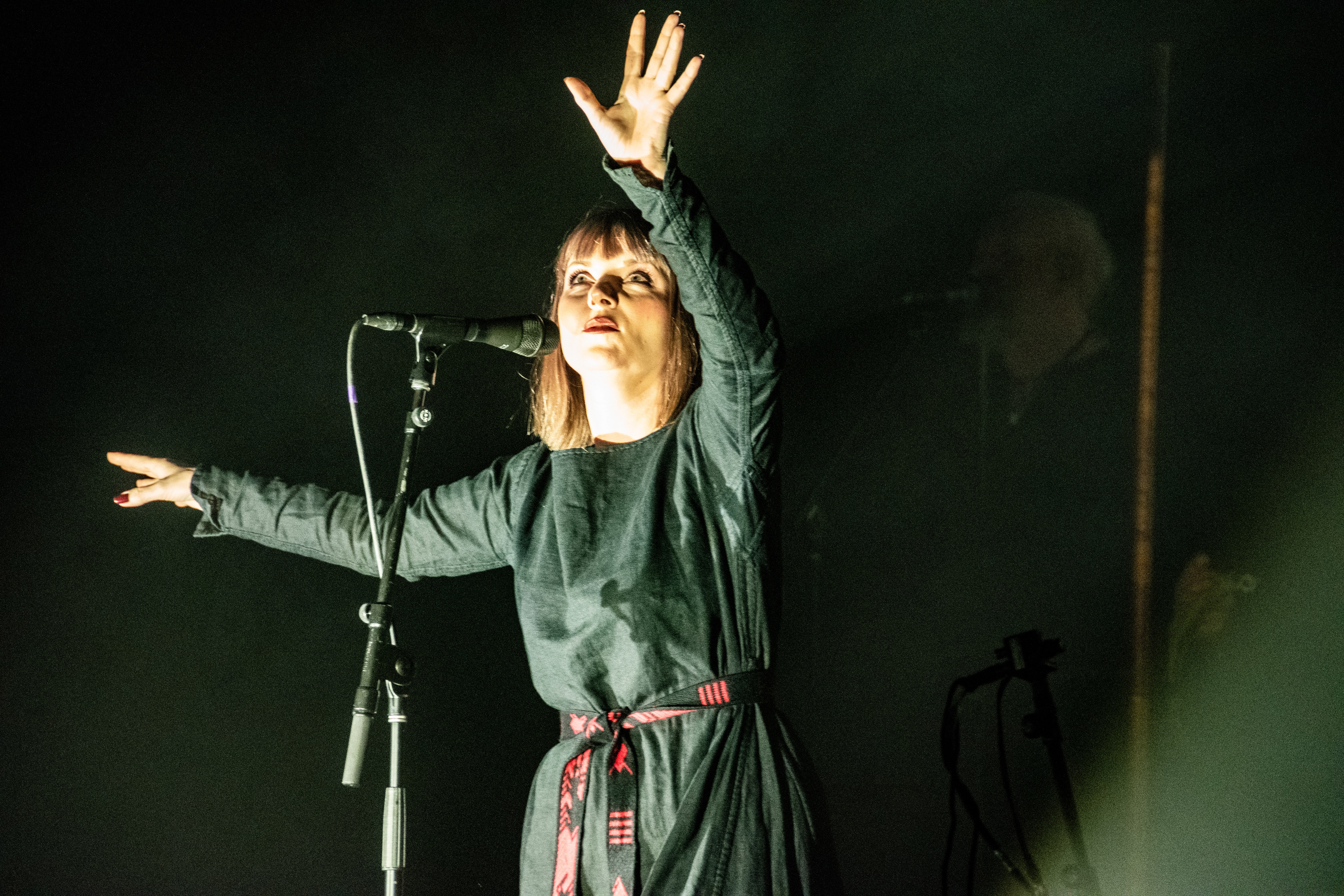It didn’t hurt that good ol’ Chelsea Wolfe was there to help us get into the swing of things. Wolfe, too, is an artist whose music defies genre — she flits from dark-folk to metal to drone, her sound always cleaving to a specific flavor, but never coming through in quite the same way. Here at the Keller, which is likely the most opulent space Wolfe has occupied in her 15ish years visiting Portland, the heavier, metallier flavors in her music took a backseat. It was just Wolfe, her guitar, and multi-instrumentalist Ben Chisholm, their relatively delicate sound filling up the space across a generous 45 minutes, heavily showcasing last year’s She Reaches Out to She Reaches Out to She and 2019’s Birth of Violence. It seems likely that many of the people in the audience would have totally resonated with Wolfe’s metal leanings, but it’s hard to complain when what we got was deeply arresting.