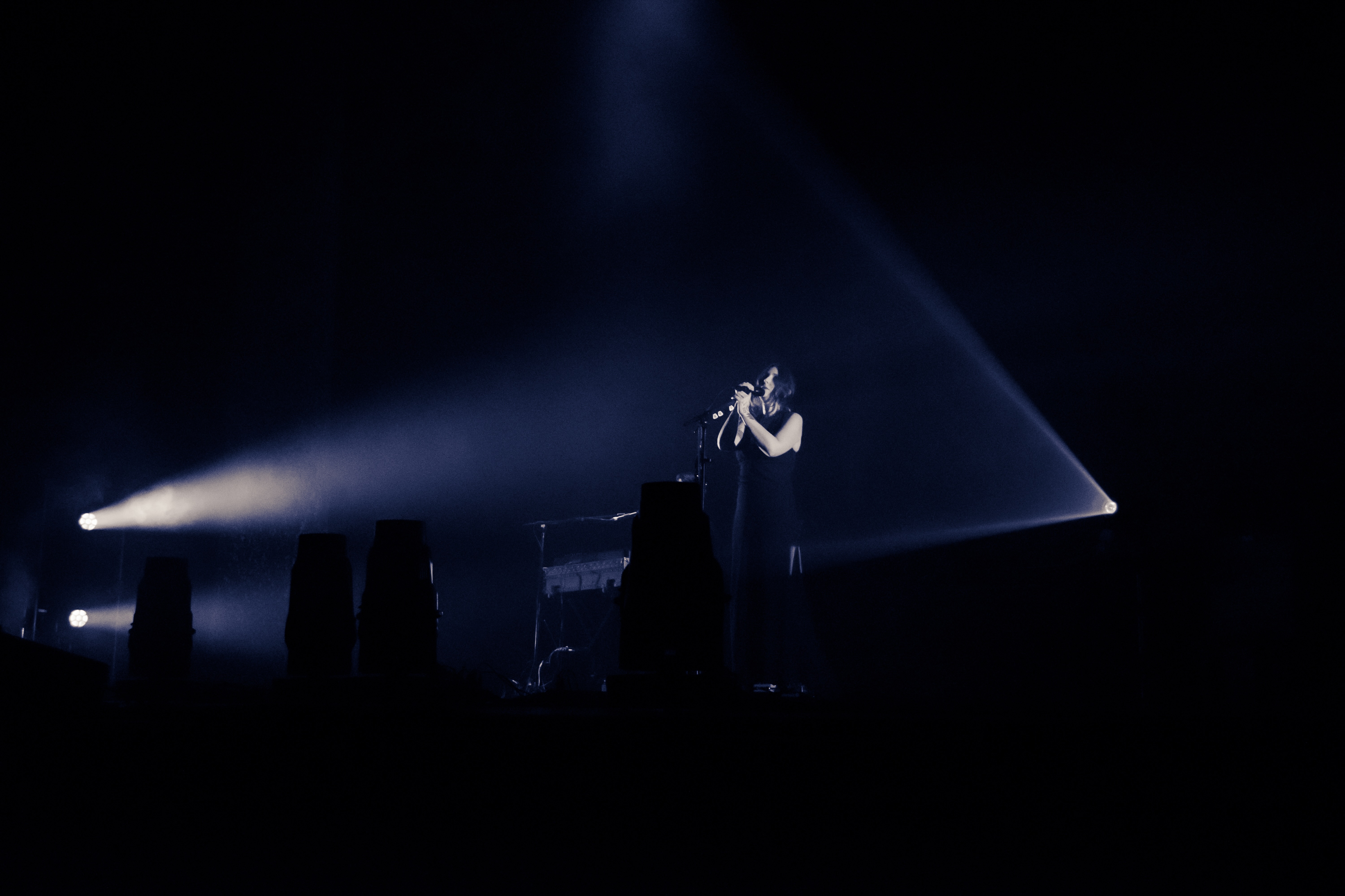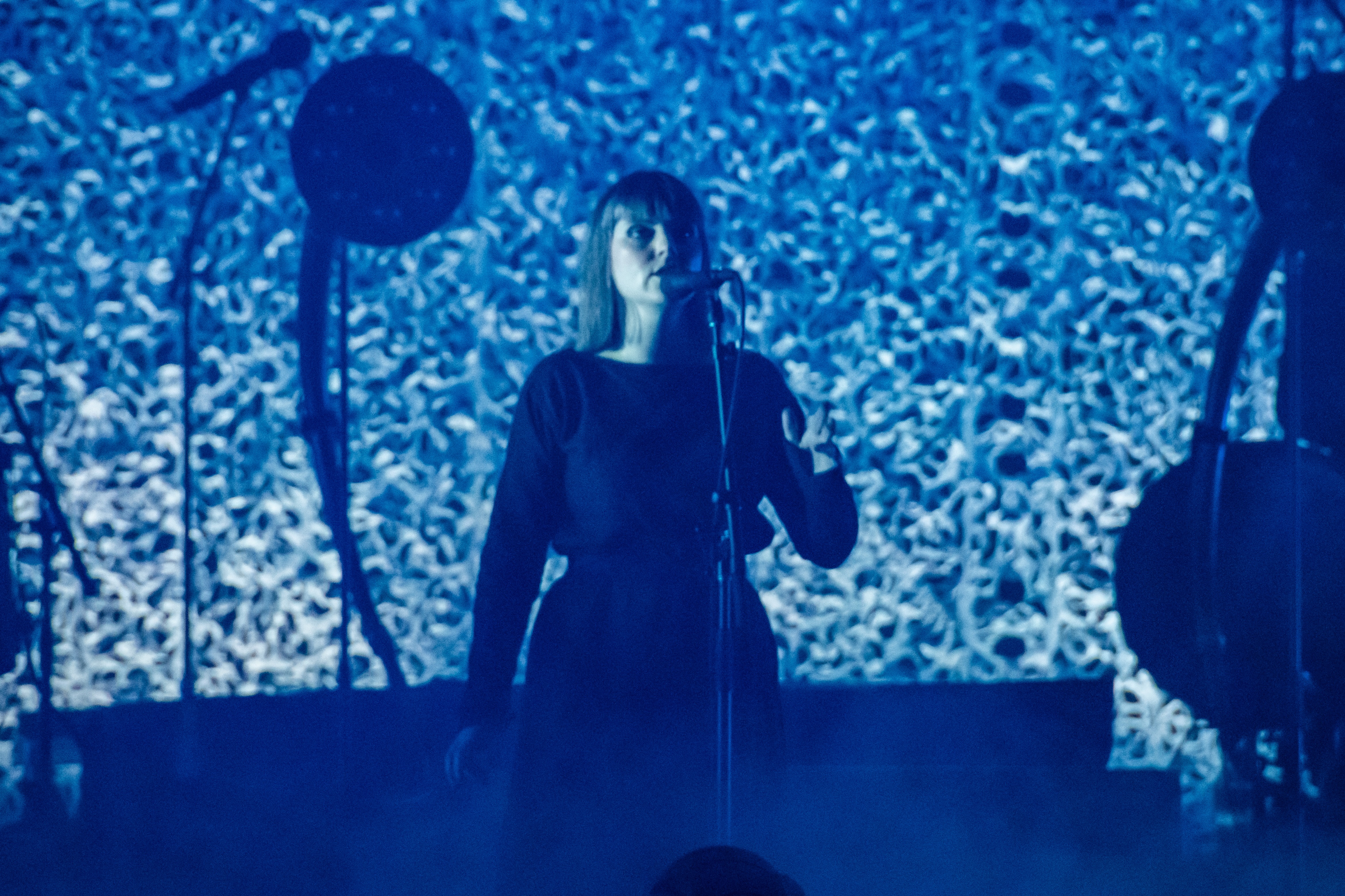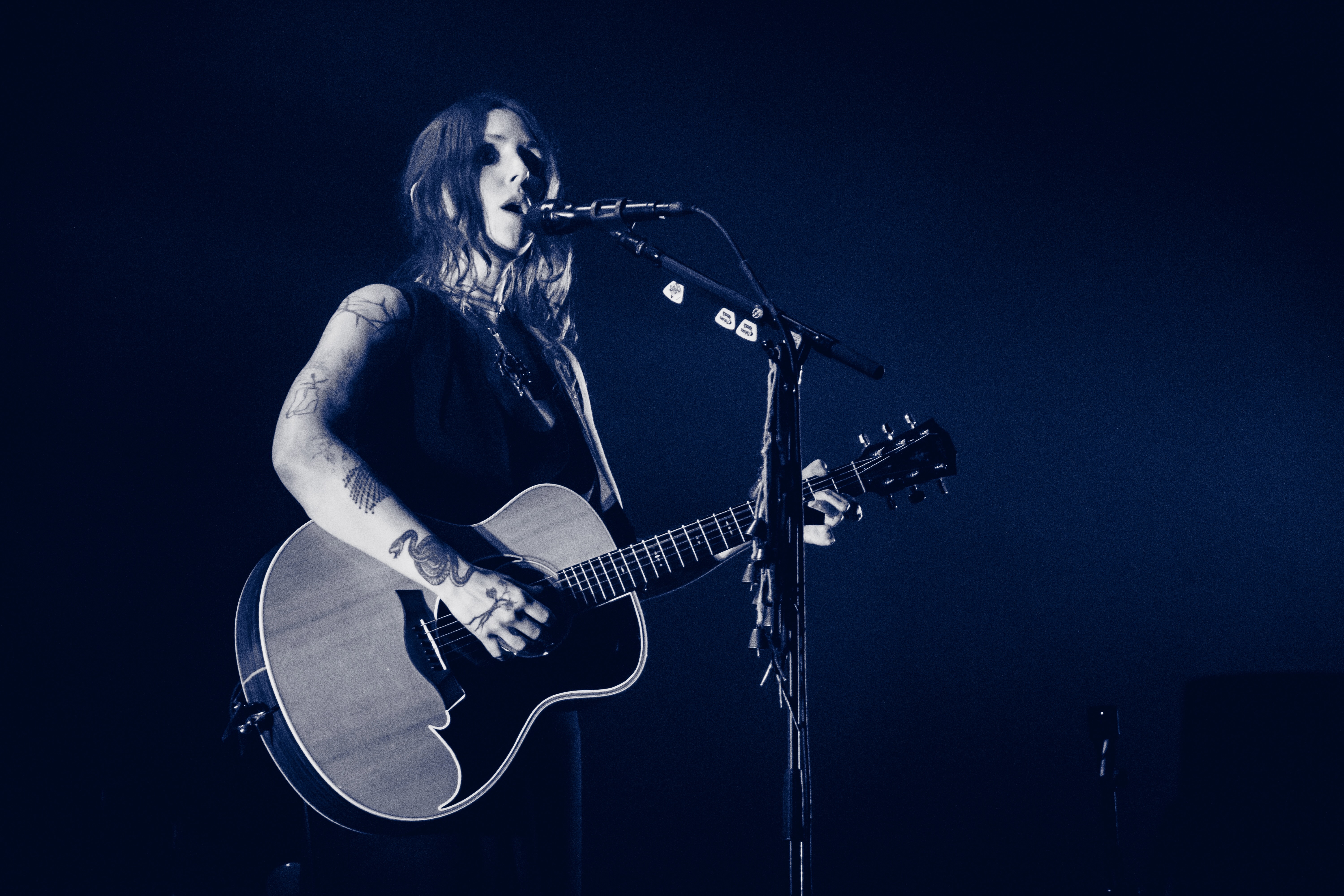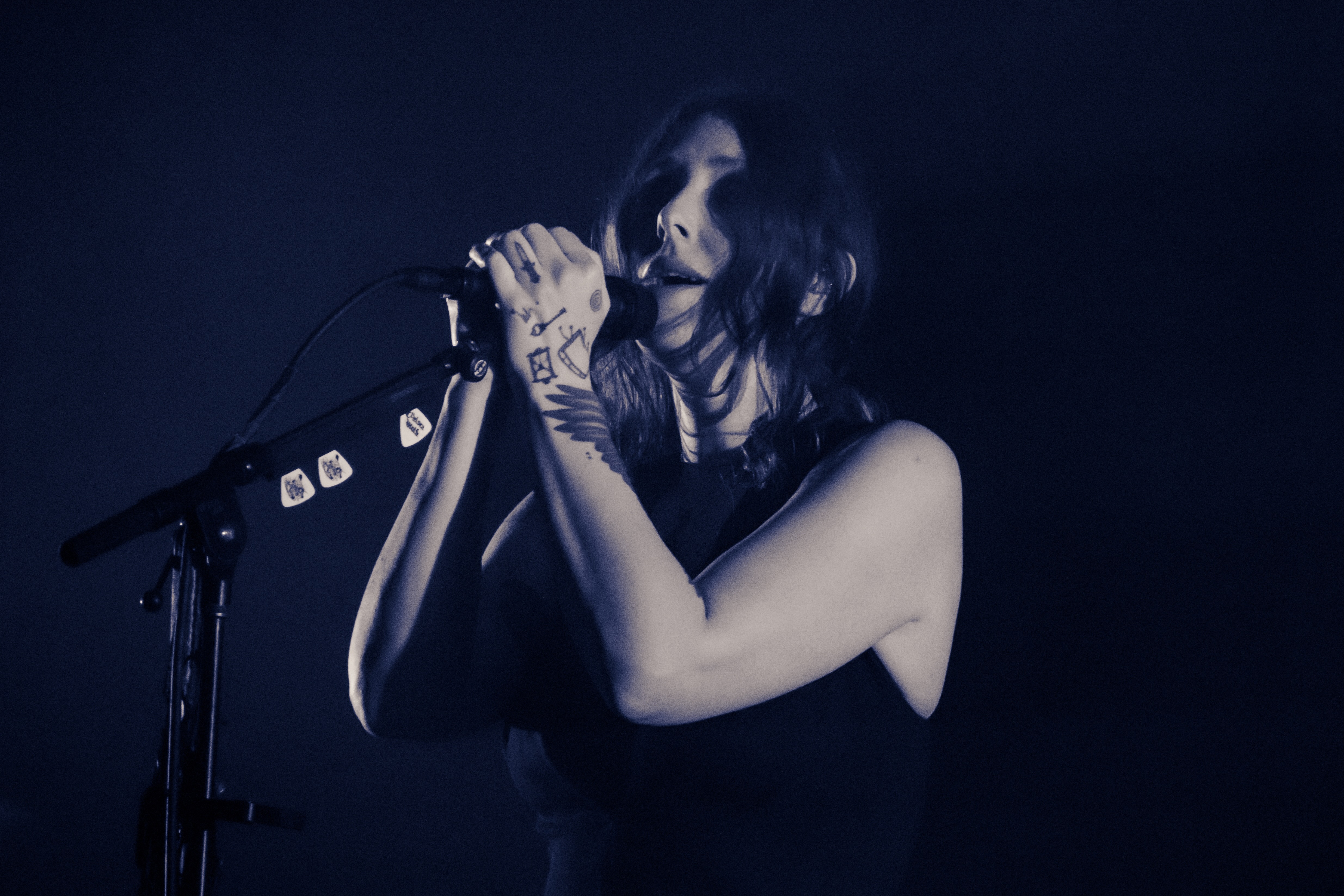 It didn’t hurt that good ol’ Chelsea Wolfe was there to help us get into the swing of things. Wolfe, too, is an artist whose music defies genre — she flits from dark-folk to metal to drone, her sound always cleaving to a specific flavor, but never coming through in quite the same way. Here at the Keller, which is likely the most opulent space Wolfe has occupied in her 15ish years visiting Portland, the heavier, metallier flavors in her music took a backseat. It was just Wolfe, her guitar, and multi-instrumentalist Ben Chisholm, their relatively delicate sound filling up the space across a generous 45 minutes, heavily showcasing last year’s She Reaches Out to She Reaches Out to She and 2019’s Birth of Violence. It seems likely that many of the people in the audience would have totally resonated with Wolfe’s metal leanings, but it’s hard to complain when what we got was deeply arresting.