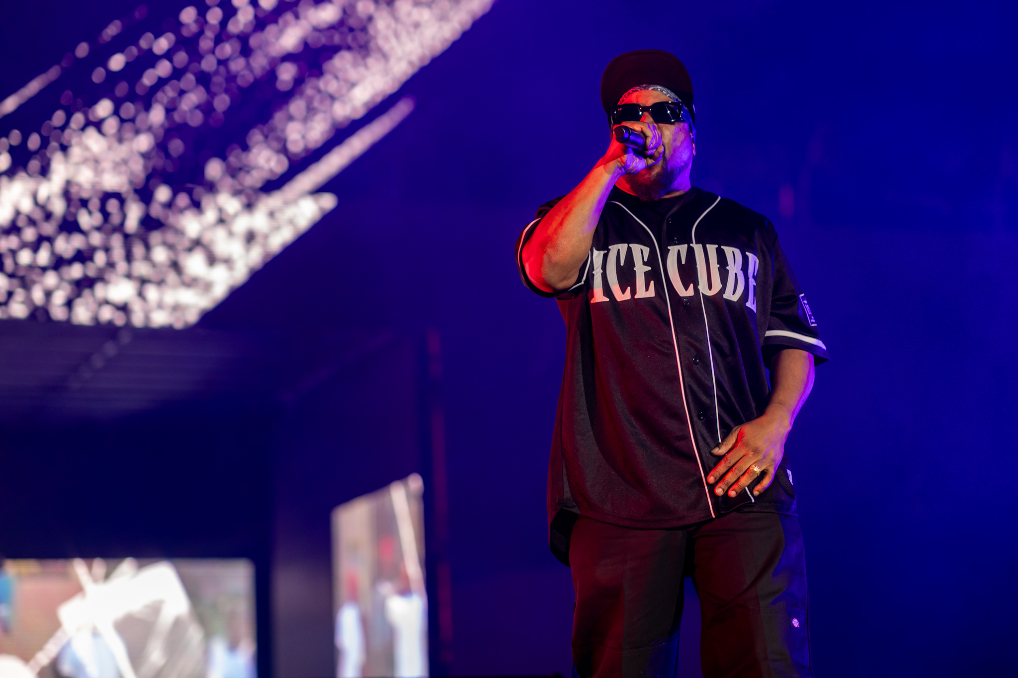 The lights dropped and a rapid fire reel of images flashed across the big screen – Compton streets, movie stills, old photos – while Cube’s own voice narrated the story. He walked the crowd through each chapter of his career, from the raw days with N.W.A. to his solo breakout and Hollywood stardom, each era separated by new voiceovers recorded just for this tour.