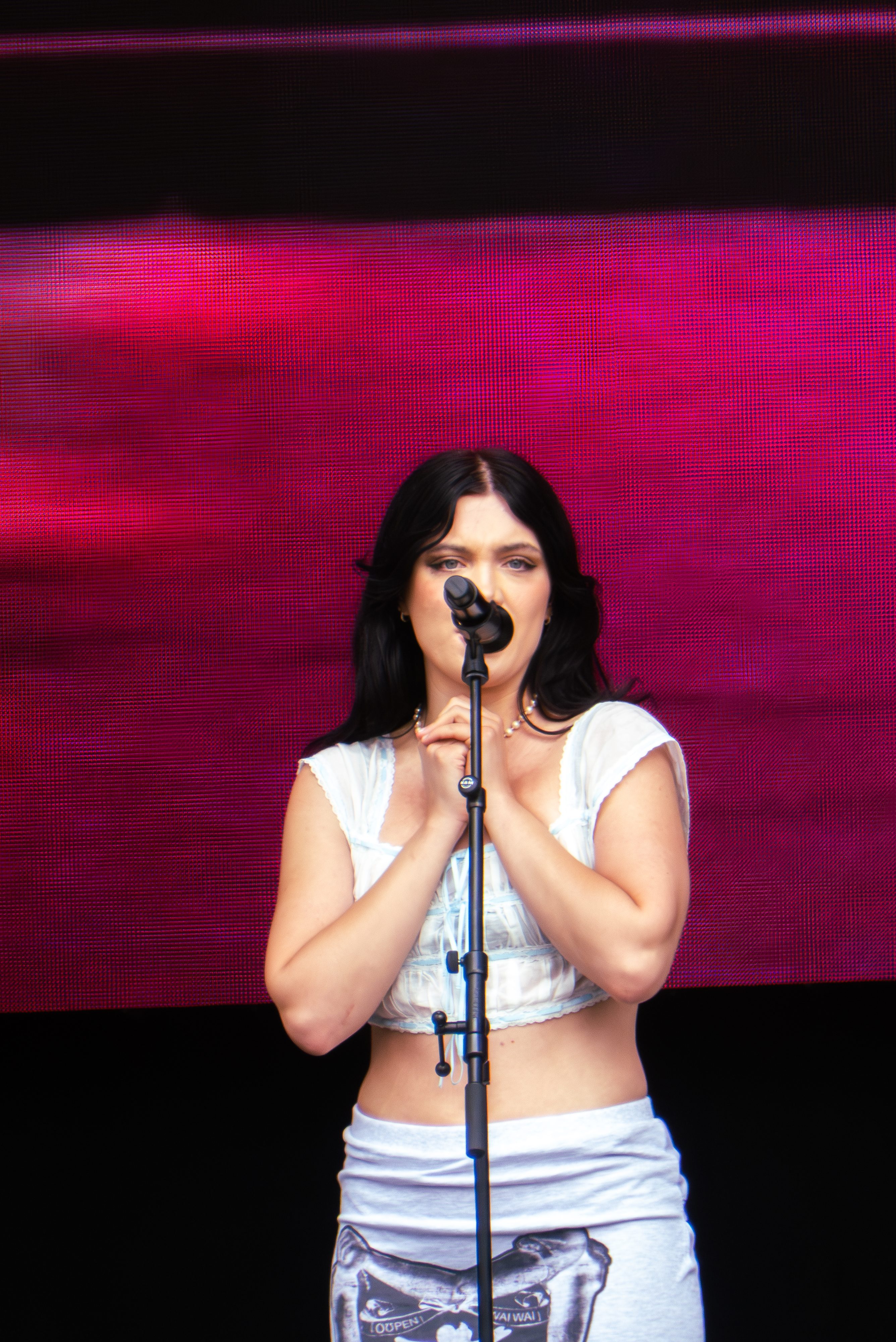 Alessi Rose took over main stage early on the Saturday, bringing in a crowd of Chappell Roan fans with a sea of pink cowboy hats. Even with most people there being Chappell fans, Alessi Rose‘s lyrics were being sung by most people from the crowd!