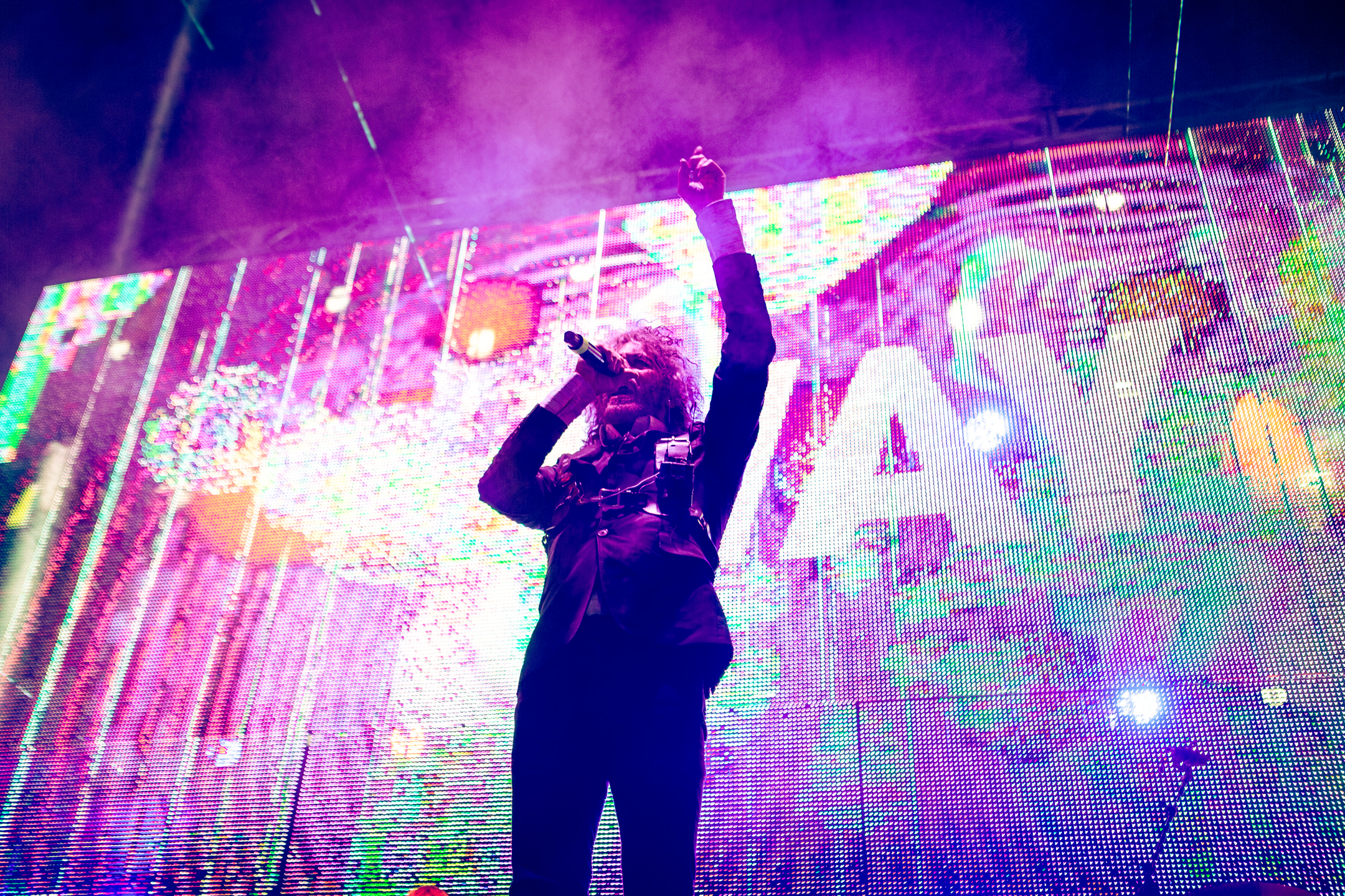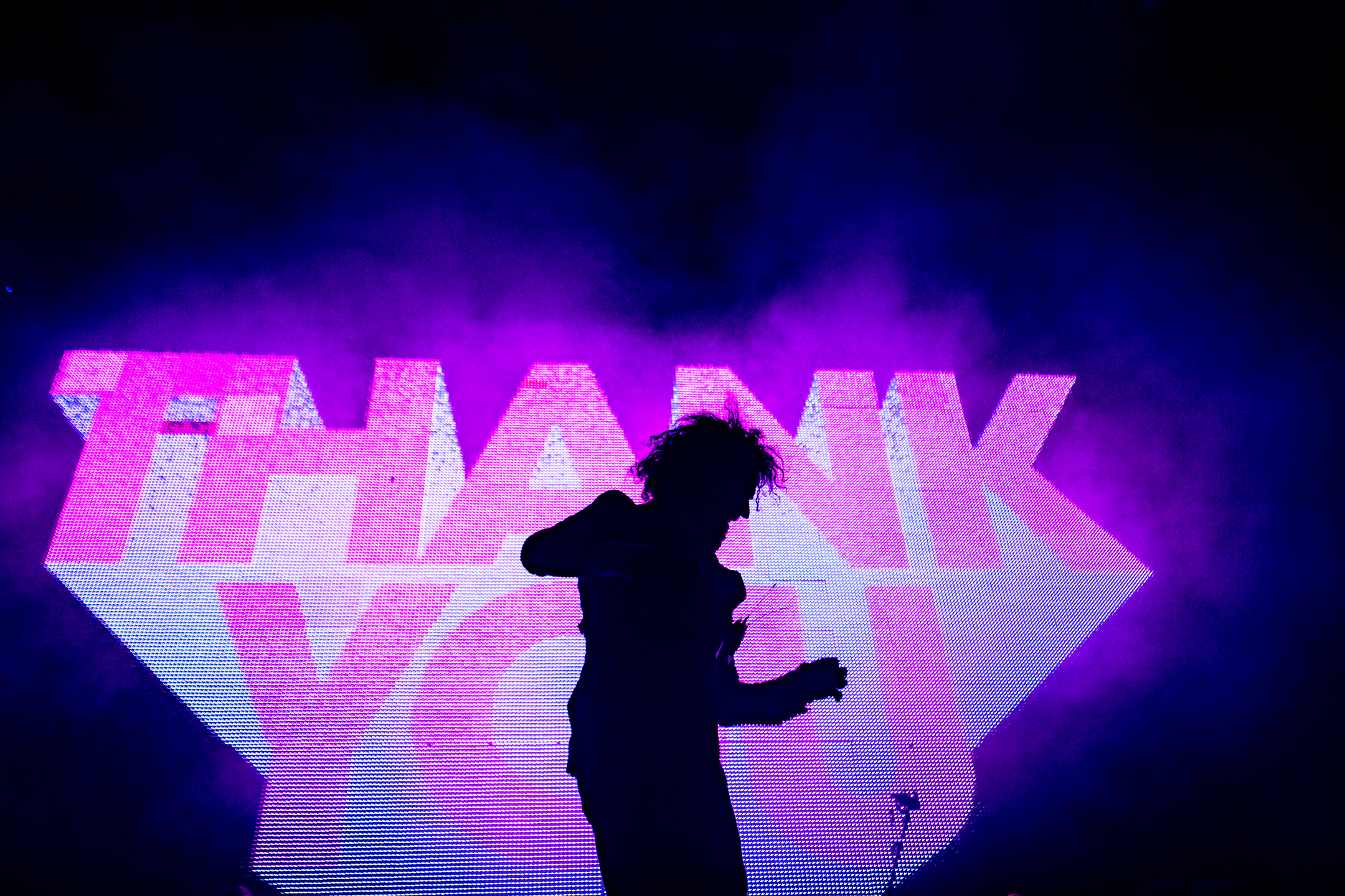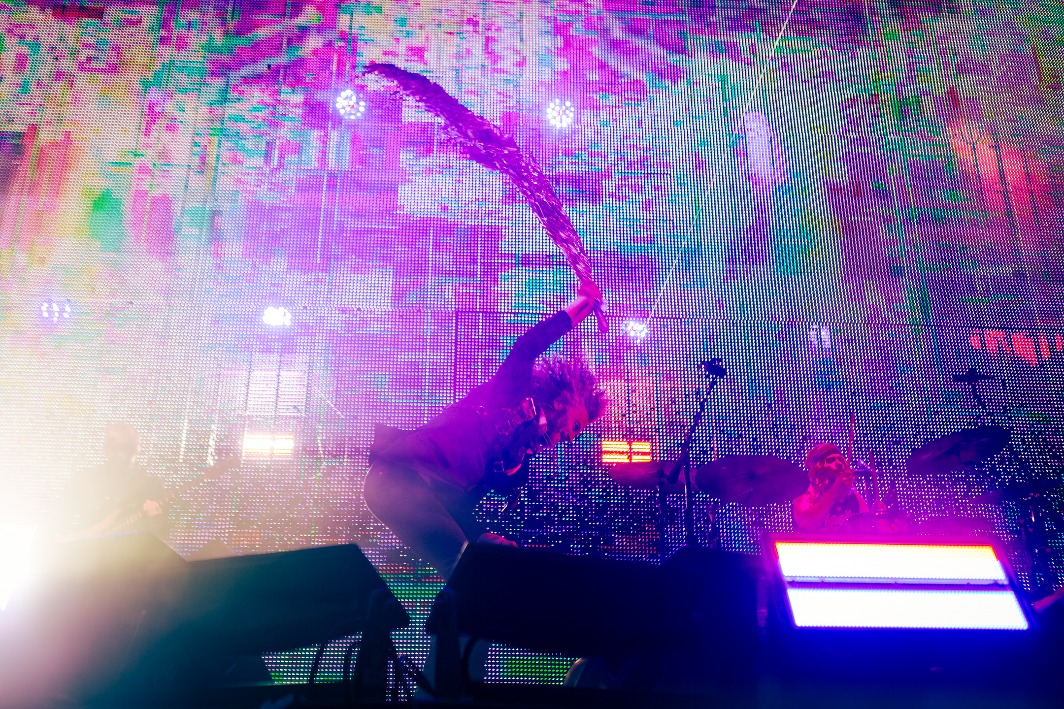 The confetti-filled balloons magically seemed to multiply during “She Don’t Use Jelly,” the band’s first breakthrough hit from their 1993 album Transmissions from the Satellite Heart, which the band played before finishing their official set with “Do You Realize??” More confetti rained out over the crowd, and an inflatable rainbow arched over Coyne on stage. Regardless of their familiarity with The Flaming Lips, everyone in the crowd was singing along to their number one hit, the words on the brightly colored screen behind the band guiding them along.