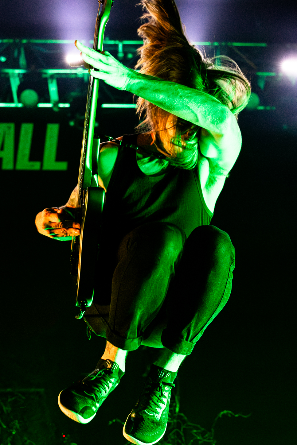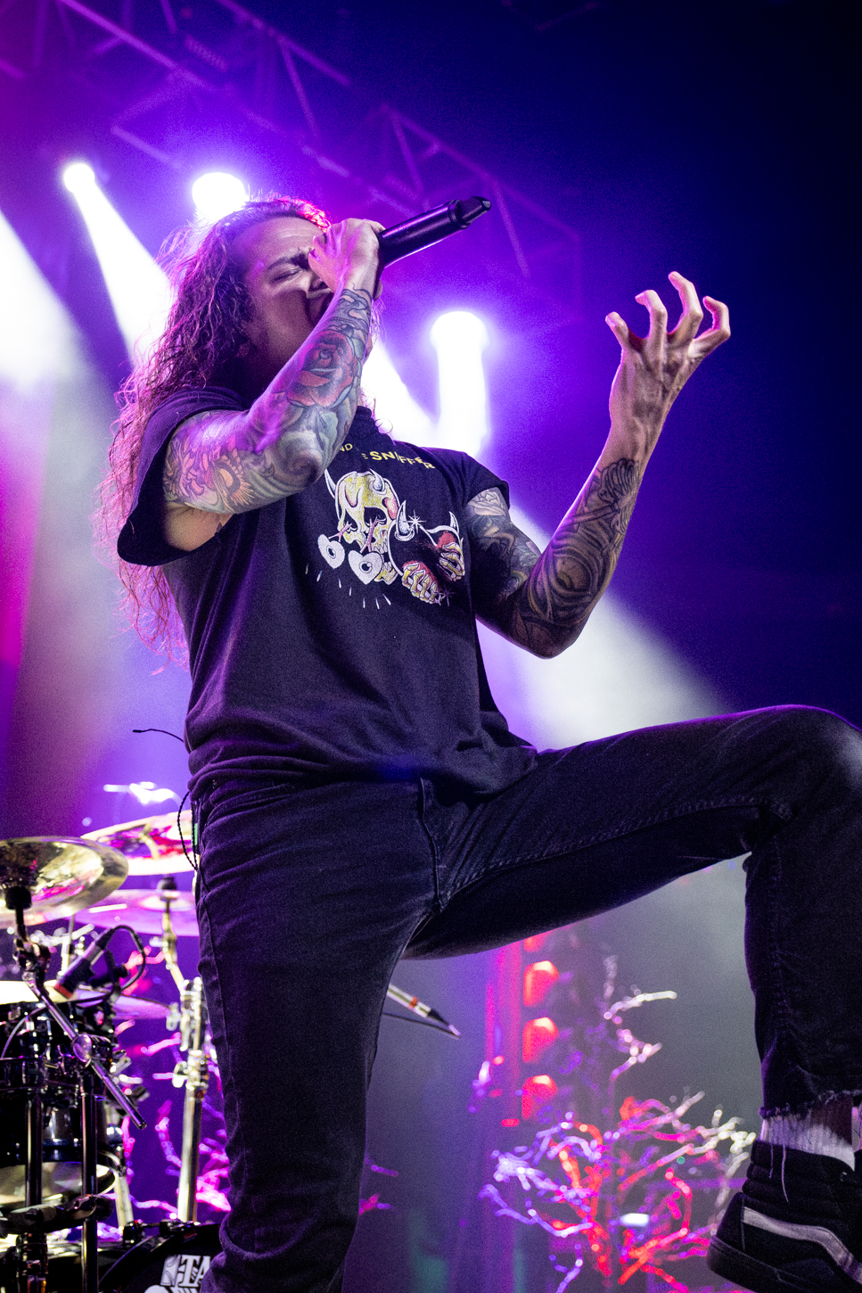 Miss May I were an absolute force of nature that night — the kind of band that it’s physically impossible for anyone in the crowd to stand still. As soon as frontman Levi Benton emerged onto the stage, he never ceased moving — jumping, pacing, screaming in people’s faces, never even standing still once. Their aggressive set let loose moshpits and circle pits that surged like waves, inundating the venue floor with a kinetic battlefield. It was Benton’s relentless presence — sweat, grit, raw vocal delivery, and all — that set the show beyond technically solid performances. The rest of the band rode the energy on that, playing every riff and breakdown harder, tighter, and faster. By the time they closed, it felt like we’d all been caught in their whirlwind — exhilarated, spent, and entirely electrified.