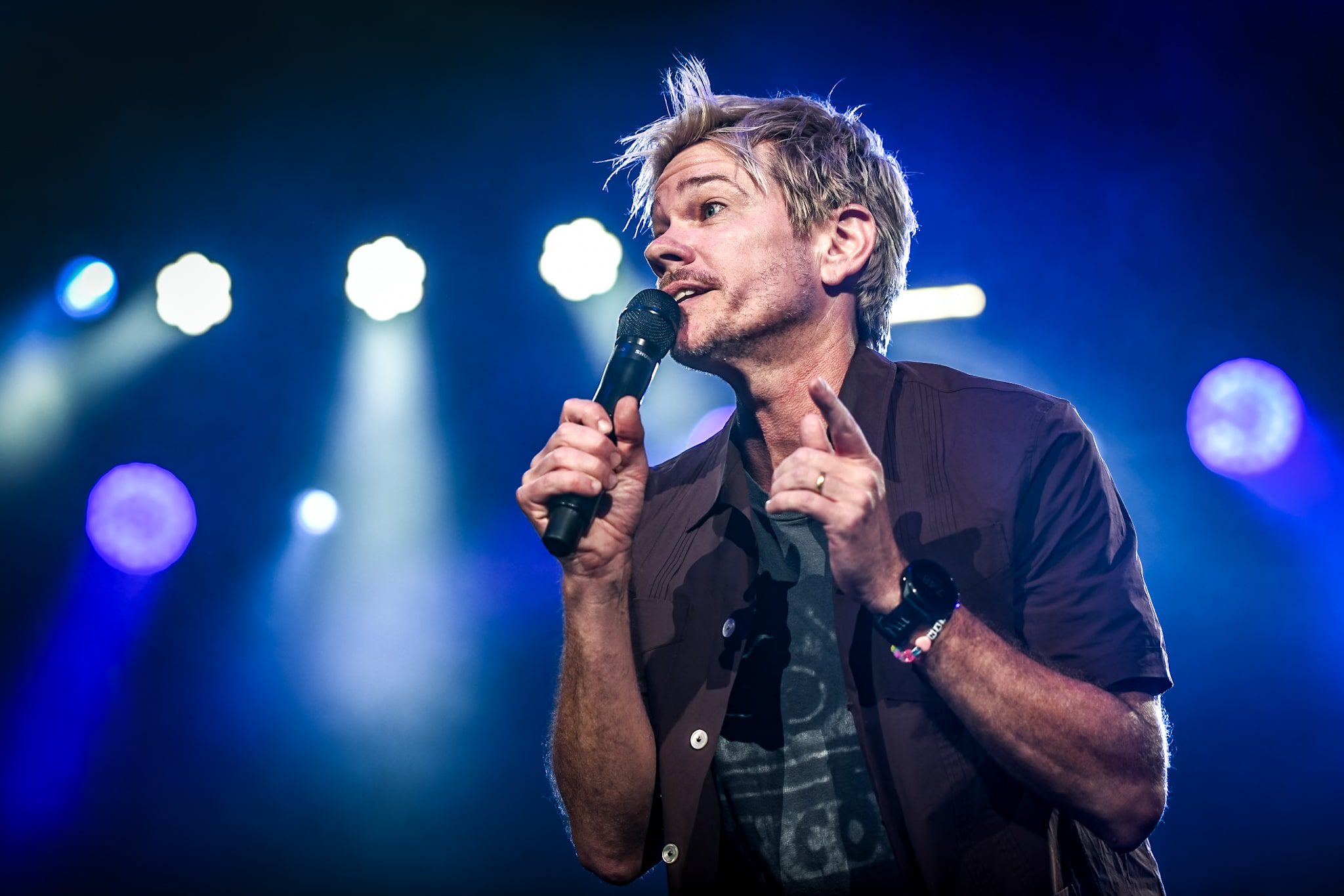 Ruess took several moments to express his gratitude, letting everyone know, “This has been the most enjoyable time I’ve had in the last…I can’t even remember…the most enjoyable time I’ve ever had.” He told the story of how this venue came to be the location for their return, sharing that, over dinner, Sam reminisced about how they would go to the fair as children to see bands and felt that the show should be there — even if it was only half full. Ruess joked that, because half full was how it was envisioned, “half of you need to get the fuck out,” which had the audience laughing. The room was, in fact, filled to the brim, with every last seat of the nearly 15,000-seat capacity venue filled. Ruess spoke on a preference for starting off with more intimate venues for their return, so taking on this venue was a bit out of their comfort zone; however, you never would have known it. While it was their first proper show in almost 20 years, they didn’t miss a beat.