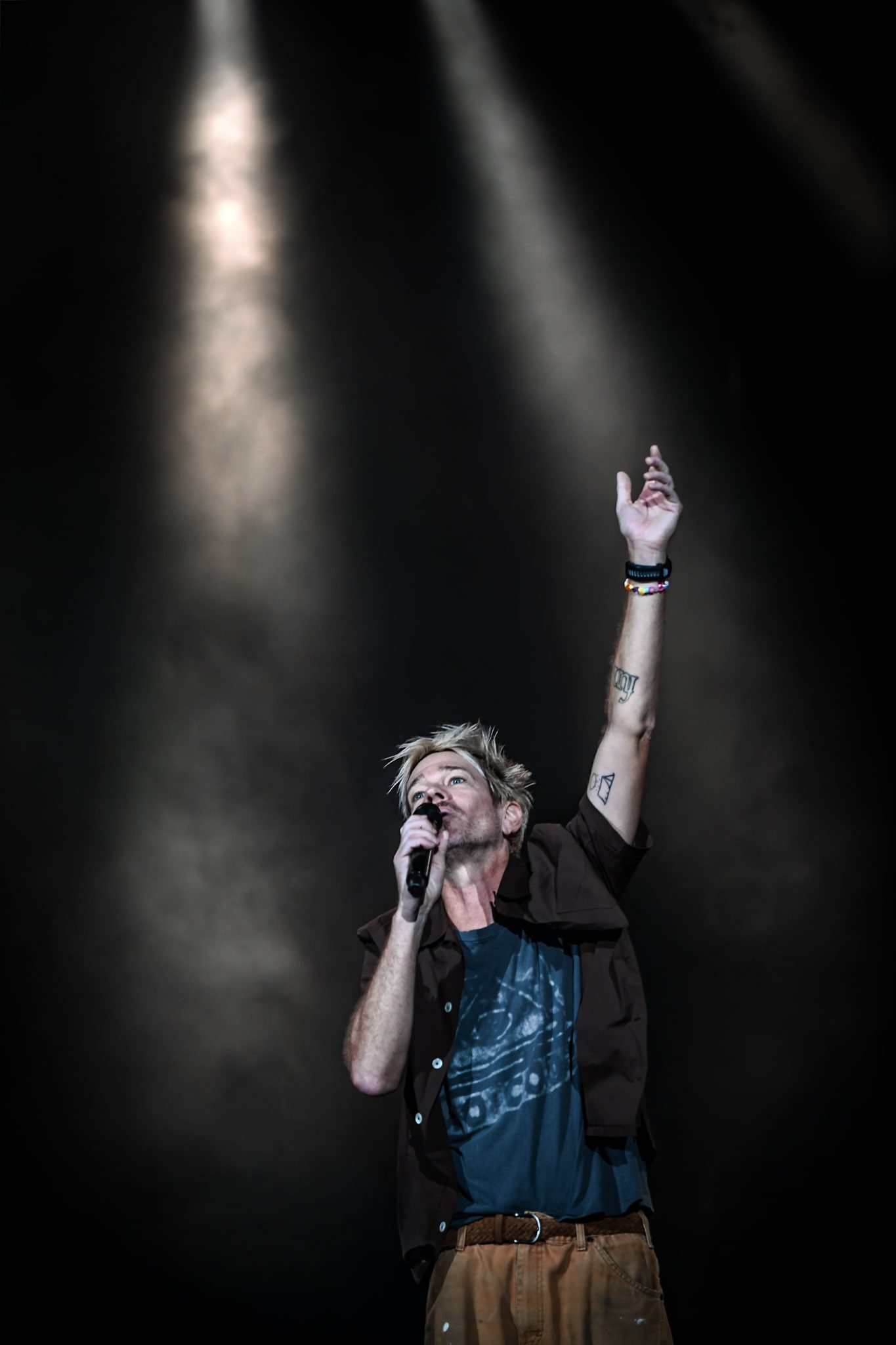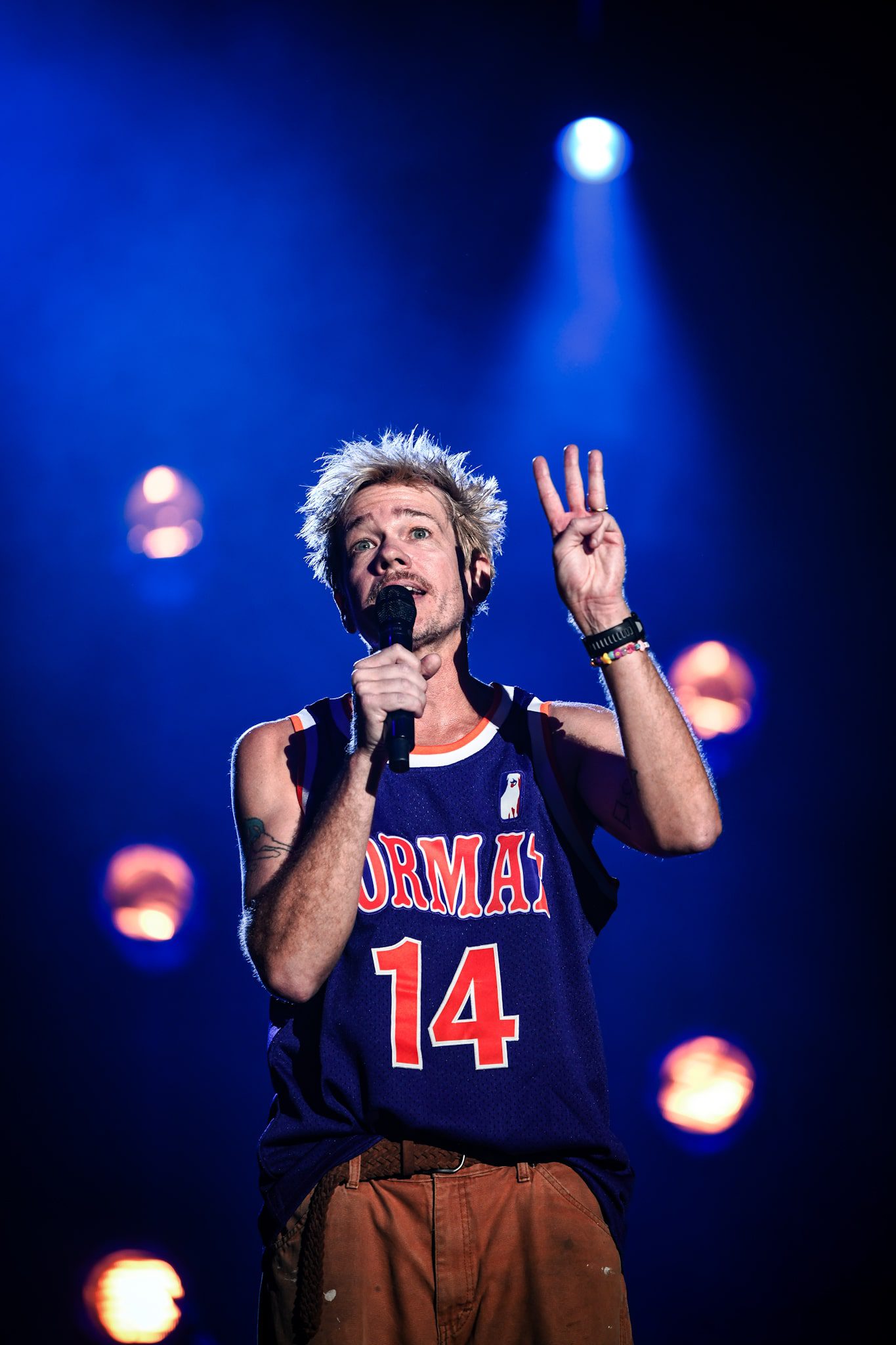 Hometown shows are always special, but the band went out of their way to make this one unforgettable. Everything about it was Arizona — from merch designs inspired by the Phoenix Suns, to their stage entrance to the Phoenix Suns intro music and an announcer — even their guest appearance. Hometown pride was woven into every last detail. As fans awaited the start of the show, the Madhouse on McDowell mascot, dressed in a Phoenix Suns-inspired Format jersey, took to the stands, handing out rally towels, launching merch into the audience and hyping the crowd. Many in the crowd speculated that Nate Ruess or Sam Means may have been behind that mask — I guess we’ll never know! The lights dimmed, and the old-school Phoenix Suns intro song began to play as the mascot took the stage, riling up the crowd as an announcer came over the speakers introducing the band. Fans enthusiastically swung their rally towels as the band took the stage, and a deafening roar of cheers erupted from the crowd as they launched their set with fan favorite “Tie the Rope.”