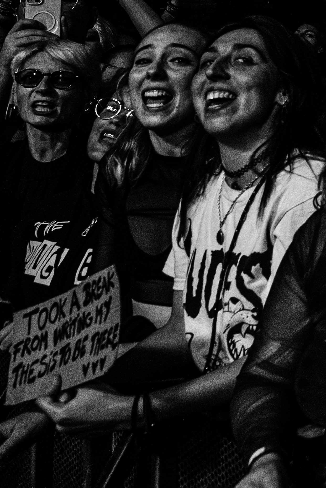 The night had a packed lineup ahead, featuring two different openers. The North American alternative rock band Weathers took the stage at 7:30, and some people in the crowd had actually come just to see them, so the energy was pretty wild. They played some of their classics like “Happy Pills” and “C’est la vie,” while also surprising fans with a cover of “Pink Pony Club” by Chappell Roan and an unreleased song called “Ugly.” The crowd responded enthusiastically, waving their arms in the air. They also taught the audience a bit of “Where Do I Sign?” with the lyrics “my mind my mind, sleep tight goodnight.”
