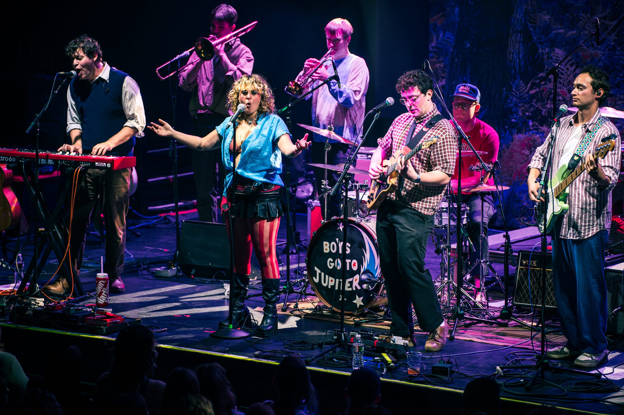 Opening act Boys Go to Jupiter set the stage with a brassy, high-energy set that felt tailor-made for Jukebox’s brand of joyful chaos. The Brooklyn band, complete with horns, keys, guitar, bass, and drums, squeezed onto the front half of the stage but made the most of it. They moved, danced, and warmed up the audience for something bigger.