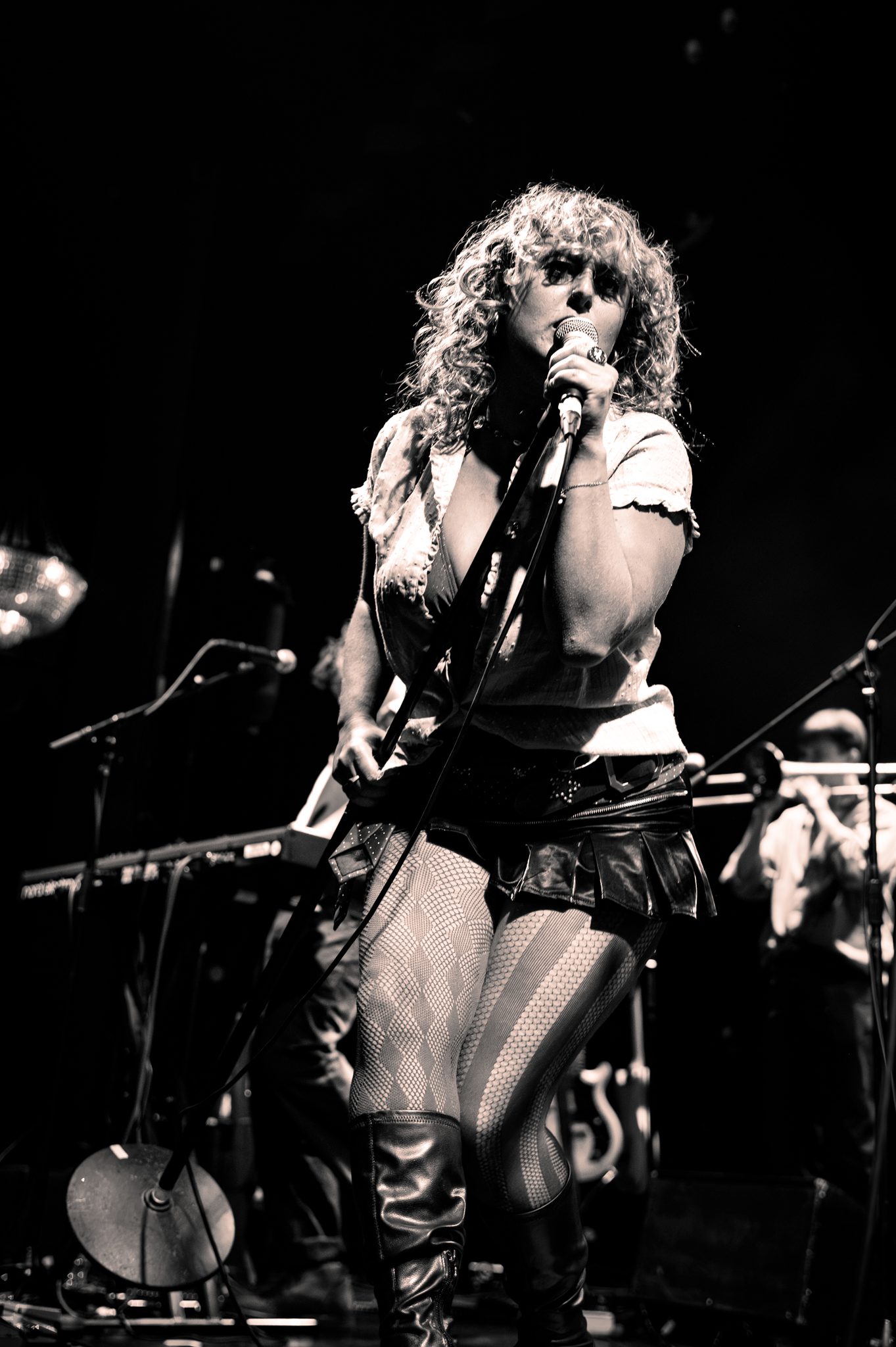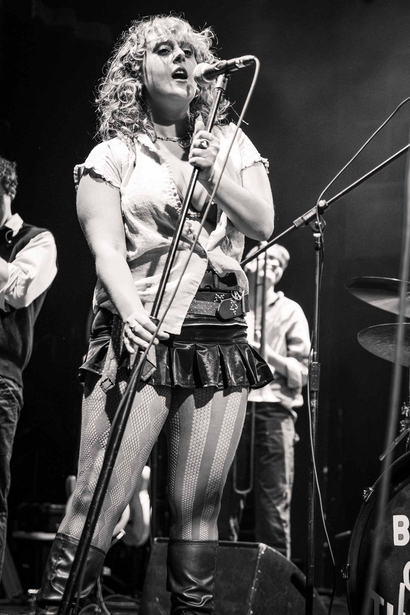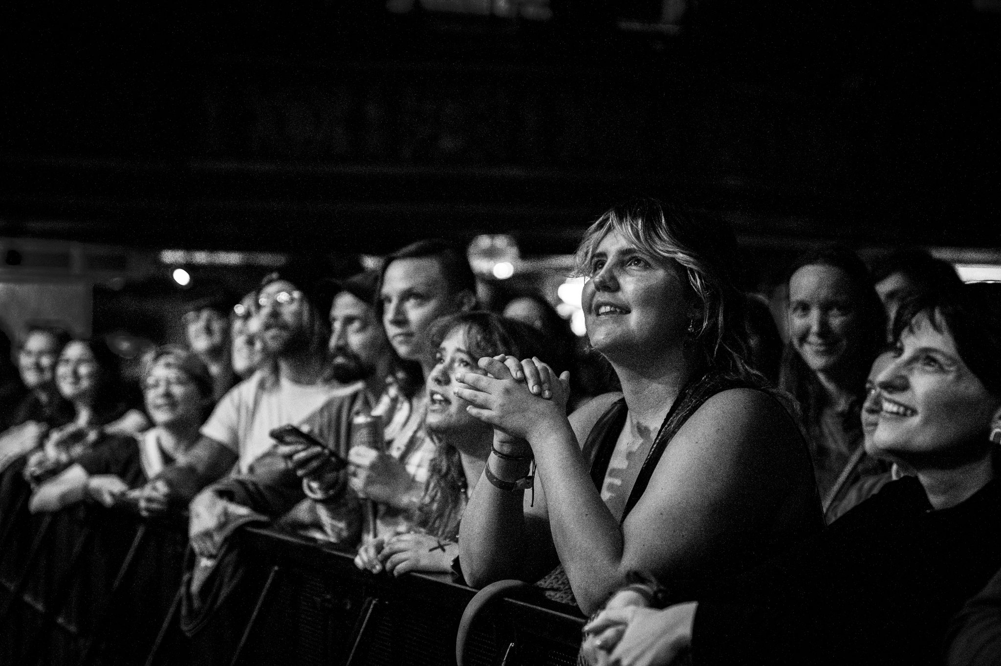 Between songs, a prerecorded PA announcer interrupted with tongue-in-cheek heckles, blurring the line between concert and comedy sketch.