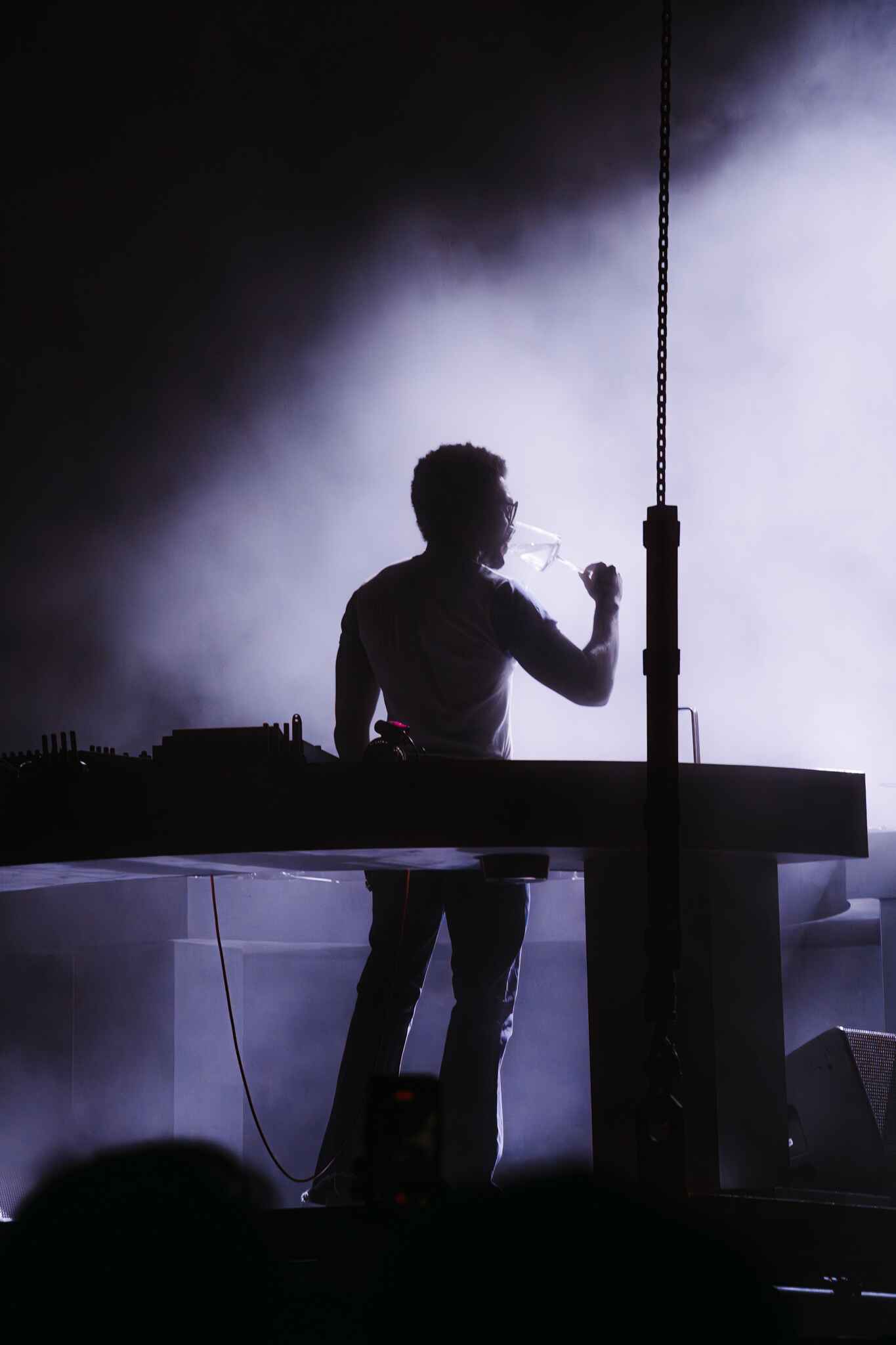 KAYTRANADA began his set with “Drip Sweat,” off his album Timeless, featuring Channel Tres. After a couple of songs, KAYTRANADA’s stage began to rise and stopped in the middle. During his performance, while ascended, lasers shot up from the floor and down from the roof, creating a unique visual. KAYTRANADA’s performance was filled with energy, and he urged the crowd to sing along during his hit songs, including “Intimidated” featuring H.E.R., and “BE YOUR GIRL” with Teedra Moses.