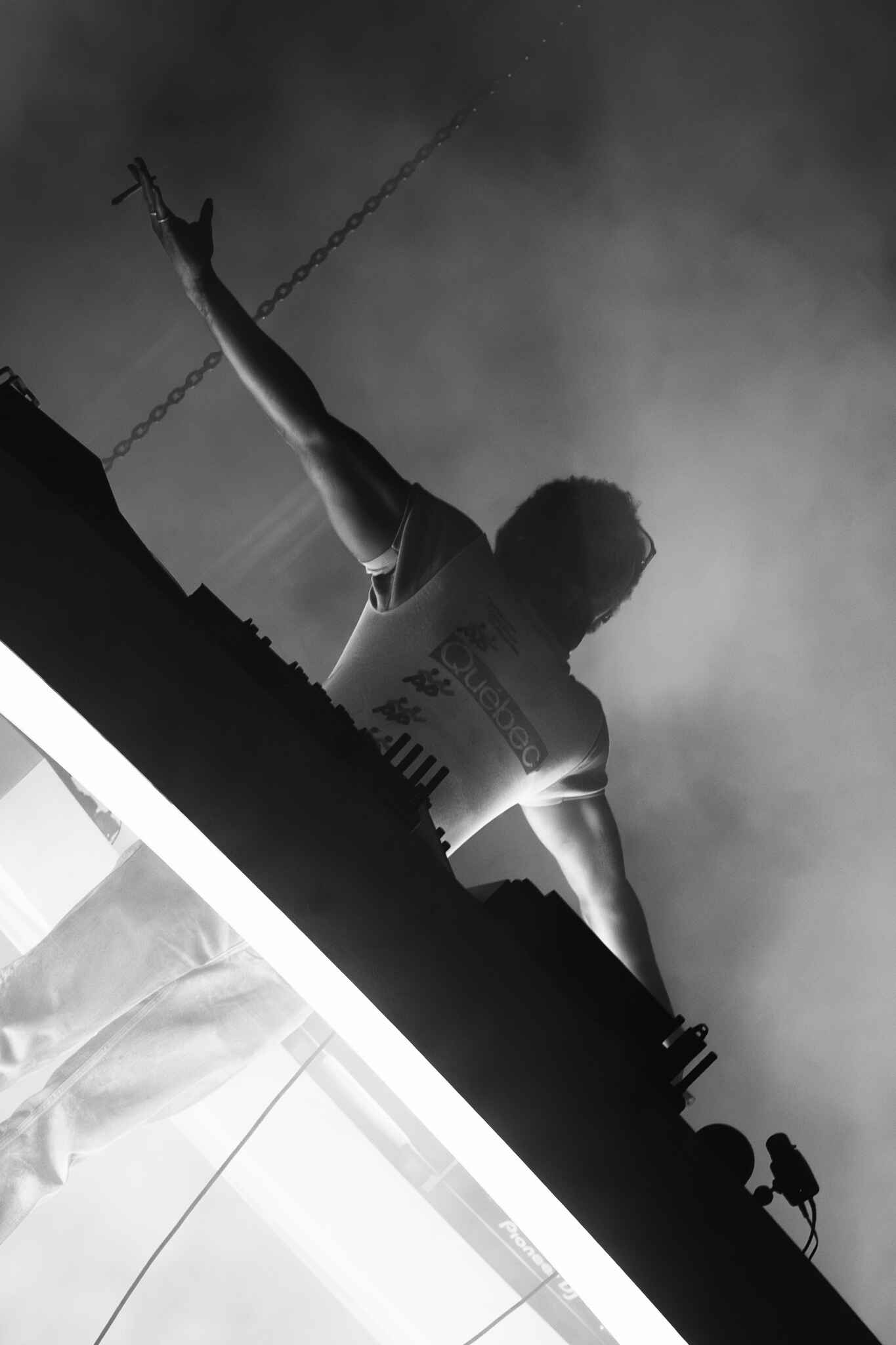 KAYTRANADA made his return to the Bay Area, sharing a co-headlining tour with Justice. Louis Kevin Celestin, professionally known as KAYTRANADA, is a Canadian music producer and DJ. As his set time came closer, more and more fans surrounded his 360-degree stage design. His stage consisted of a platform that was suspended from the roof. Shortly after his stage lowered, security parted the crowd and made way for KAYTRANADA’s entrance.