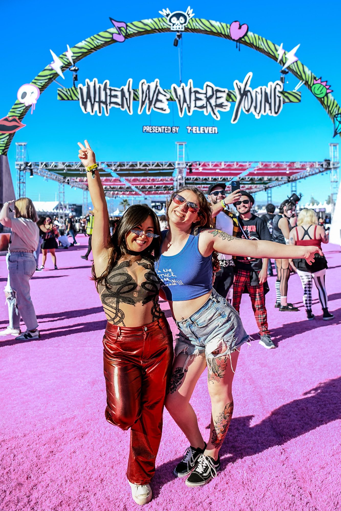 Getting out after the headliner always takes time — rideshares back up and monorails fill to capacity, but no one seemed to mind. It had been a long day under the desert sun, and no doubt, the elder emos were feeling every ache and pain that comes with hours of standing, walking, moshing, crowdsurfing, and dancing, but you would never know it from the smiles and laughter that came as they recapped the excitement of the day. One of the most special things about When We Were Young is the community it creates. Throughout the day, fans looked out for one another, quickly gaining the attention of security for anyone needing help, picking each other up in the pit, swapping friendship bracelets, and sharing memories of their old Warped Tour days and what the scene meant to them. That sense of connection, of shared nostalgia and mutual respect, is what makes this festival feel so unique compared to others.