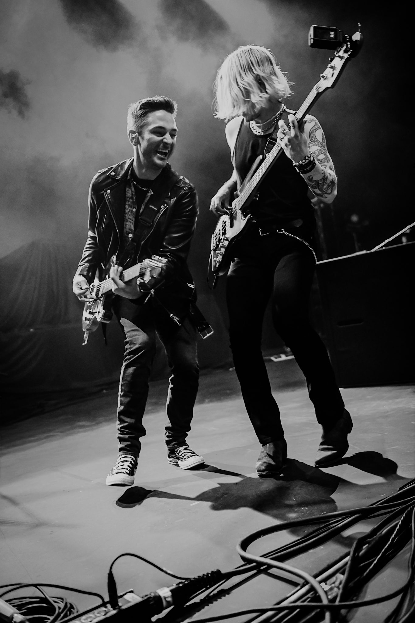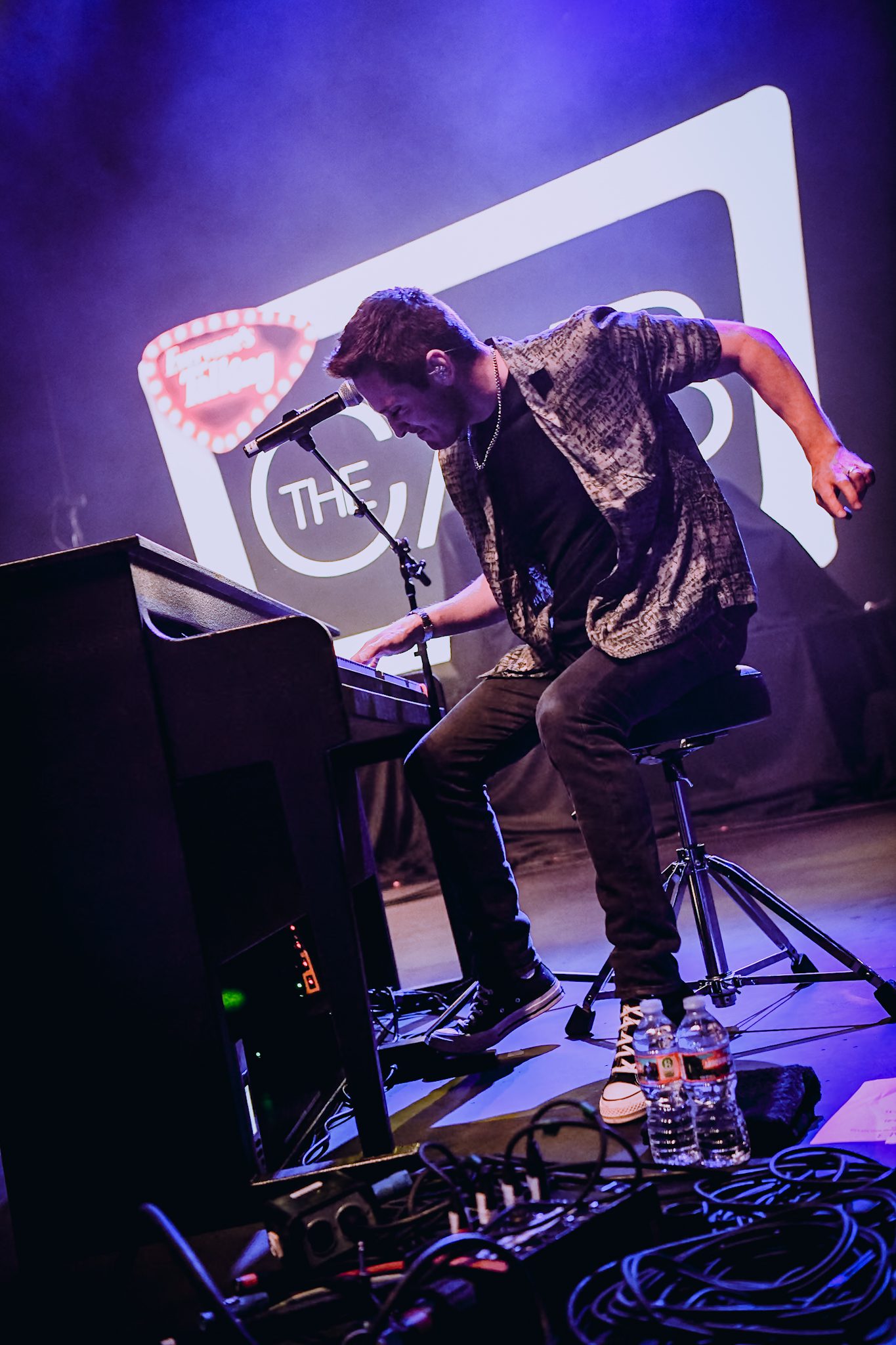 The lights dimmed and fans watched as a video introducing the members of the band, as well as the tour lineup, played on the screen, ending with an introduction of the night’s host, All Time Low frontman Alex Gaskarth. Gaskarth took the stage solo for an acoustic moment, opening the night with “[cold open],” the intro track from their Everyone’s Talking album released only a few days prior. Fans went wild as the rest of the band stormed the stage, launching into another new track, “Oh No!” Though it had been out for less than a week, the crowd was already singing along word for word. Guitarist Jack Barakat and Bassist Zack Merrick leapt from surfaces, swinging their guitars and galavanting around the stage, putting on a high energy spectacle that had the room on their feet from start to finish. The Phoenix show marked their largest headlining date in Arizona ever, as well as their ninth consecutive show, including massive sets on Fremont Street and at both days of When We Were Young, but you would never have guessed it from the effortless energy they put forth onstage. Barakat commented on the quality of Gaskarth’s voice, “You sound great! Your voice is back, baby!,” and the audience could not agree more. Just prior to their performances in Las Vegas, the band had to abruptly cut their show at Red Rocks Amphitheatre short due to concerns that Gaskarth could do permanent damage to his voice if he were to continue to push through. They subsequently were forced to cancel their next two shows, leaving fans concerned for the fate of their performances at When We Were Young, as well as for the rest of the tour. Gaskarth was ultimately cleared to safely perform, and the band was able celebrate their album release to kick off When We Were Young weekend with a legendary free show on Fremont Street.