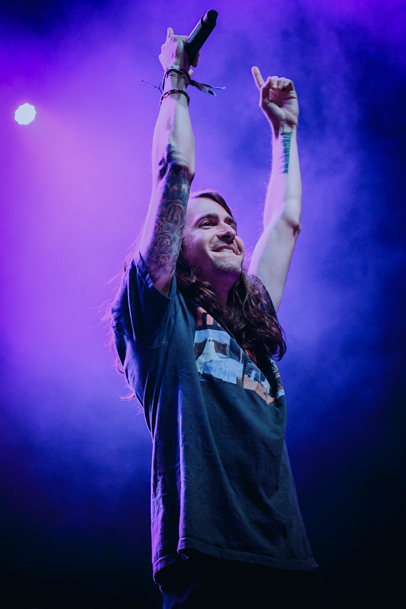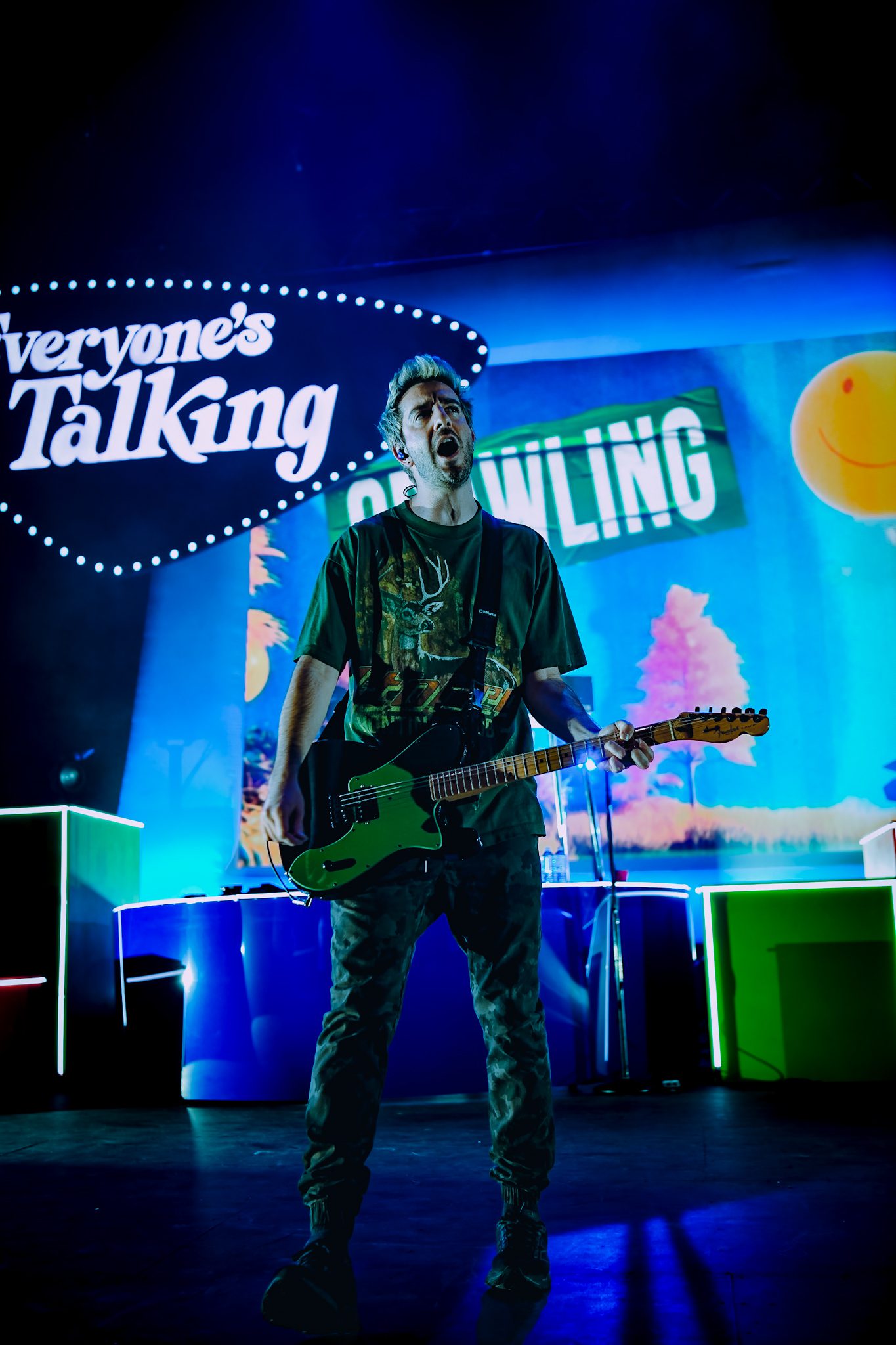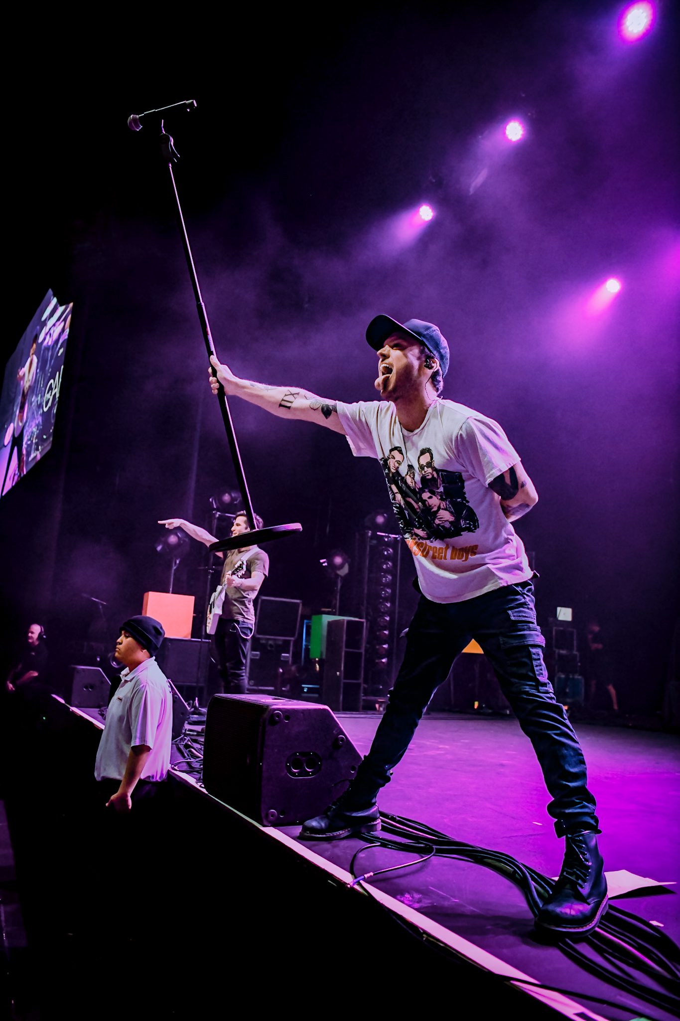 As the evening progressed, fans were treated to songs from across every era of All Time Low, including tracks from the new album, as well as favorites like “Weightless,” “Time-Bomb,” and “Missing You,” which they dedicated to all those who could not be there that night. The band left the stage and a message of “be right back” illuminated the screen. They returned, jumping immediately into a new track, “Butterflies,” followed by “Dirty Laundry” and “Sleepwalking.” Gaskarth made many requests of the audience that evening, including dancing, bouncing, and ignoring the “fear of verticality” by climbing on to the shoulders of friends and loved ones. With each request, the audience complied, fully immersing themselves in the music. The set ended with “Monsters,” with the band returning for a three song encore and perhaps the most memorable moment of the evening. As they prepared to close out the night with “Dear Maria, Count Me In,” Gaskarth noted a fan with a special sign in the pit, and invited the fan up to the stage. That fan, accompanied by his girlfriend, made his way to the stage where he would propose (she said yes!), a moment that couple, the band, and everyone in attendance are sure to never forget! The crowd erupted in cheers as the proposal unfolded, and the energy didn’t drop for a second as the band launched into the final notes of “Dear Maria, Count Me In.” Between fan-favorite anthems and tracks from their new album, the night perfectly blended nostalgia with a celebration of the band’s newest work, giving longtime fans a chance to relive the songs that defined their youth while embracing the next chapter of All Time Low.