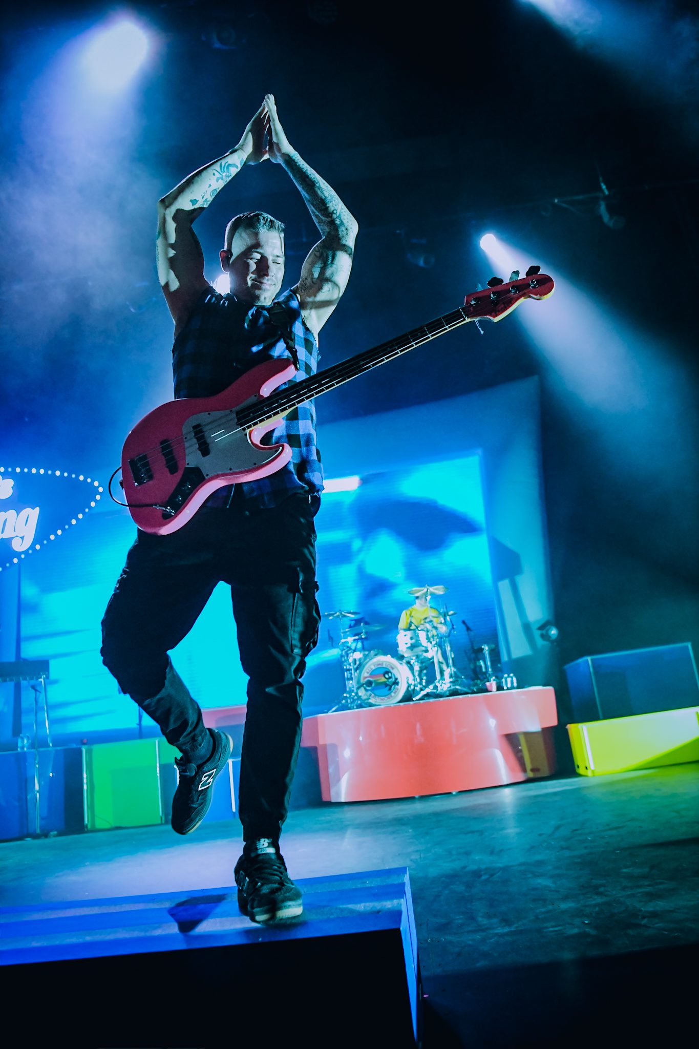 Mayday Parade kept the night going, making their return to the Arizona stage only 5 months after their last visit. The band has had a busy year having released the first two of three installments of a three part album, with Sweet dropping in April, and Sad dropping just this month. Following the release of Sweet and to commemorate 20 years of being a band, Mayday Parade hit the road, taking North American fans on a journey through all of their eras through June, before joining forces with Jack’s Mannequin and The Home Team to bring Three Cheers for 20 Years to fans Down Under in September. Their set was mostly one of nostalgia, focusing heavily on favorites from A Lesson In Romantics; however, they did throw in one song from each of their new albums, opening with “Under My Sweater” from their newest release, Sad, and including “By The Way” from Sweet, my personal favorite of the new releases. Mid set, frontman Derek Sanders took a moment to address the crowd, noting that because we are all constantly being bombarded by the bad things happening in the world, he wanted to make sure to share some of the good things that are happening. He went on to share that in addition to the band celebrating their 20th anniversary, this was his first ever tour played wearing a wedding ring as he had just gotten married a few weeks prior. The audience cheered in support before they moved into a performance of “Piece of Your Heart.” The band knows how to put on a show and this night was no different. The energy in the room never dipped for a second, with the band giving it their all and the fans dancing and singing along to every word. This may have been an All Time Low show, but fans were equally as happy to have Mayday Parade sharing that stage. They ended their set with “Jamie All Over,” a fitting finale that handed the night off perfectly to the evening’s main act. The third installment of Mayday Parade’s album is set to release sometime next year and we can’t wait!