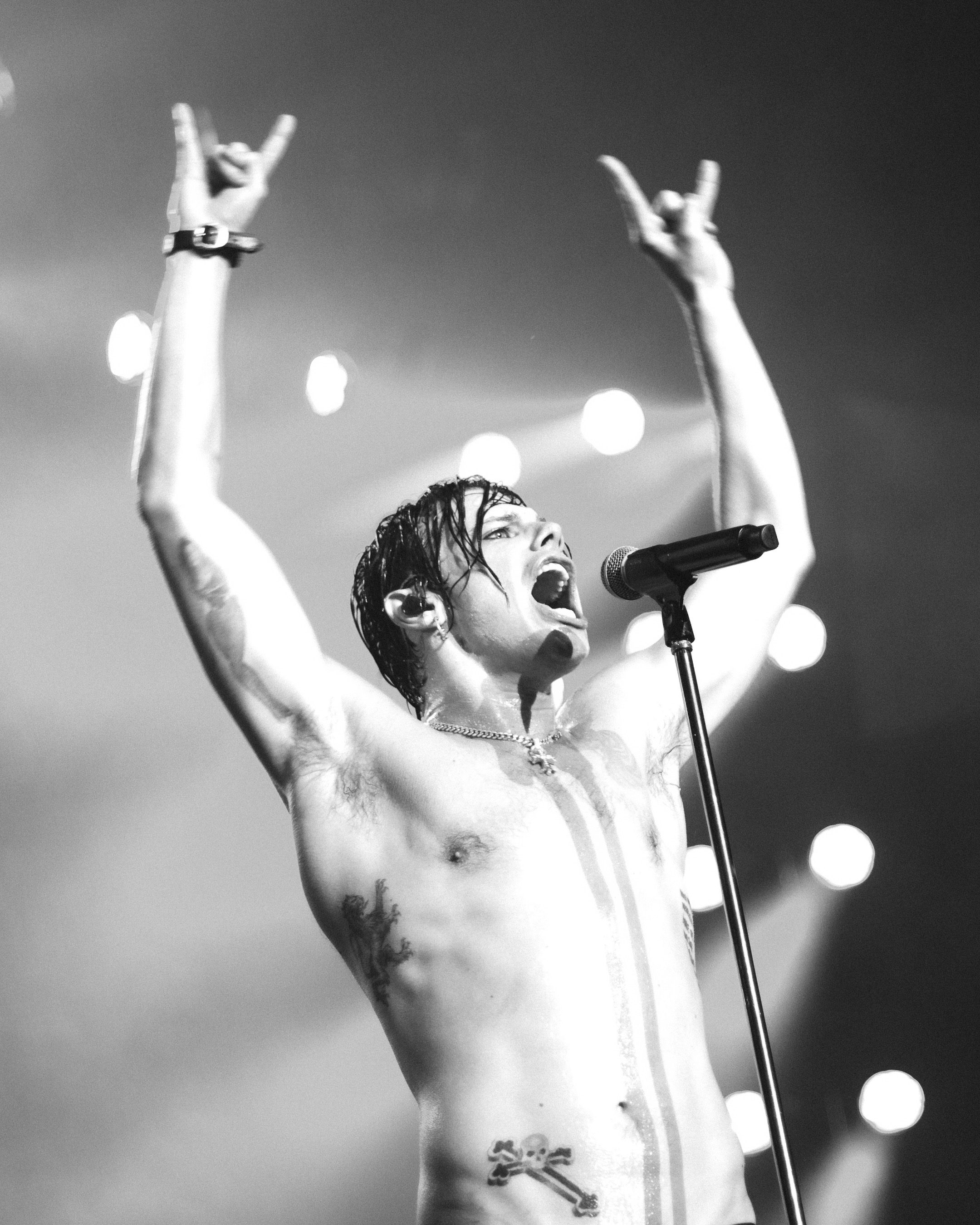 On October 29, YUNGBLUD unleashed his unmistakable energy at Vienna’s Wiener Stadthalle. The lights dimmed, the guitars roared to life, and the crowd surged forward in anticipation, their eyes glued to the stage and their hands pressed to their chests as they waited for their favorite. Upon YUNGBLUD’s arrival, within seconds the entire arena was moving as one — a tidal wave of energy feeding off his chaotic charisma and raw emotion that he brought to the stage. The show was part of his “Idols World Tour,” celebrating the release of his latest album Idols, this time with approximately 11,000 fans.
