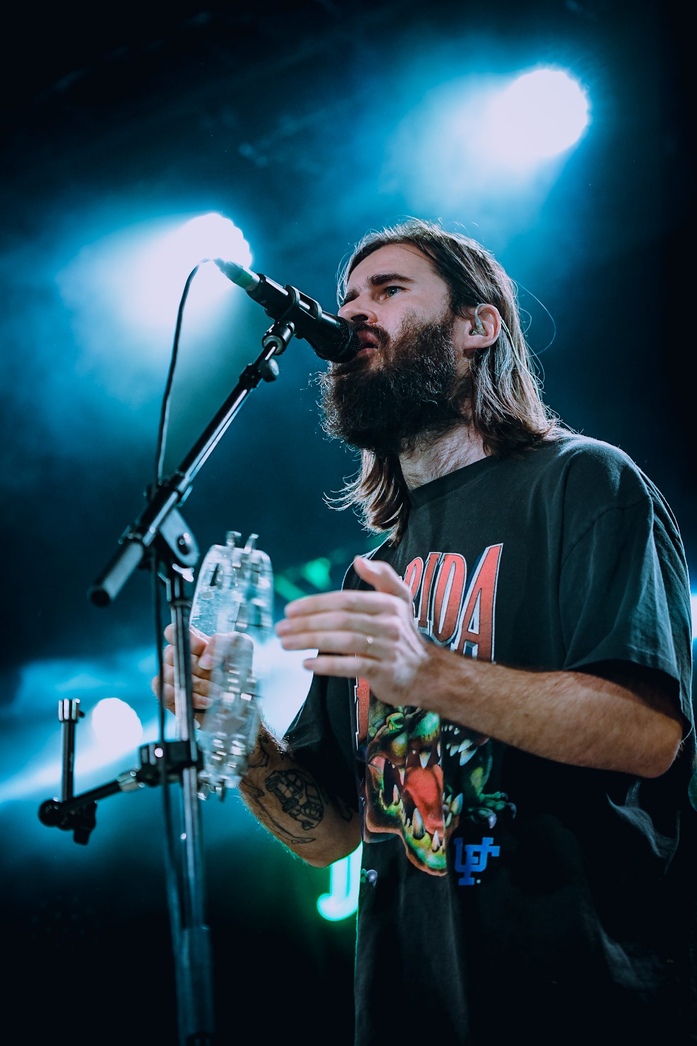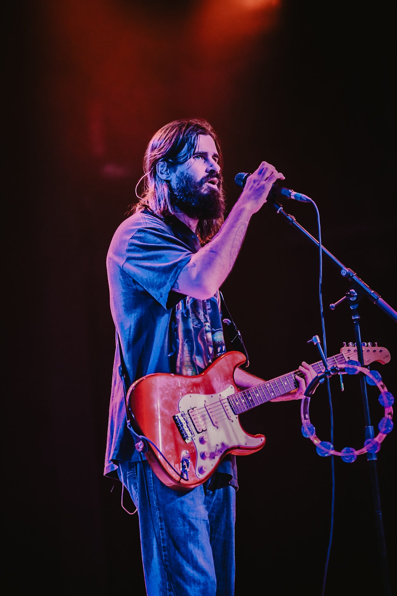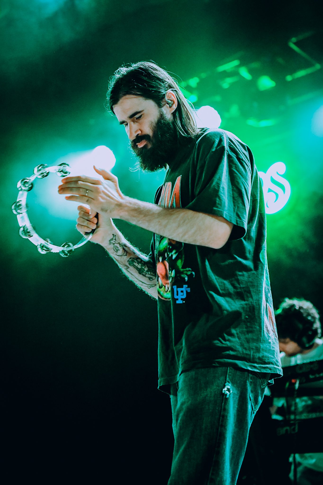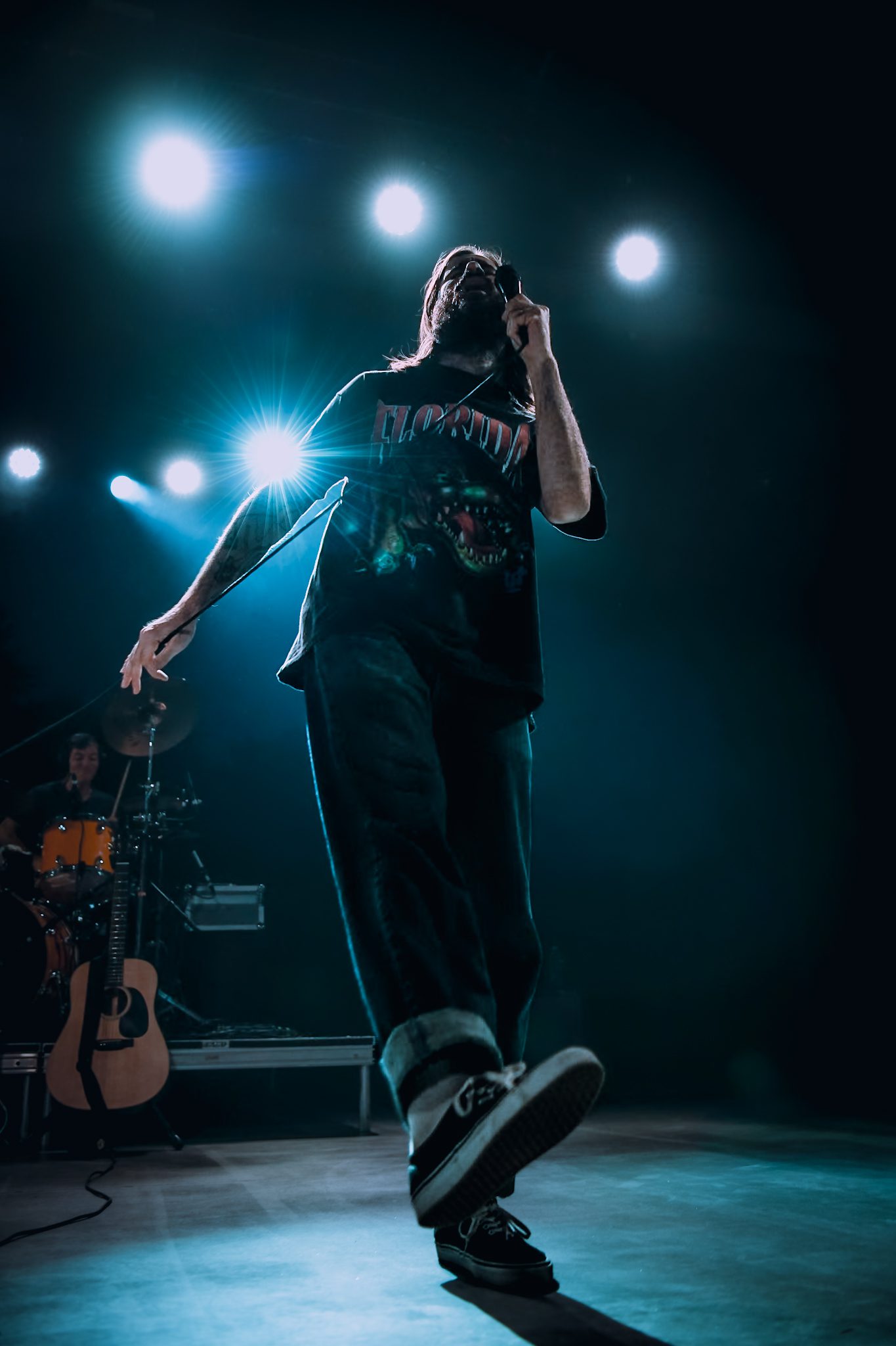 Petey USA traded off between guitar and tambourine, dancing around the stage between verses. He was backed by four talented musicians who all helped bring the performance as a whole to the next level. The vibes of the set were perfect; the entire crowd could be heard singing along, letting go of all of their inhibitions and dancing like no one was watching, fully present in the moment. As he started into “The Freedom to Fuck Off,” the crowd, as if on cue, passionately screamed in unison, “fuckin’ off takes money, fuckin’ off takes time, been fuckin’ off wrong my whole life, now I’m fuckin’ off right,” throwing their hands up into the air.