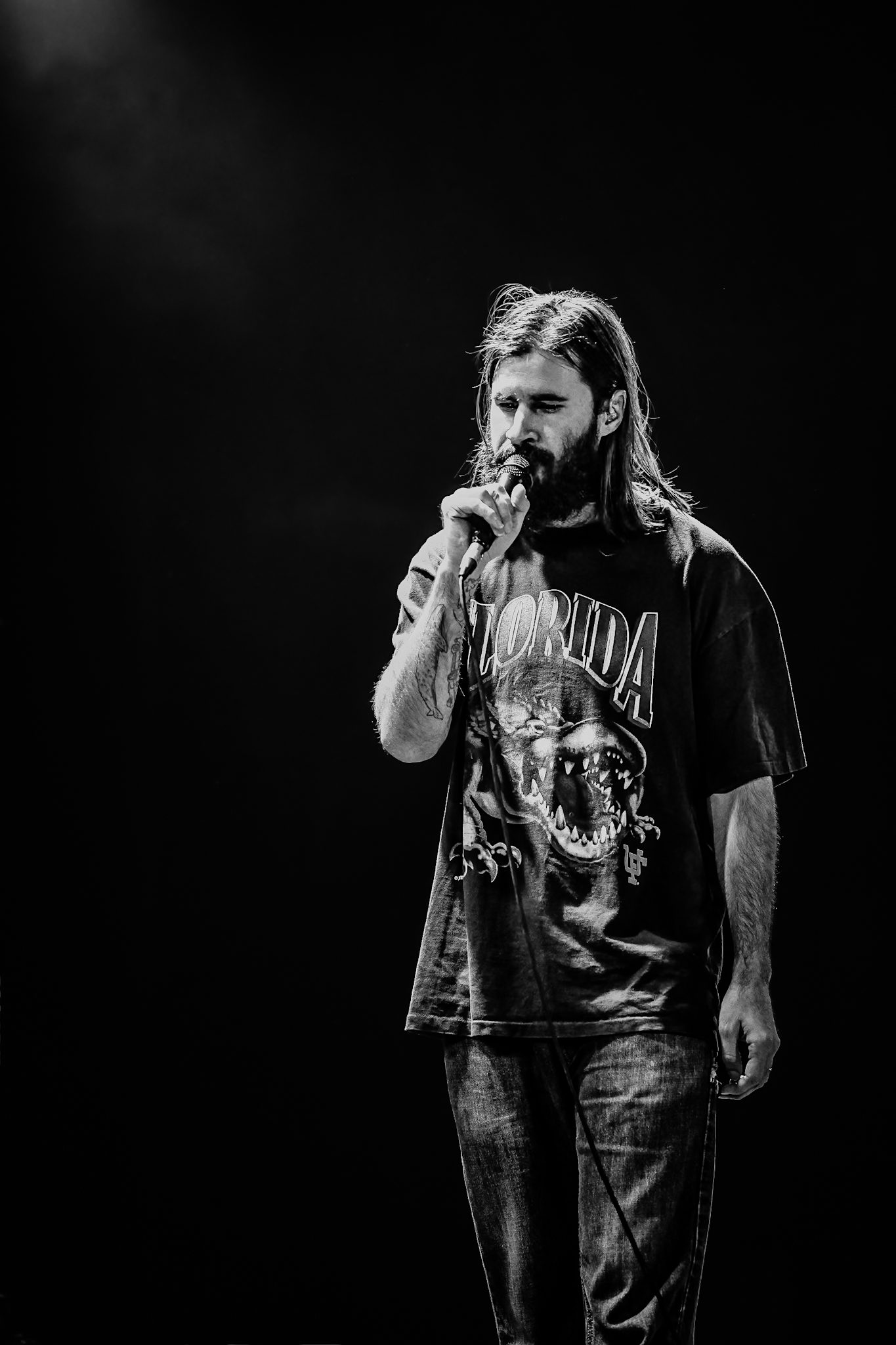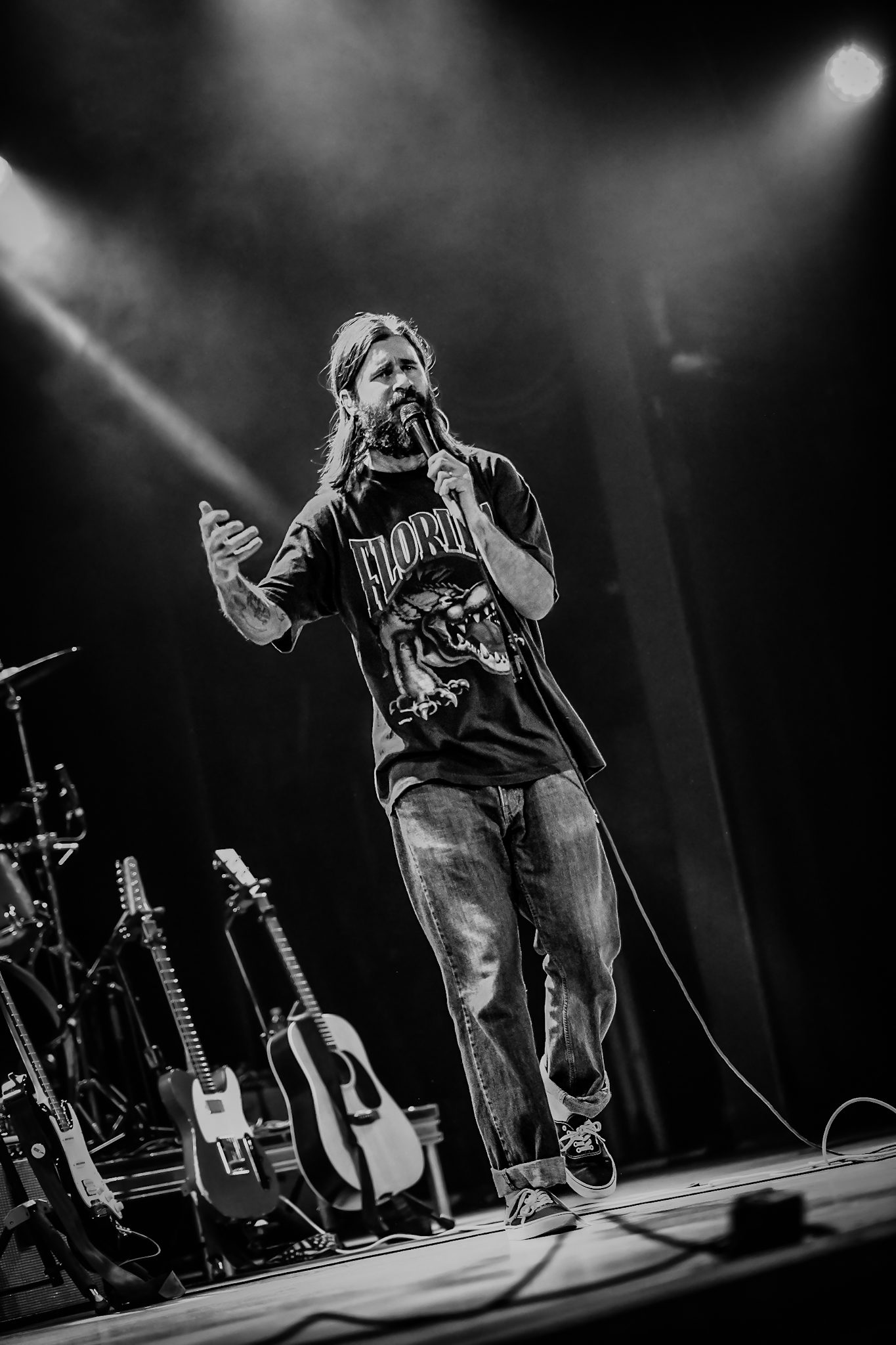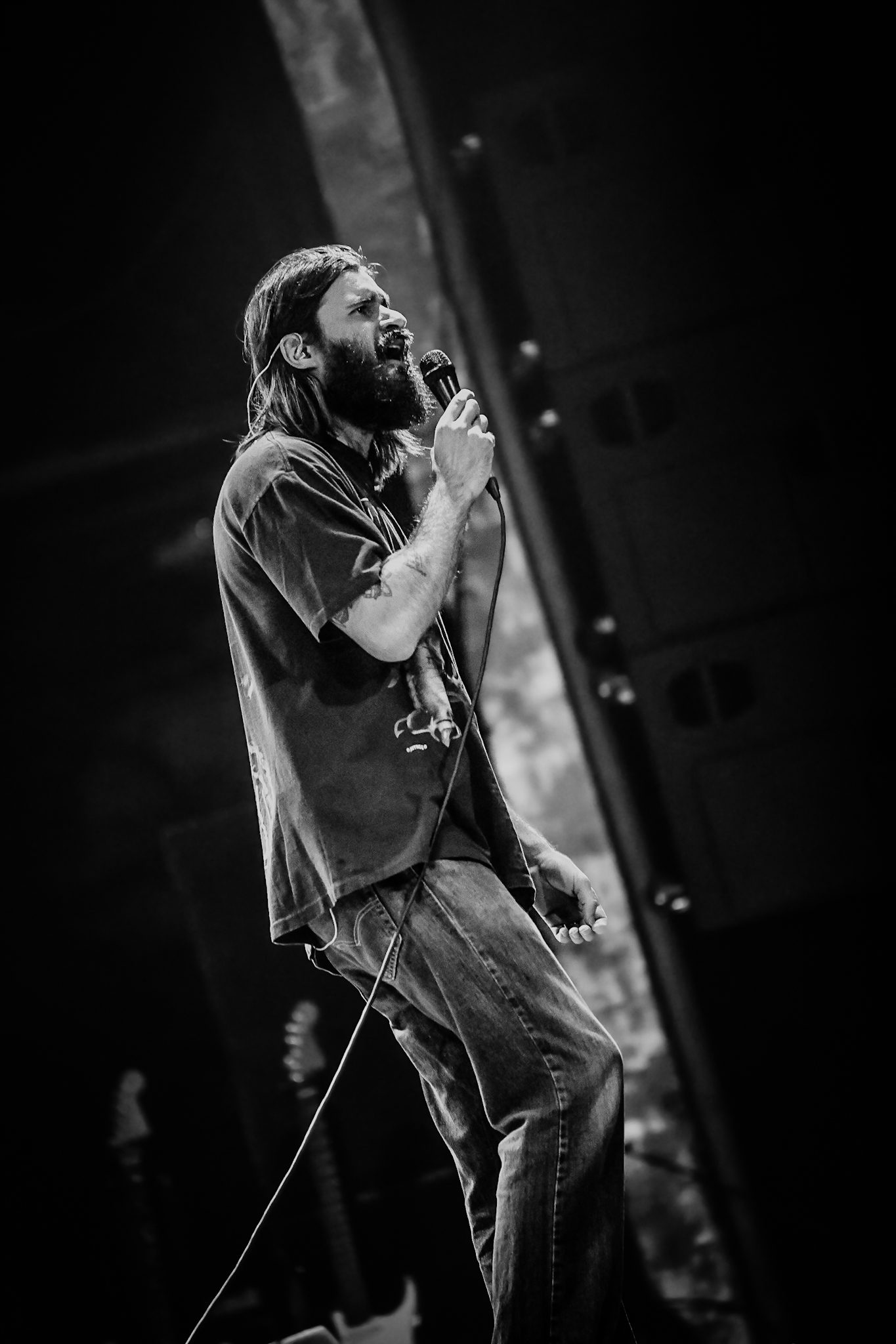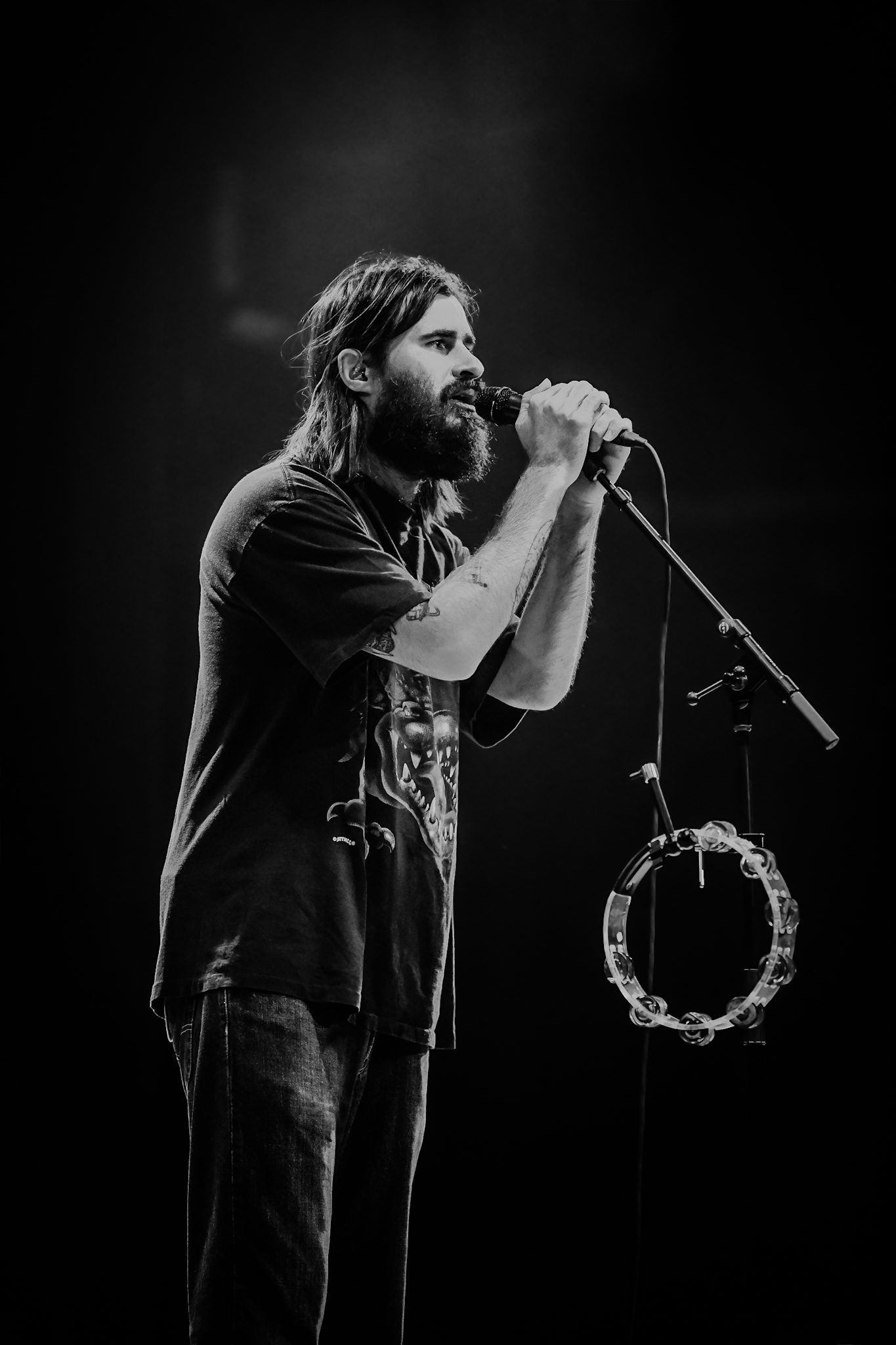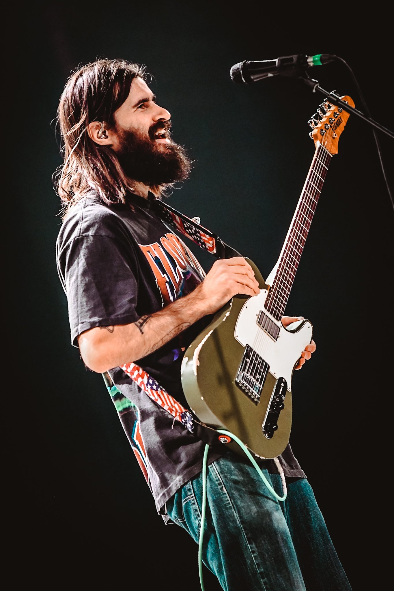 Petey USA traded off between guitar and tambourine, dancing around the stage between verses. He was backed by four talented musicians who all helped bring the performance as a whole to the next level. The vibes of the set were perfect; the entire crowd could be heard singing along, letting go of all of their inhibitions and dancing like no one was watching, fully present in the moment. As he started into “The Freedom to Fuck Off,” the crowd, as if on cue, passionately screamed in unison, “fuckin’ off takes money, fuckin’ off takes time, been fuckin’ off wrong my whole life, now I’m fuckin’ off right,” throwing their hands up into the air.