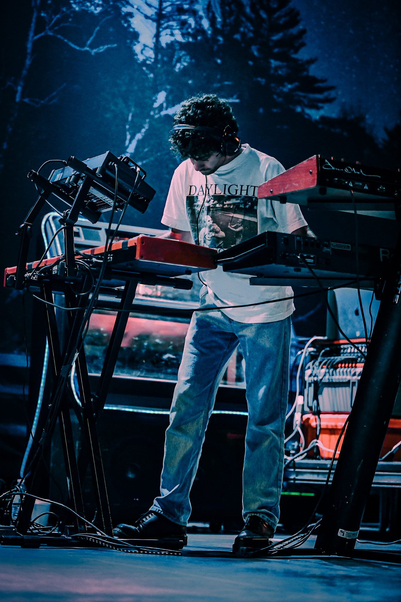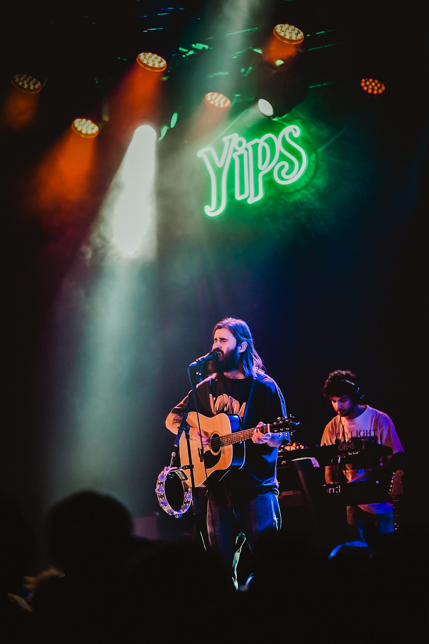The lights dimmed and a voice filled the speakers, welcoming the crowd into the Yips Saloon. It announced that we would all die tonight—before quickly backtracking with an awkward yet comical reassurance that we probably wouldn’t, but possibly could—a monologue reminiscent of something you might see in one of Petey USA’s TikTok videos. The stage, illuminated by a neon “Yips” sign, was outfitted with a woodland backdrop and jukebox, which roared to life, blasting Janet Jackson’s “Escapade” as the crowd jammed along with the tunes. The jukebox began to malfunction, and Petey USA’s band took the stage. As Petey USA emerged, the band launched into “Ask Someone Else,” a track from his recent release, The Yips. Given that this tour was celebrating the release of the album, the audience was treated to a healthy dose of tracks from the record, including songs like “Breathing the Same Air,” “The Milkman,” and “Spirit Animal.” While heavy on tunes from The Yips, the setlist also featured tracks from across his entire discography, including favorites like “More To Life Than Baseball” and “Haircut.”