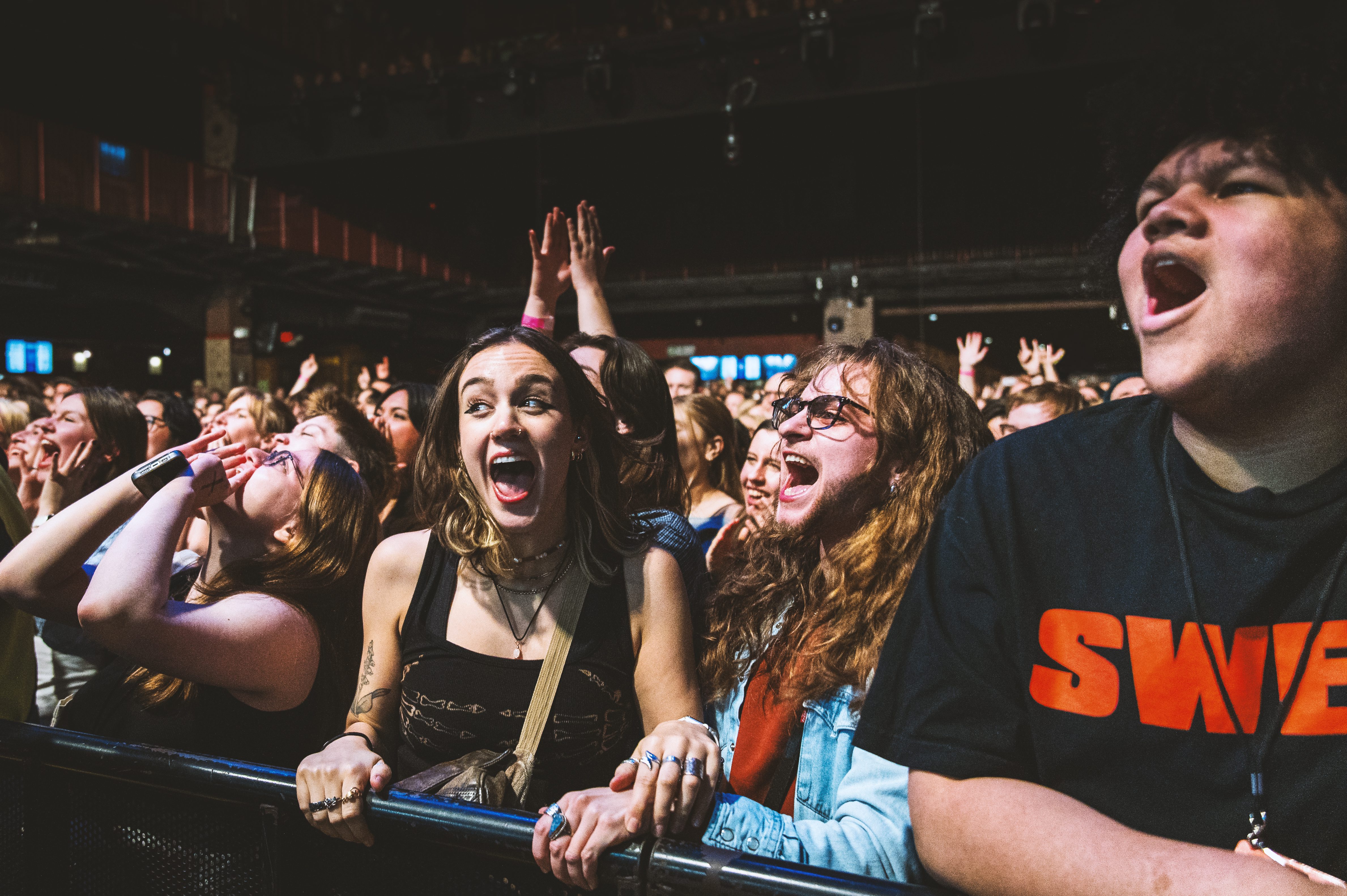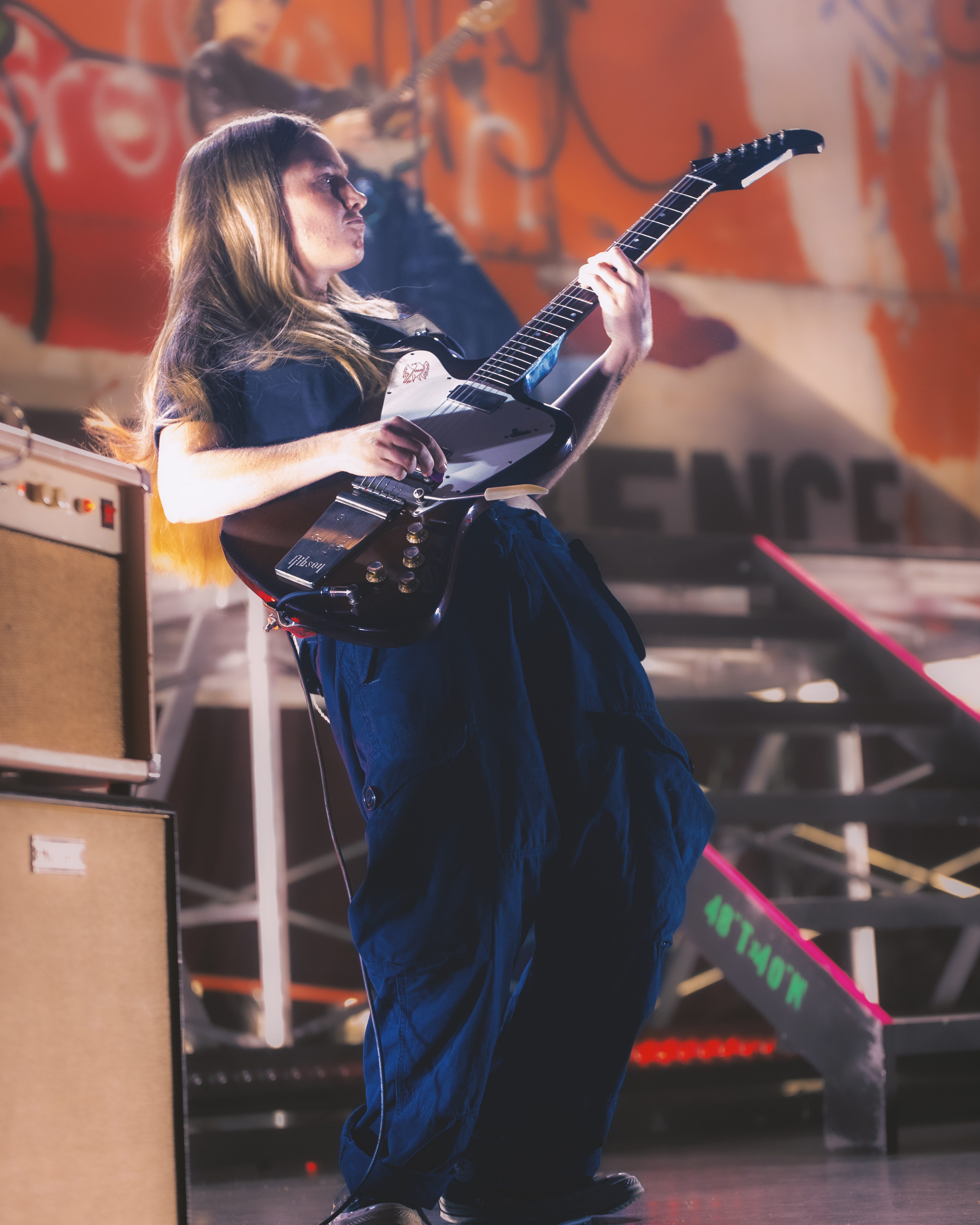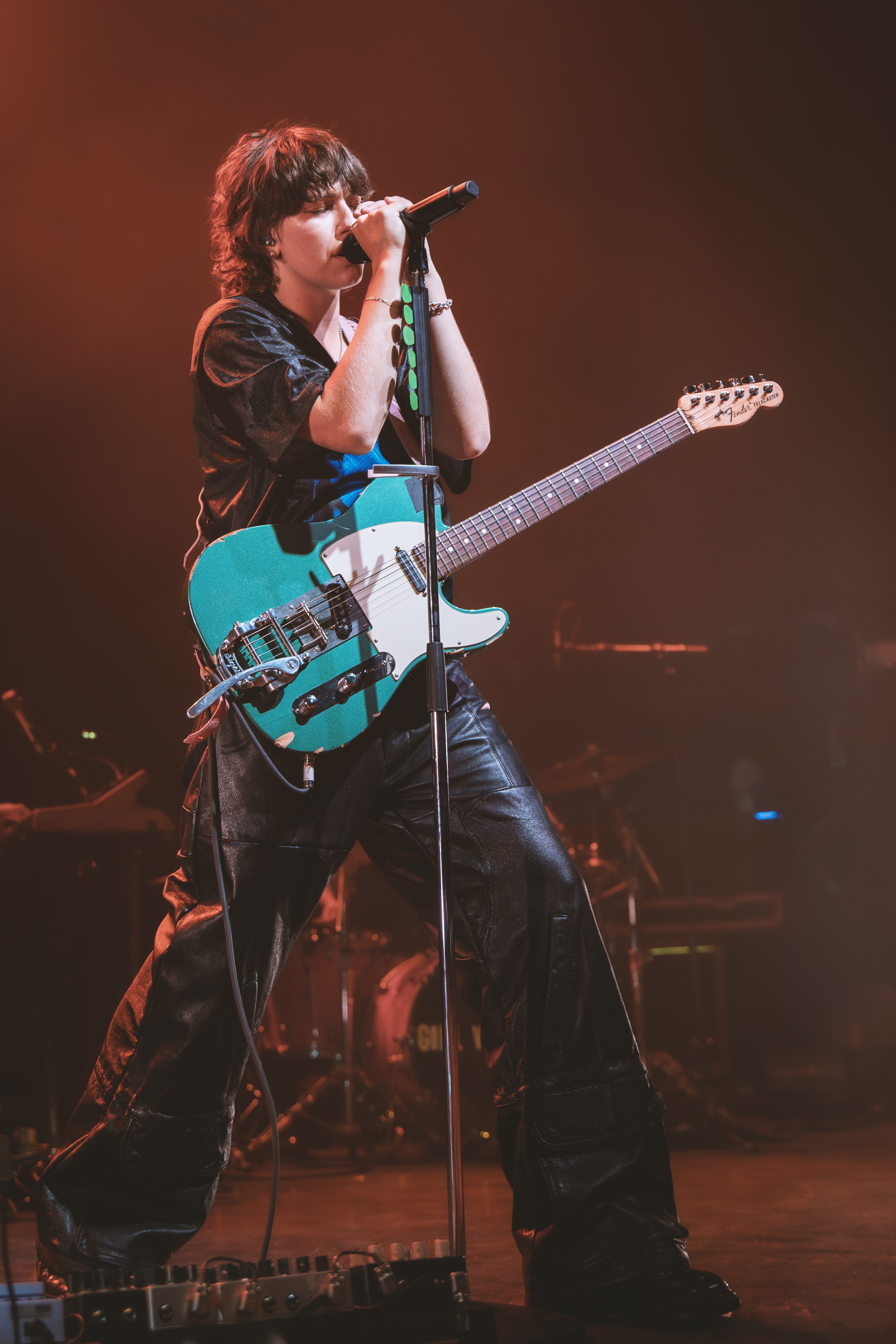 Opening the evening, SASAMI, aka Sasami Ashworth, delivered one of the stronger supporting sets of the night. Solo with guitar and the occasional French horn flourish, she navigated shoegaze, dream-pop, nu-metal, and synth-pop with eerie grace. The strobe-heavy visuals matched her sonic shifts – dreamy one moment, violent the next – and the room quieted down. For a large venue and a quiet opener slot, that’s no small feat. Her classical training and genre-hopping instincts stood out throughout.