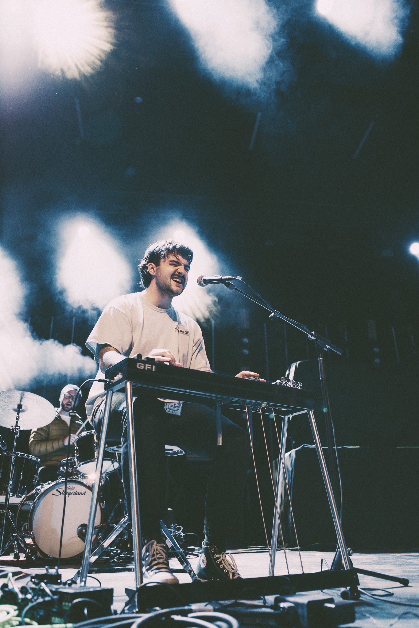 Then came almost monday, bursting onto the stage with a rush that shattered the calm Ethan had left behind. Their energy was untamable and contagious, Dawson Daughtry commanding every inch of the stage with a presence that itched your brain just right. His voice cut through the chaos, never faltering, even as he spun and leapt beneath the strobes. I’d heard their name before, a few tracks here and there, but nothing could’ve prepared me for the universe they created live. Their music felt like unfiltered joy, a kaleidoscope of sound that made you want to scream, dance, laugh, to shake off everything that had weighed you down. I walked away with a new favorite band and nearly every song of theirs queued on repeat. If you appreciate their studio recordings, almost monday is a must-see live show – their tunes truly blossom in a live setting and their ambiance is simply infatuating.