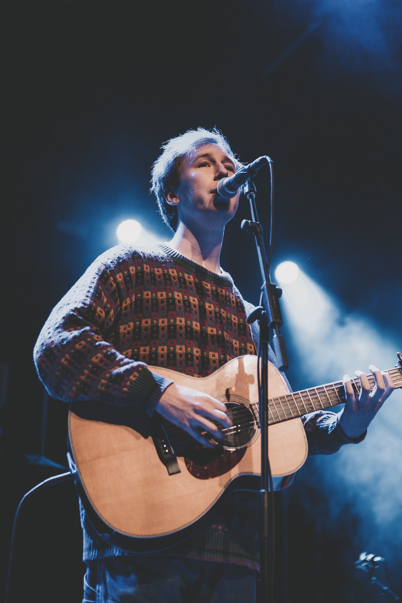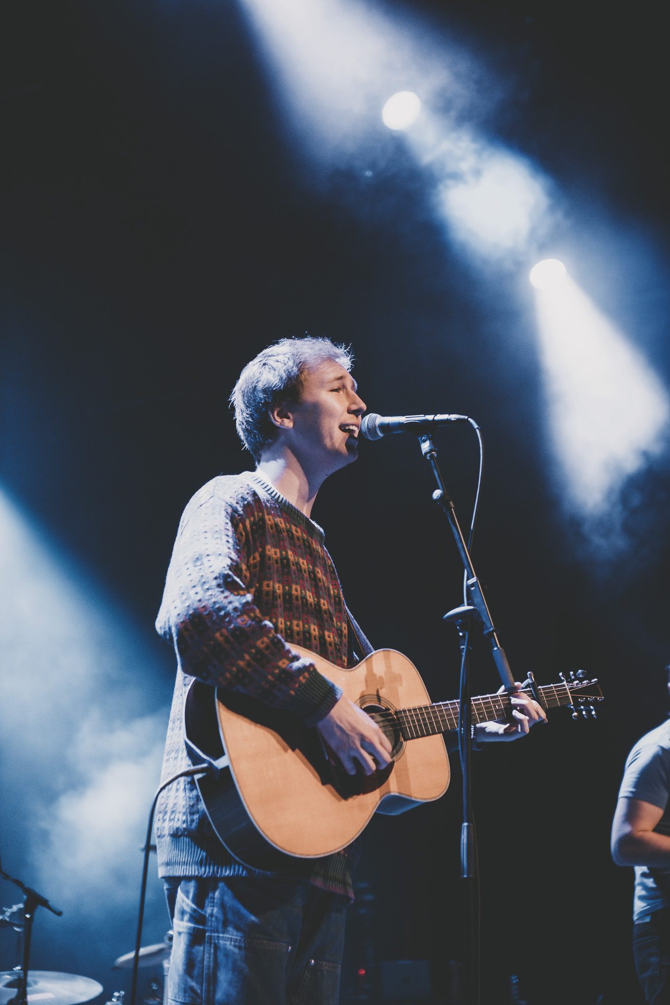 Ethan Tasch eased the crowd into the evening like dusk spilling through stained glass. Alongside three other polished instrumentalists, one lingering near a slide guitar, he carried the kind of calm that hums before the storm. The slide’s voice whined and shimmered against the acoustic strums, a silver thread stitching warmth into the room. The harmonies hovered like soft confessions, and by the first chorus, the crowd was quietly transfixed. Most didn’t seem to know his name, or that he’d be setting the tone for the night, but as the melodies unfurled, you could feel the shift: people inching closer, eyes fixed, falling under the gentle gravity of sound.