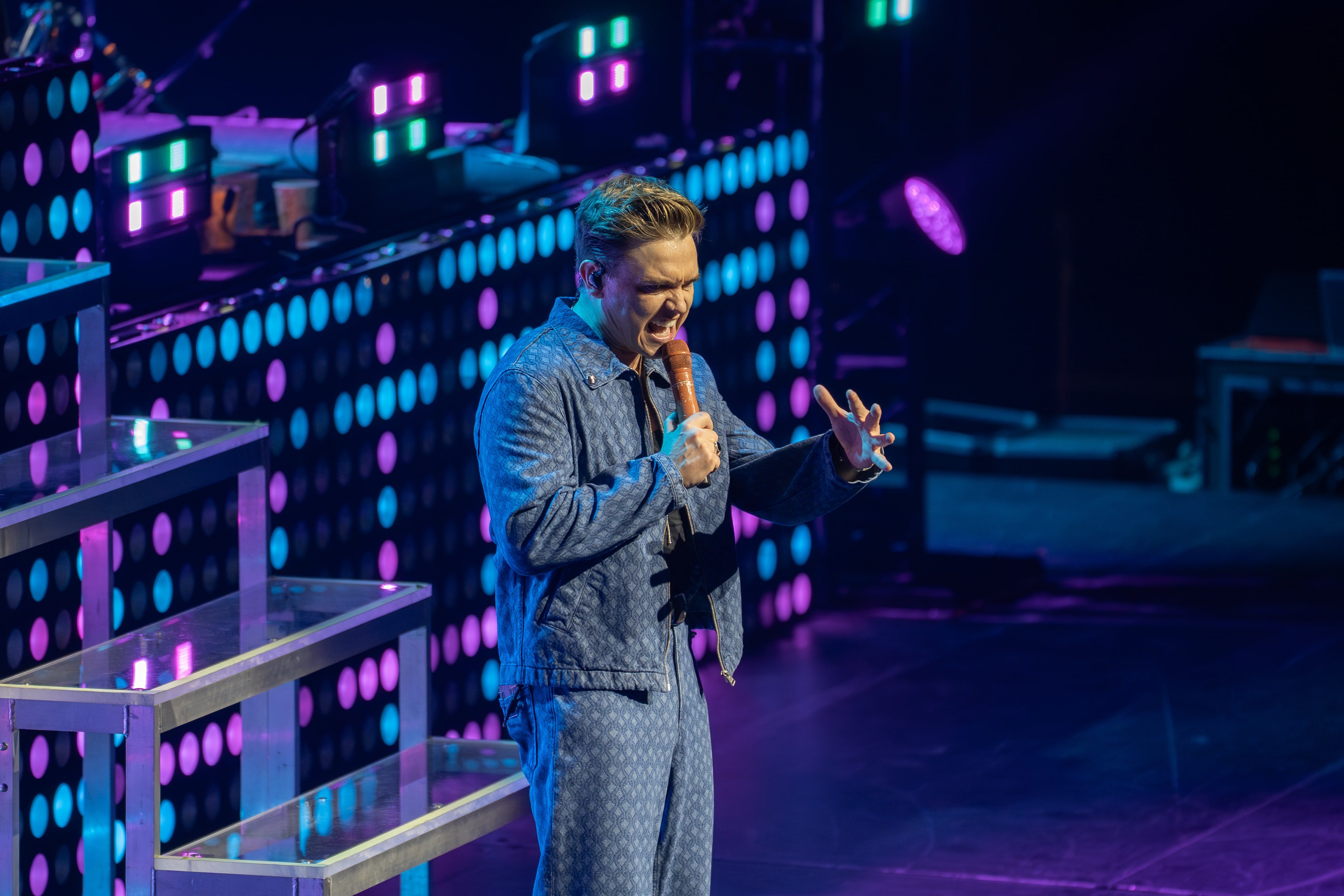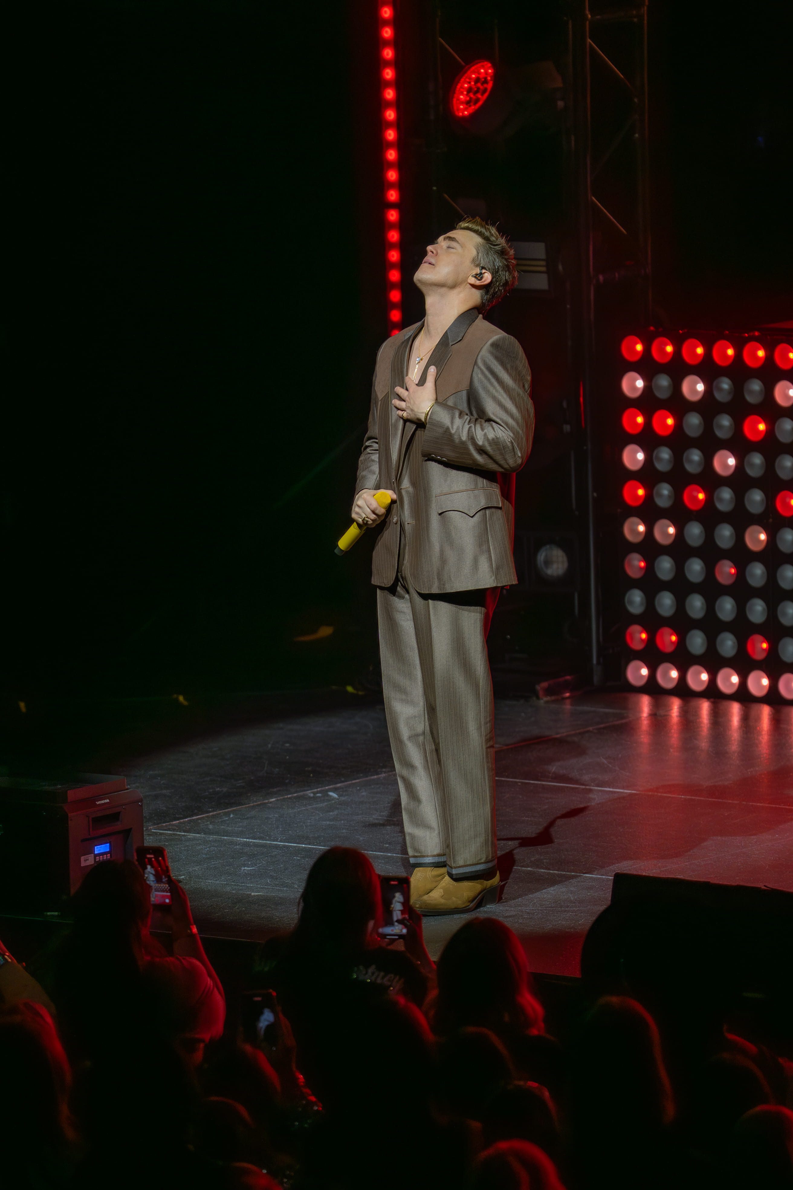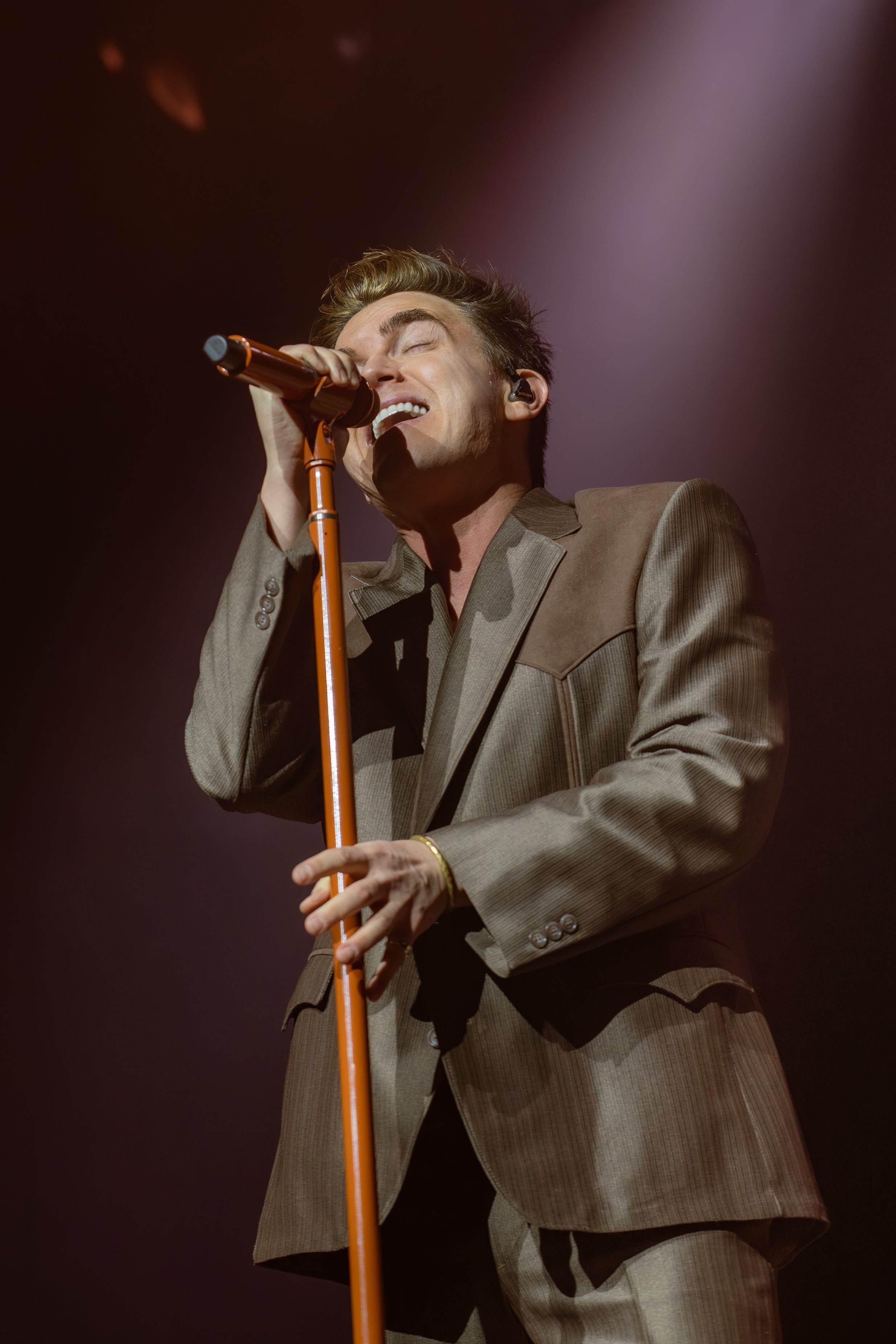 One of the funniest moments of the night came when he walked out dressed as Judge Judy, complete with her voice playing through the speakers so it looked like he was saying the words. The crowd was cracking up, and when the Judge Judy audio ended, he jumped straight into “Body Language,” still in costume, trying to sing through his own laughter. When it came time to take the outfit off, he got stuck for a second, laughing along with everyone else. After finishing the song, he grinned and said, “can’t wait to see that posted online,” and the crowd burst out laughing all over again.