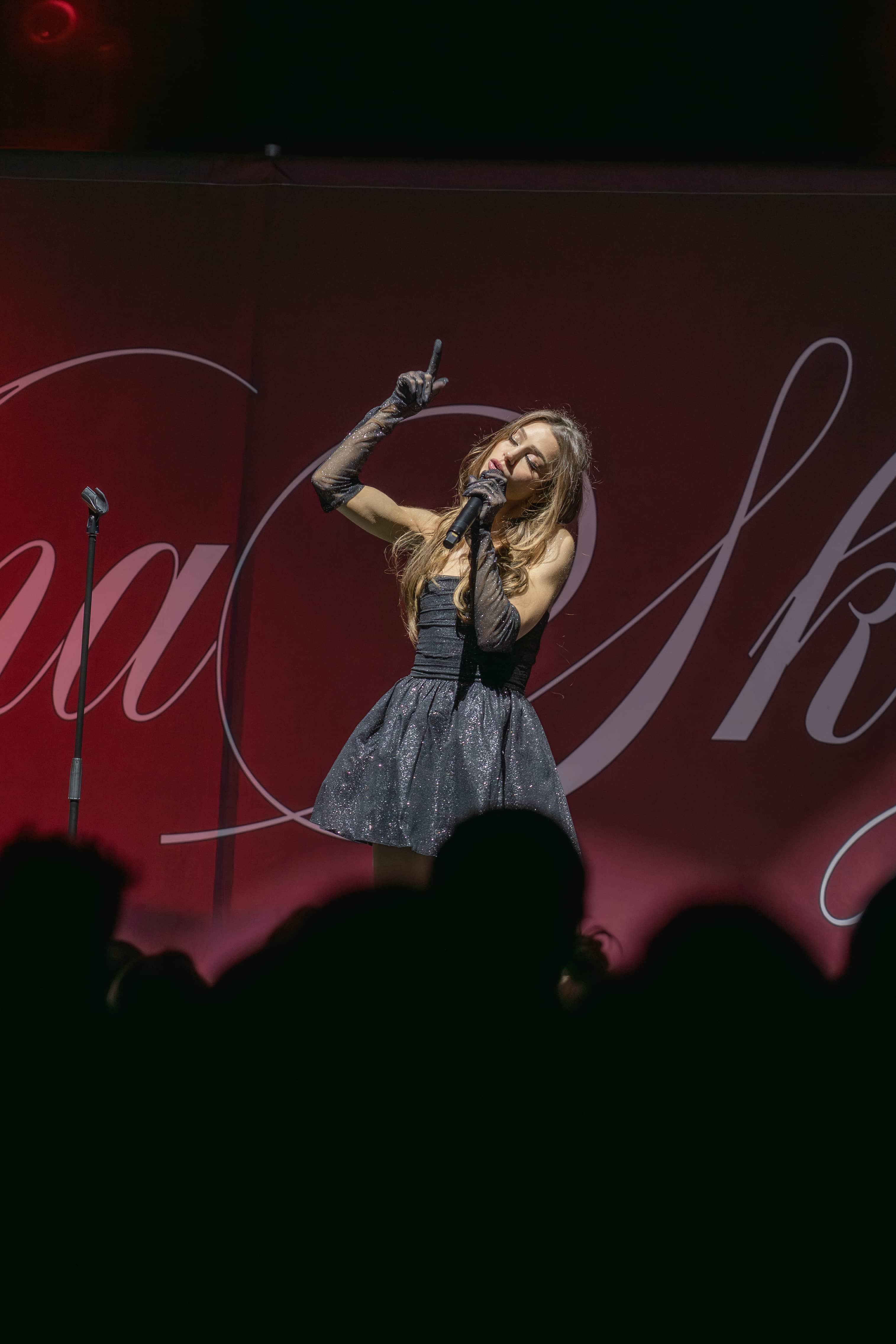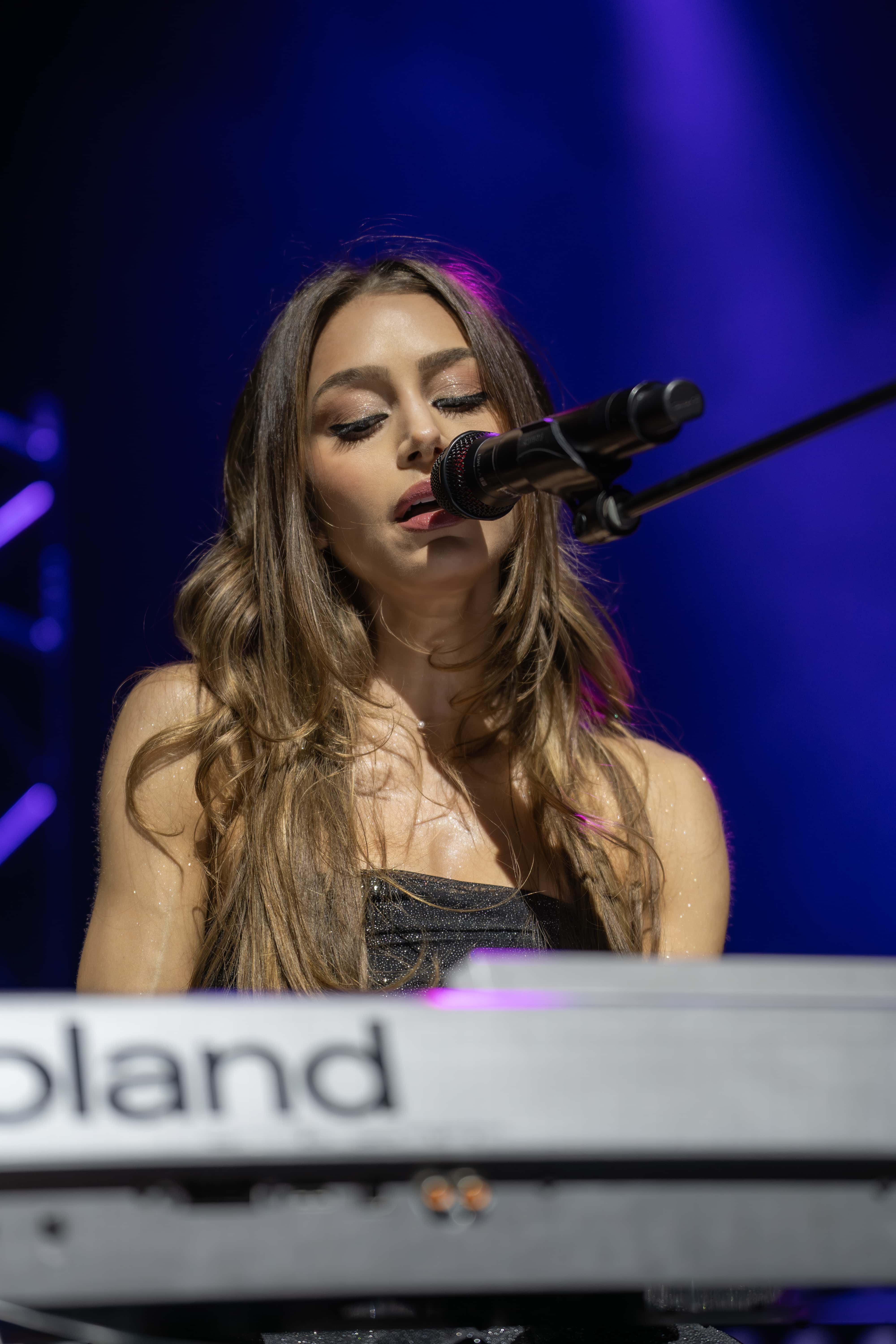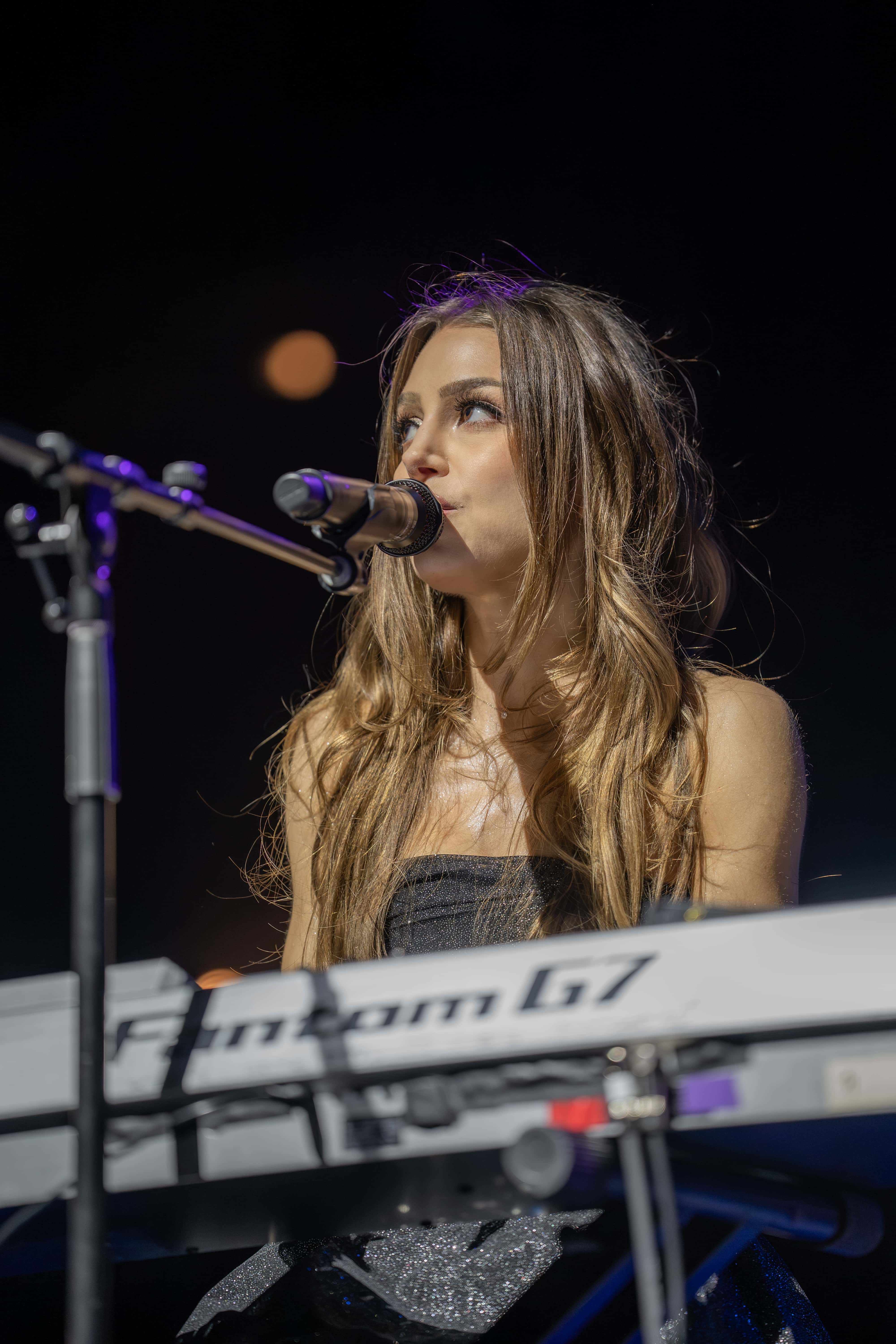 The night kicked off with Ana Sky, who set the tone beautifully in a sparkly black dress and lace veil. Her powerhouse vocals shined through both original songs and covers, and she even took a sweet moment to dedicate a song to a young fan carrying a sign that said “my first concert.” She showed off her piano skills too and threw in a “Hook ’em Horns” for the Austin crowd, earning plenty of cheers and setting the perfect mood for what was to come.