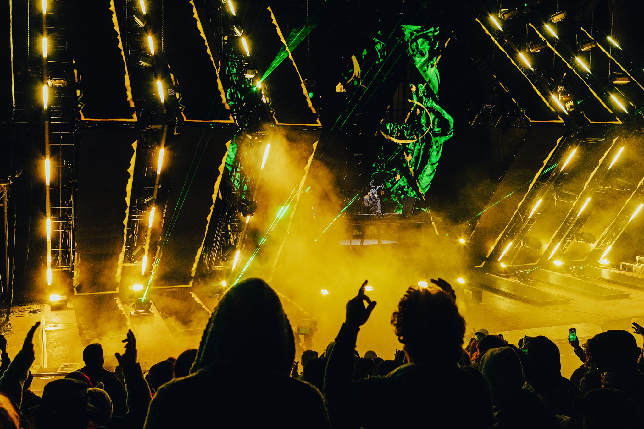 SVDDEN DEATH, or Voyd as he was that night, didn’t waste anyone’s time. The visuals were insane without feeling gimmicky – glitchy, grimy, high impact stuff that hit as hard as the drops. The bass rattled the staircases. The transitions were stupid tight. And then, casually, he started flying. Not once, multiple times. No overhyped buildup, just “oh, he’s airborne again” while the crowd lost its mind.
