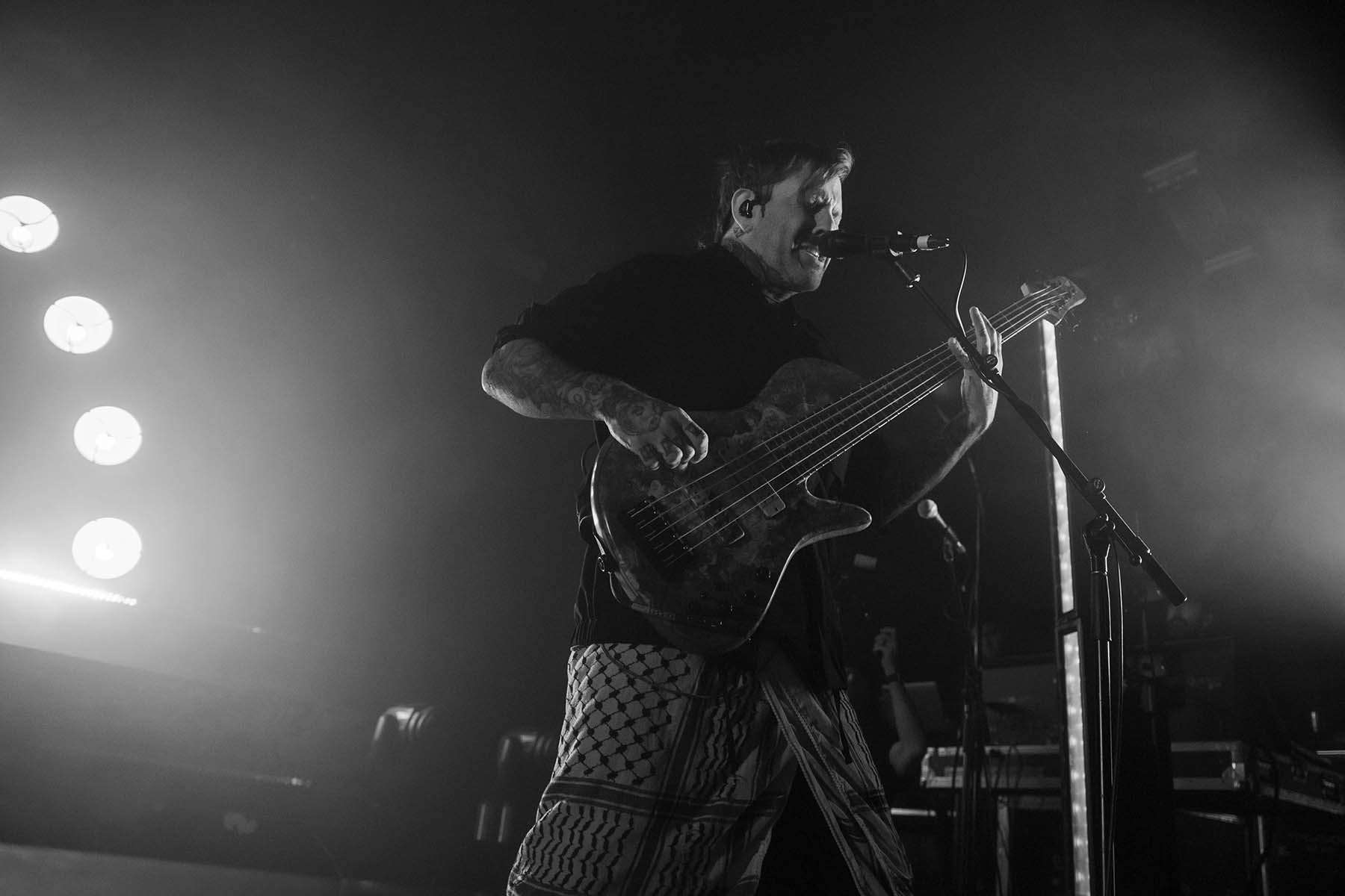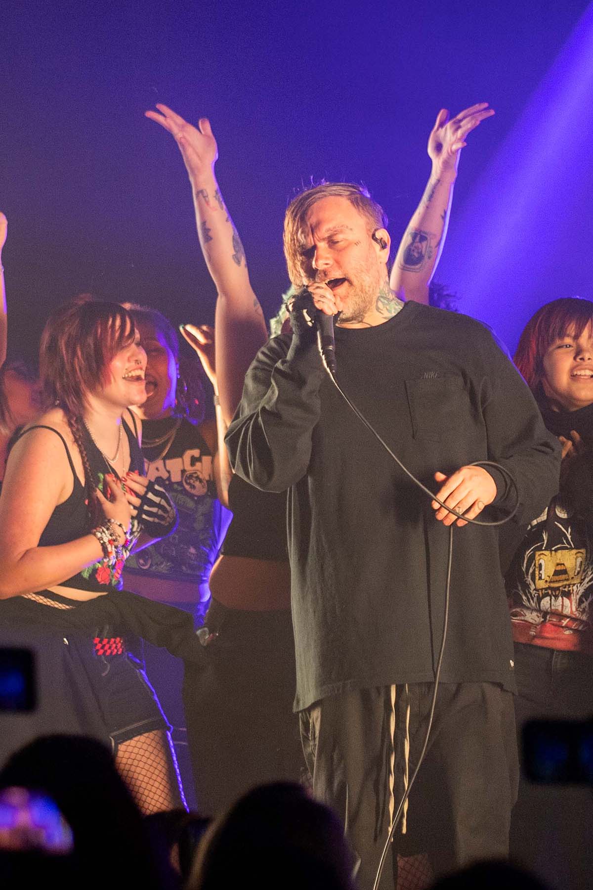According to a couple of fans I met, this album is fully underloved and almost rarely gets played. Knowing this made it super cool to witness as a full playthrough. Each night featured the kabuki drop, as it was used as a screen. Tonight I went to the balcony for a photo and to watch what it showed. It was a general introduction about how they were going to witness something amazing and they needed to find their spot, then a quick intro to the album was shown. I believe it was different each night to showcase the album that would be played. It was super cool to see. The band all took their place seconds before it dropped, and the crowd screamed back as the song started. Every single word was screamed back. This night, the crowd-surfers started off early, and before I had even left the pit, there were two fans who had made it to the front. One of them even got to hold Bert McCracken’s hand for a moment.