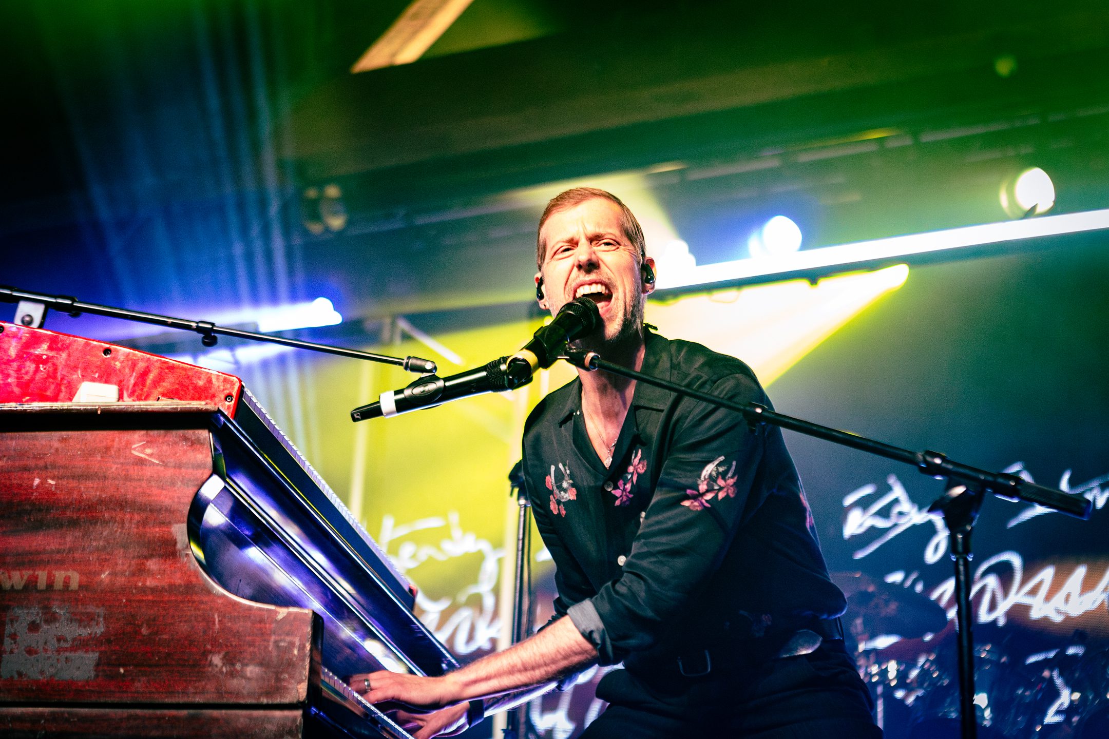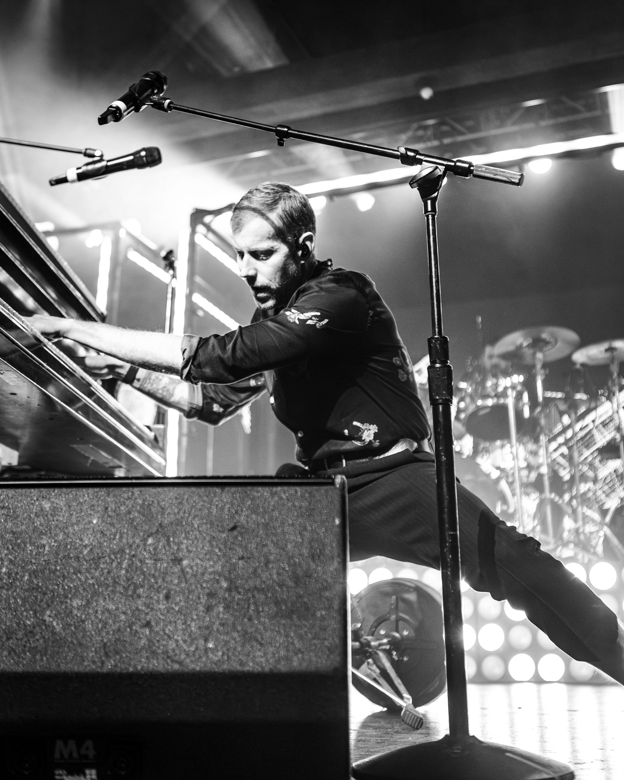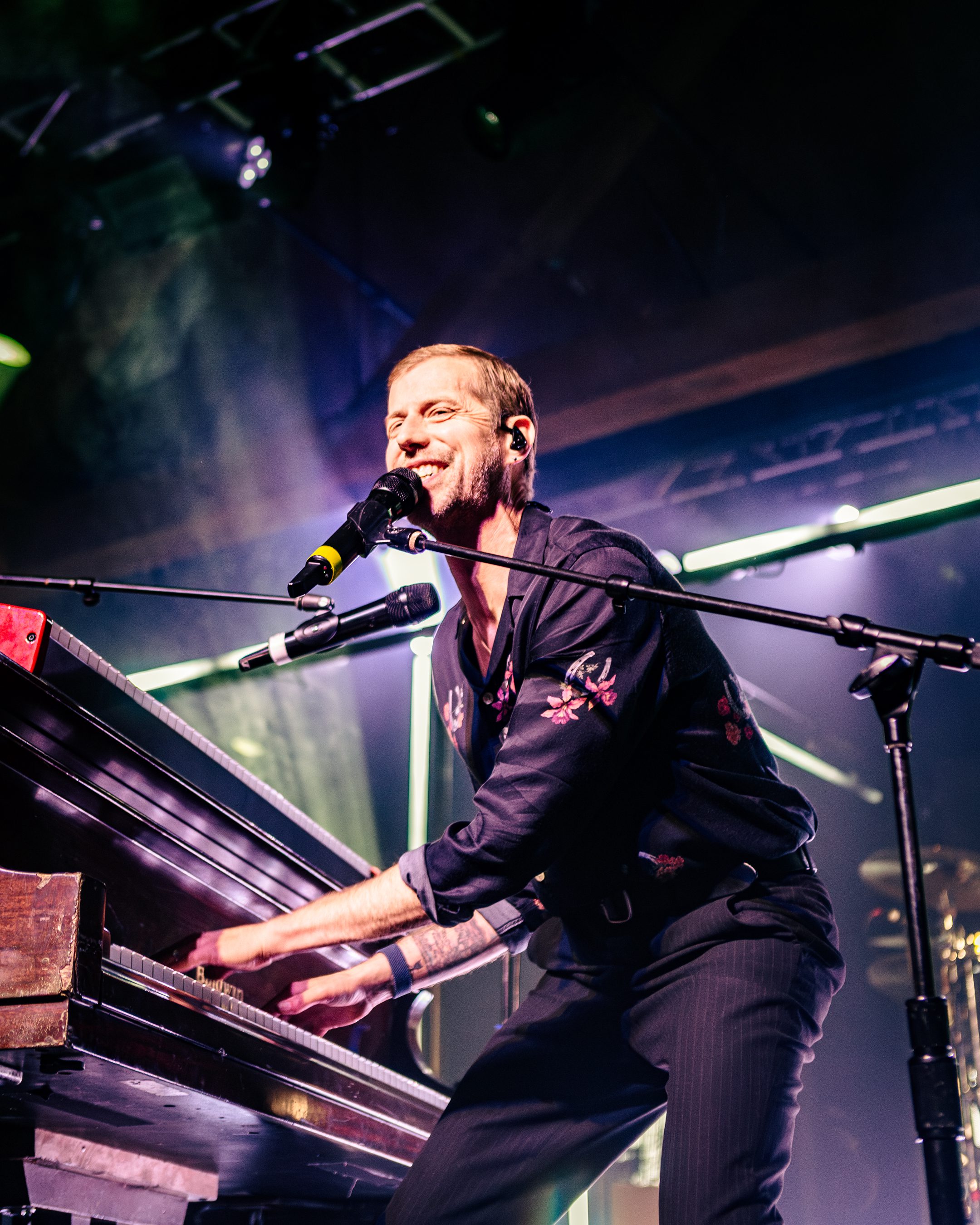 After illuminati hotties’ energetic performance, the crowd was definitely ready for Jack’s Mannequin. McMahon and his band were ready, too — they opened the show with “I’m Ready,” the upbeat fourth track from Everything In Transit. It was far from “a boring pop song” as the lyrics suggest, but everyone was singing along. McMahon played the keys with a huge smile on his face. The second song of the evening, “Spinning” from The Glass Passenger, saw him dancing and spinning around the piano. McMahon followed “Spinning” with “The Mixed Tape,” also from the landmark album celebrating its 20 year anniversary, jumping off the piano for the first of several jumps of the evening. Later, McMahon joked that it was his favorite jump and he does it a lot since it’s the only jump he knows how to do.