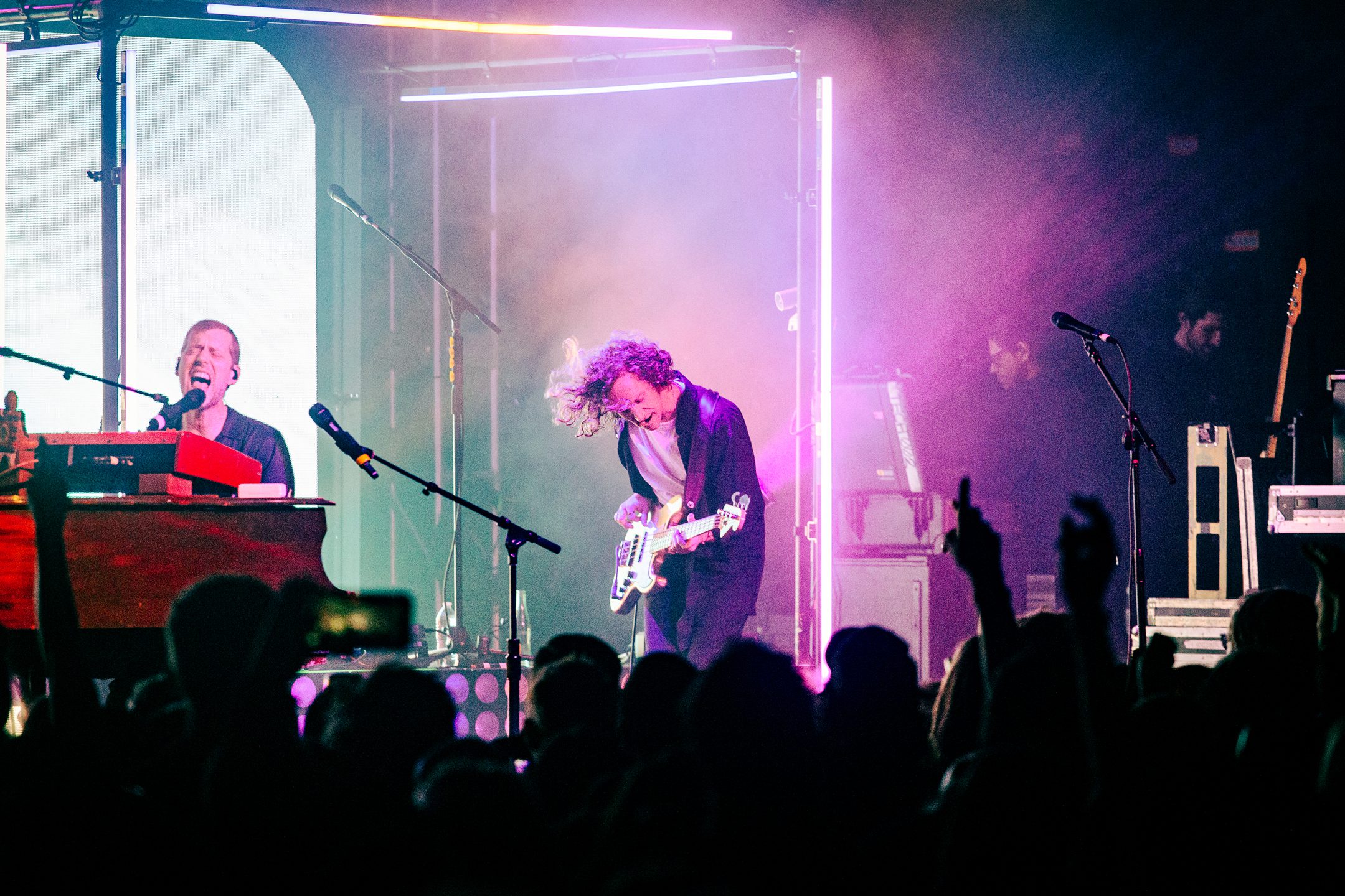 Fellow Southern Californian rockers, illuminati hotties from Los Angeles, opened the show for Jack’s Mannequin. Similar to Jack’s Mannequin, illuminati hotties don’t confine themselves to the constraints of one genre. They opened their set with the surf pop jam “Can’t Be Still,” and towards the end of the set, vocalist Sarah Tudzin was rocking out in the crowd with the more punk-inspired “MMMOOOAAAAAYAYA.” I thought I hadn’t heard Illuminati hotties before their performance, but after watching their set, I realized I had been introduced to them through their pop-punk song “Wreck My Life,” which features the band PUP.